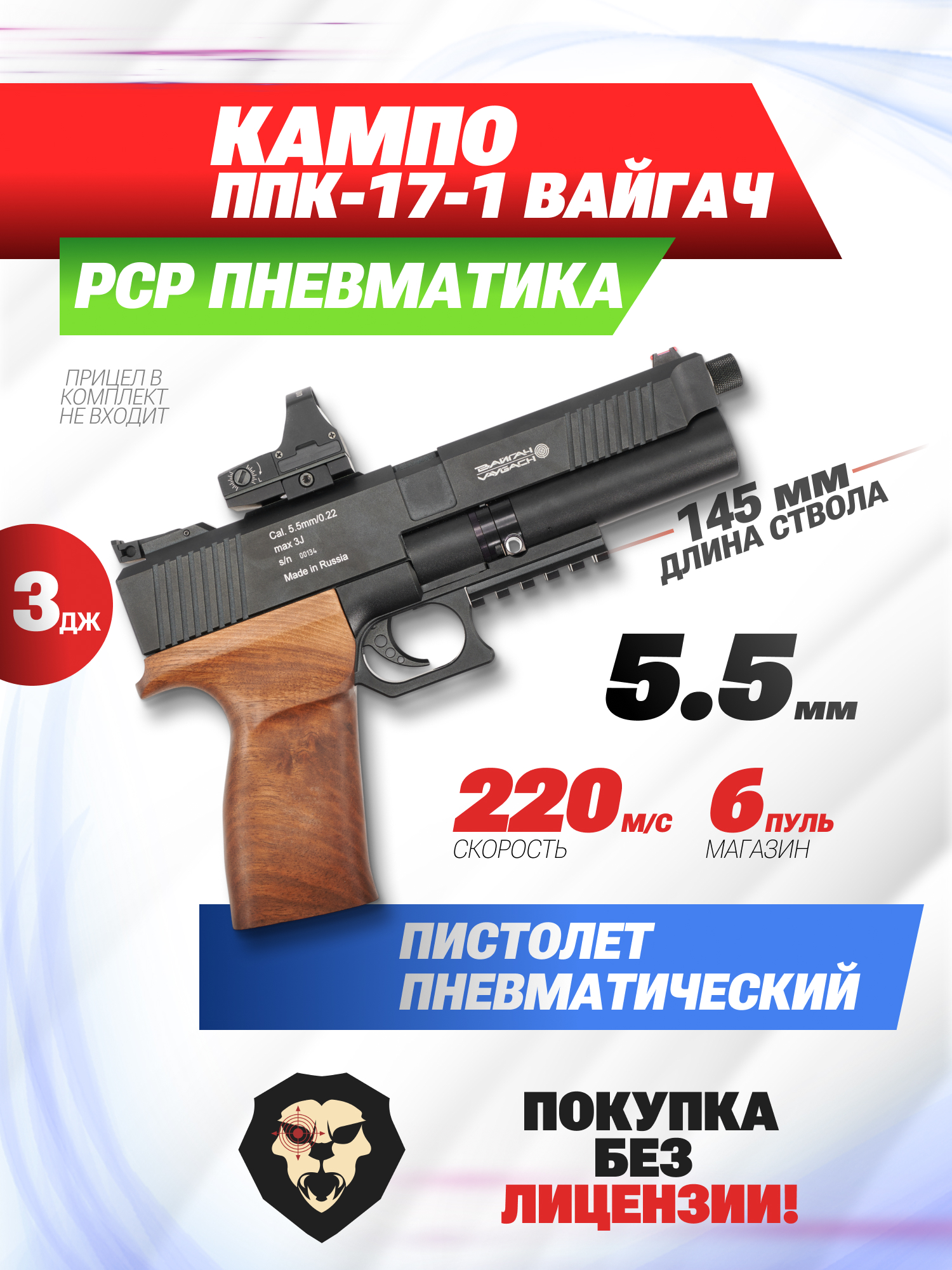 Пневматический пистолет Кампо ППК-17-1 Вайгач 5.5 мм (дерево, РСР) купить в интернет-магазине Popadiv10.