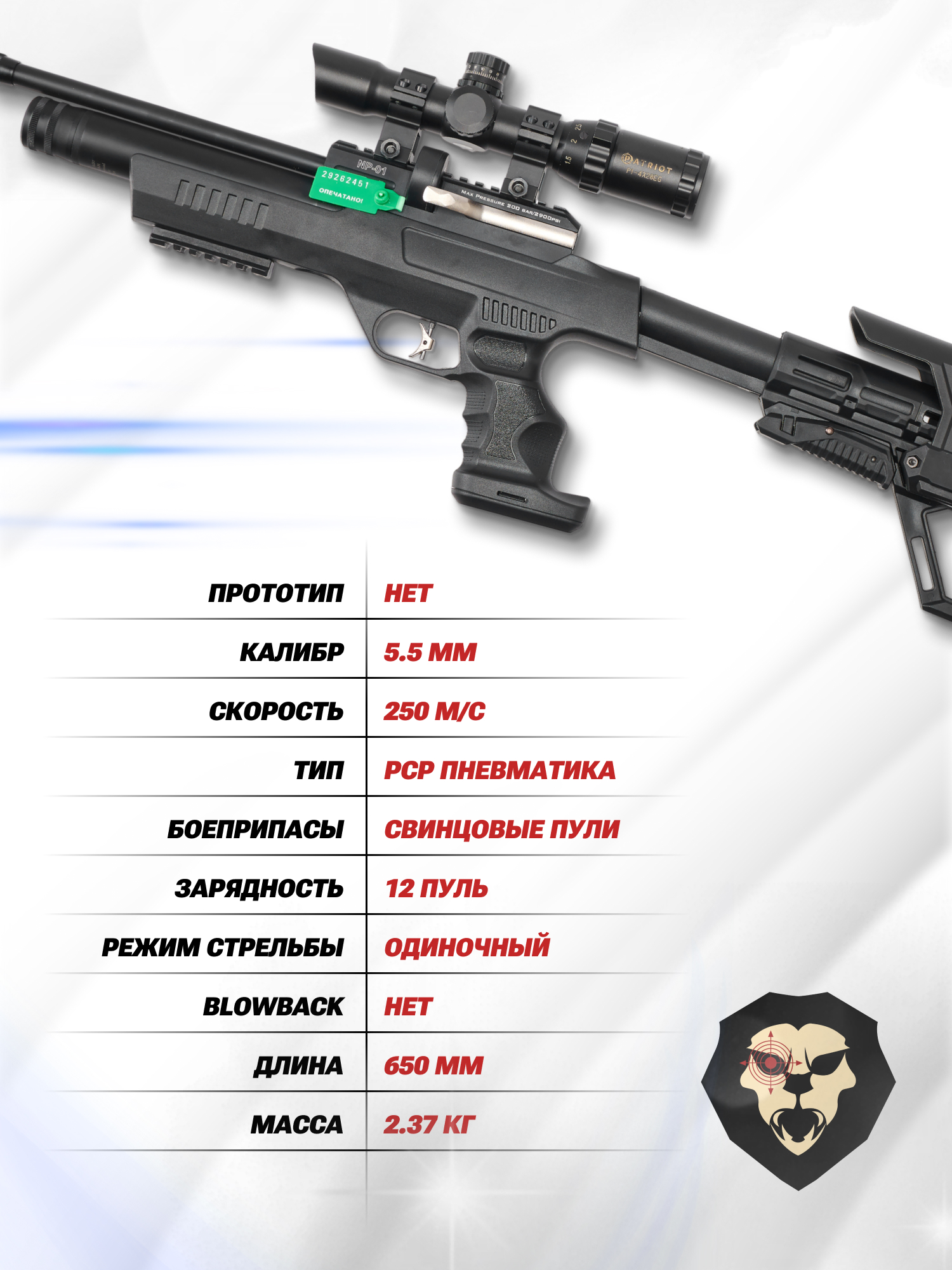 | Тип | PCP пневматика |