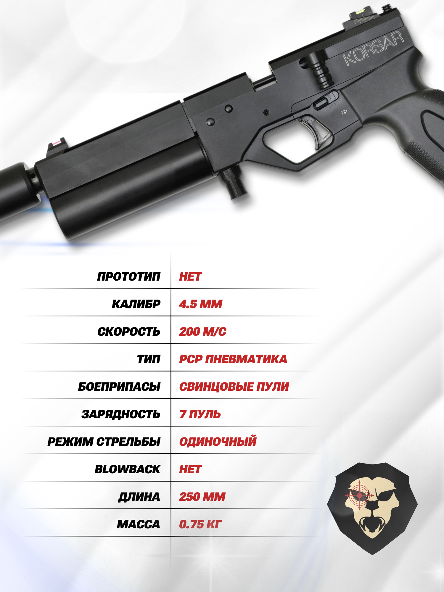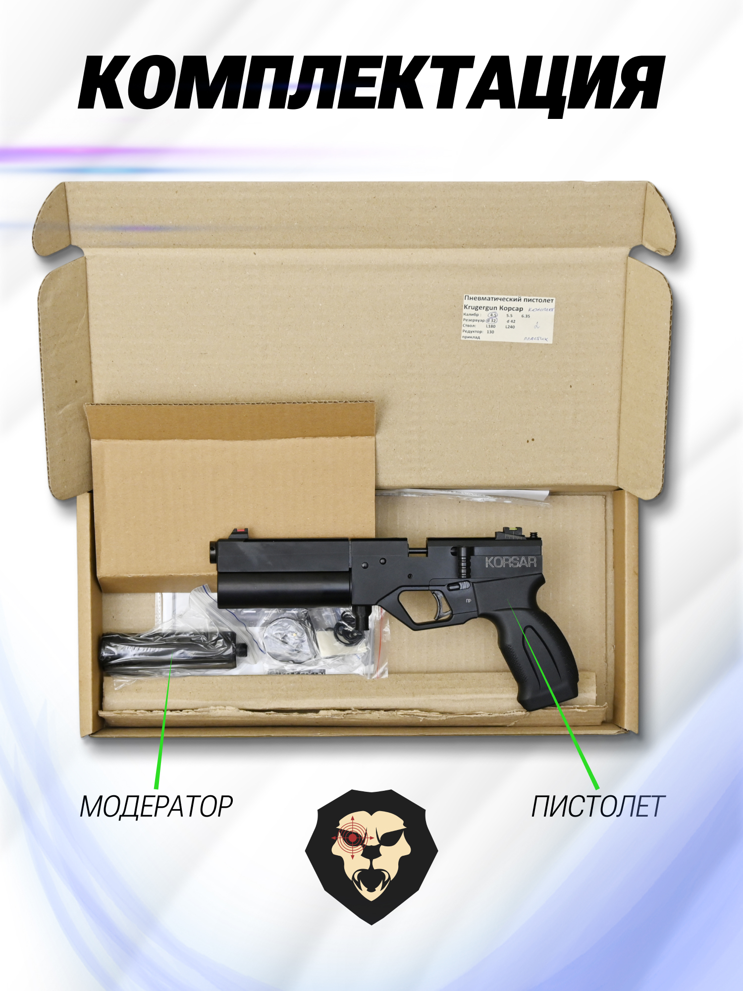 Информация о товаре "Пневматический пистолет KrugerGun Корсар Компакт 4.5 мм (пластик, D32)" носит ознакомительный характер, и не является публичной офертой, определяемой положениями Статьи 437 Гражданского кодекса Российской Федерации, характеристики, внешний вид, цвет и комплектация могут быть изменены производителем без уведомления.