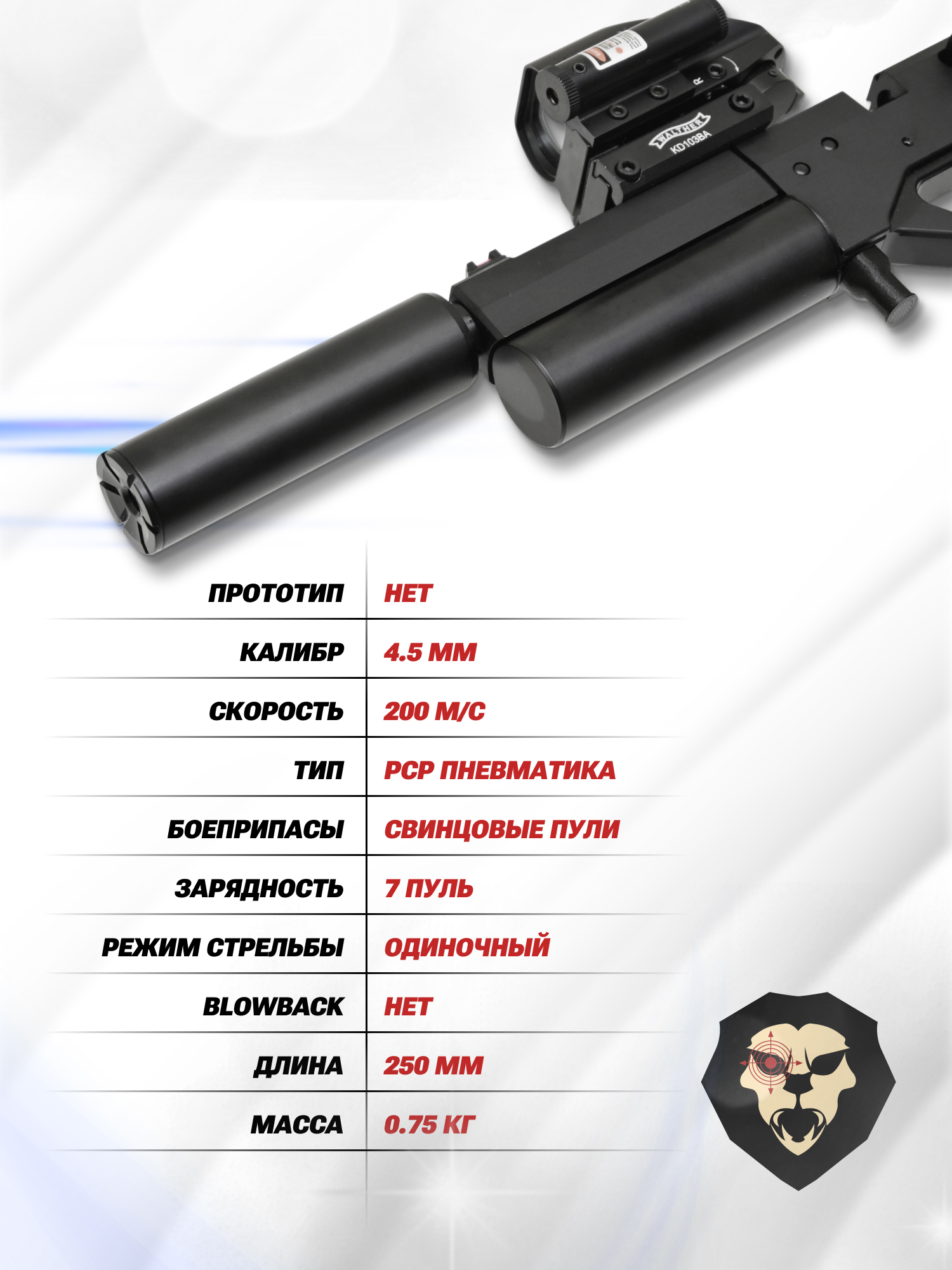 | Комплектация | Пистолет, модератор, заглушка заправочного порта, упаковка, магазин, набор РТИ, краткая документация, копия сертификата (по запросу покупателя) |