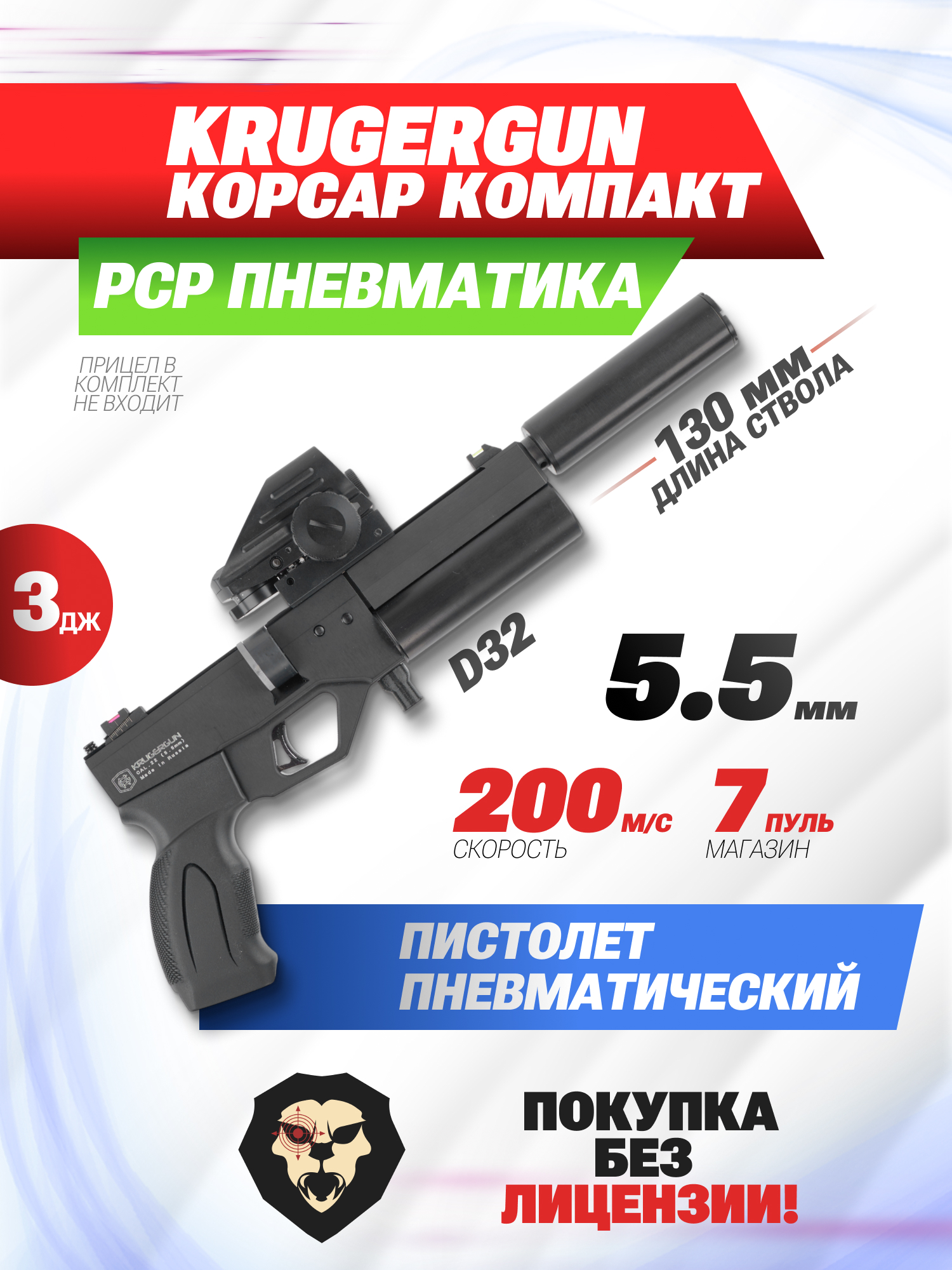 Пневматический пистолет KrugerGun Корсар Компакт 5.5 мм (пластик, D32) купить в интернет-магазине Popadiv10.