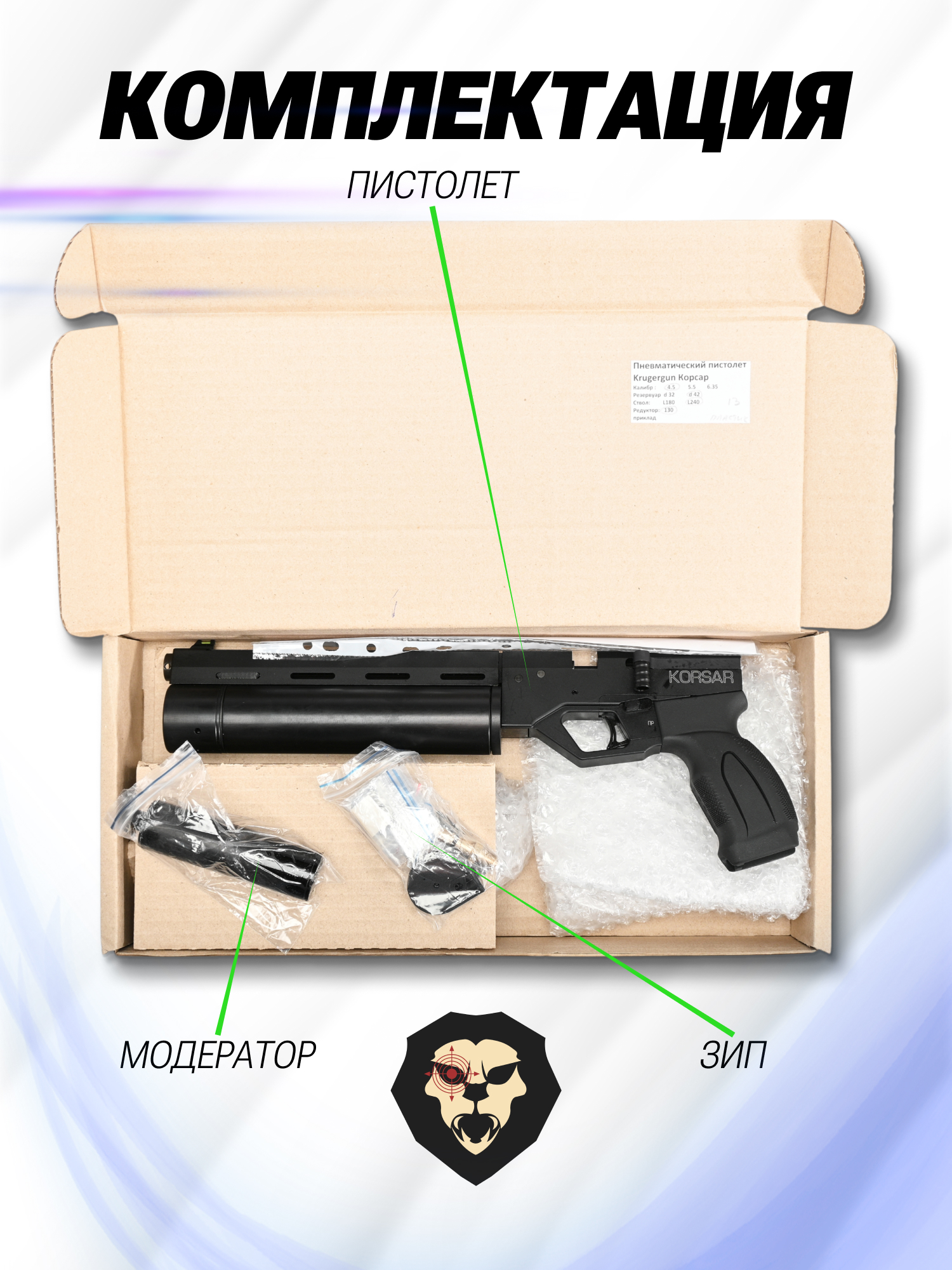 Артикул производителя 8505-10031-4 Пневматический пистолет Krugergun Корсар 4.5 мм (240 мм, редуктор, D42, с манометром) по низкой цене 38250 руб. Модель со штрихкодом производителя Вы можете оплатить наложенным платежем с доставкой или в отделении транспортной компании (ПЭК, СДЭК, Boxberry). Ваш заказ со штрихкодом 2000000092089 забрать на почте с оплатой при получении в любой части Российской Федерации.