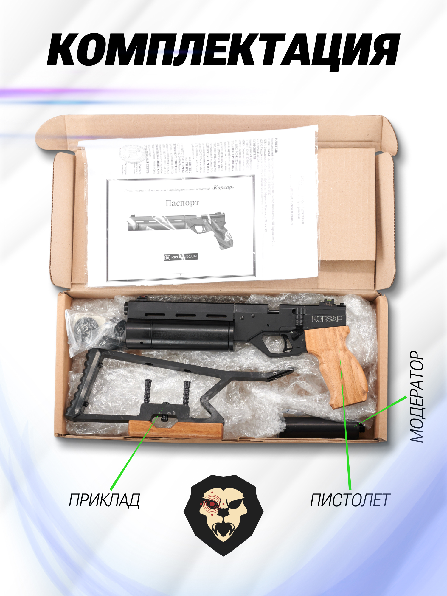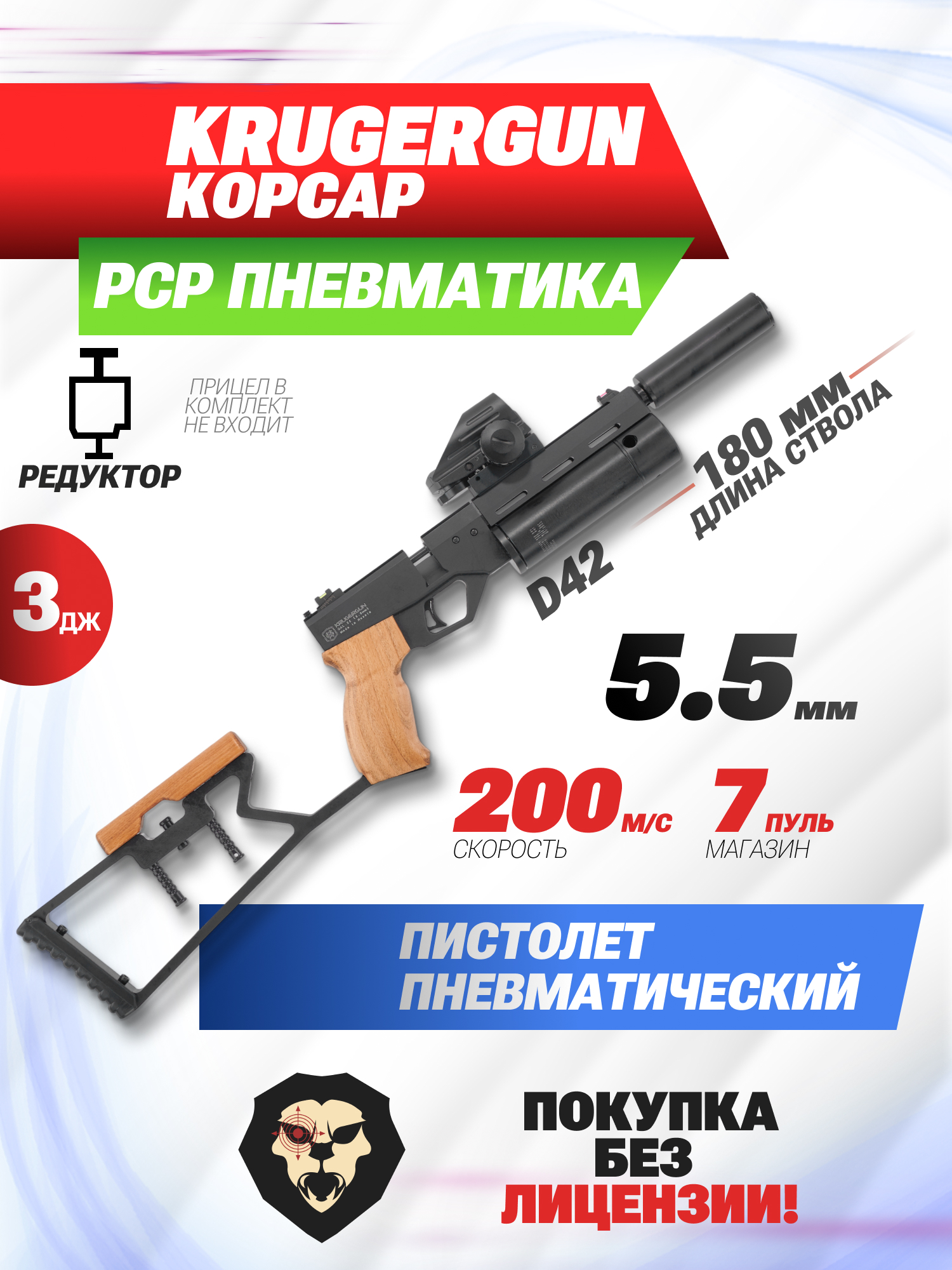 Информация о товаре "Пневматический пистолет Krugergun Корсар 5.5 мм (180 мм, D42, с манометром, с прикладом, дерево, редуктор)" носит ознакомительный характер, и не является публичной офертой, определяемой положениями Статьи 437 Гражданского кодекса Российской Федерации, характеристики, внешний вид, цвет и комплектация могут быть изменены производителем без уведомления.