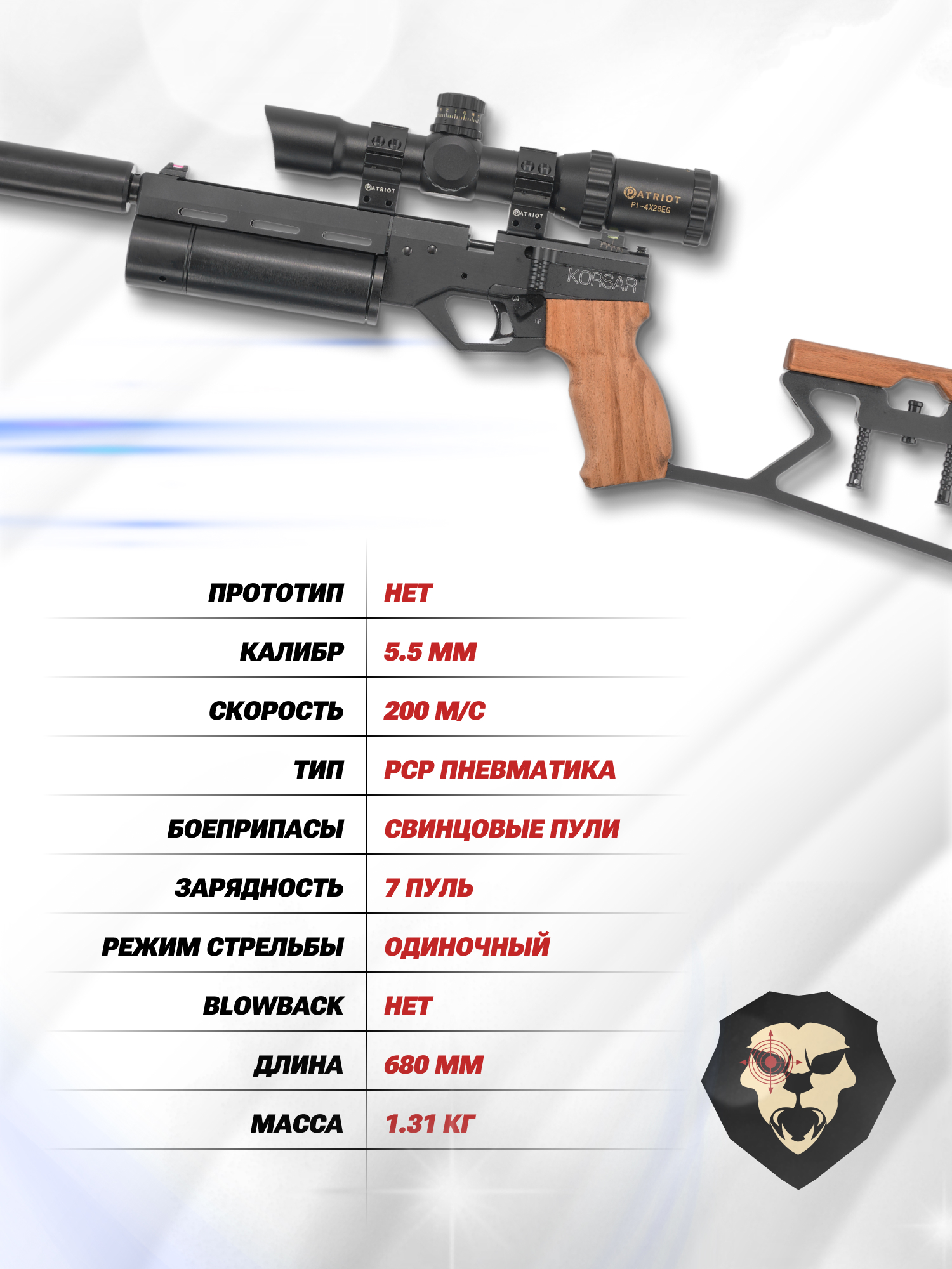 | Тип | PCP пневматика |