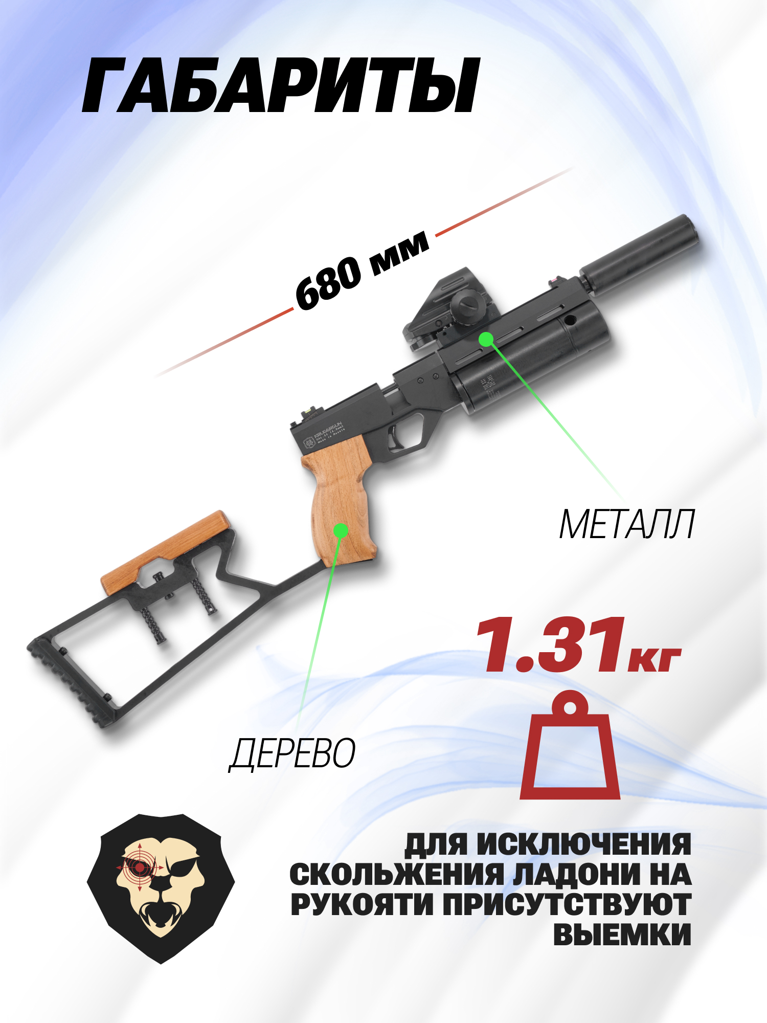 Внимание! Данная модель поставляется в разрешенной мощности для свободного приобретения на территории Российской Федерации. При этом в модели имеется возможность увеличения мощности путем замены части деталей или настройки конструкции, однако не стоит забывать о Федеральном законе «Об оружии» № 150 - ФЗ. В случае необходимости, опираясь на данный закон и руководствуясь им, возможно, потребуется получить разрешение от ЛЛР ГУ МВД России после вмешательства в конструкцию.
