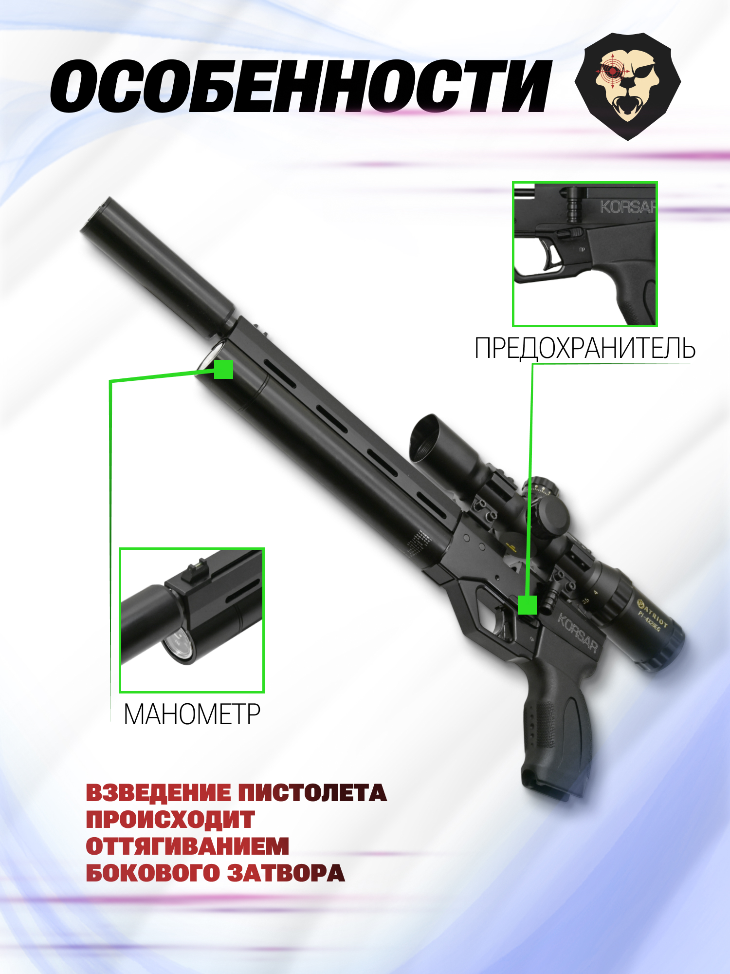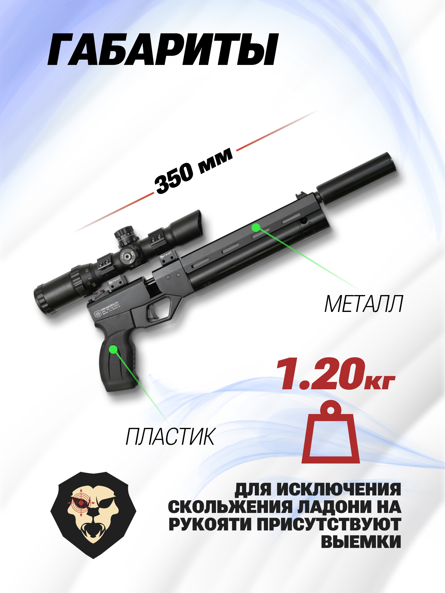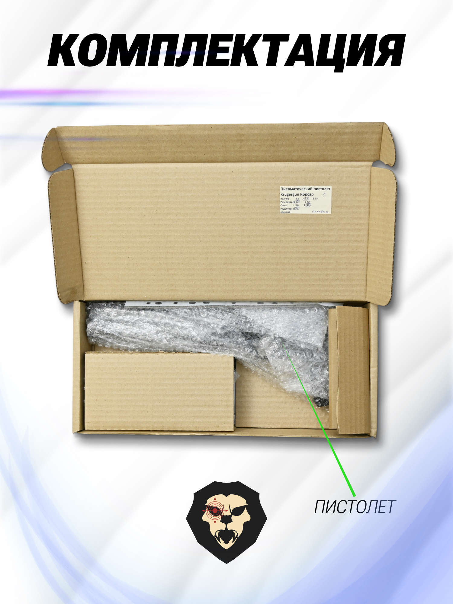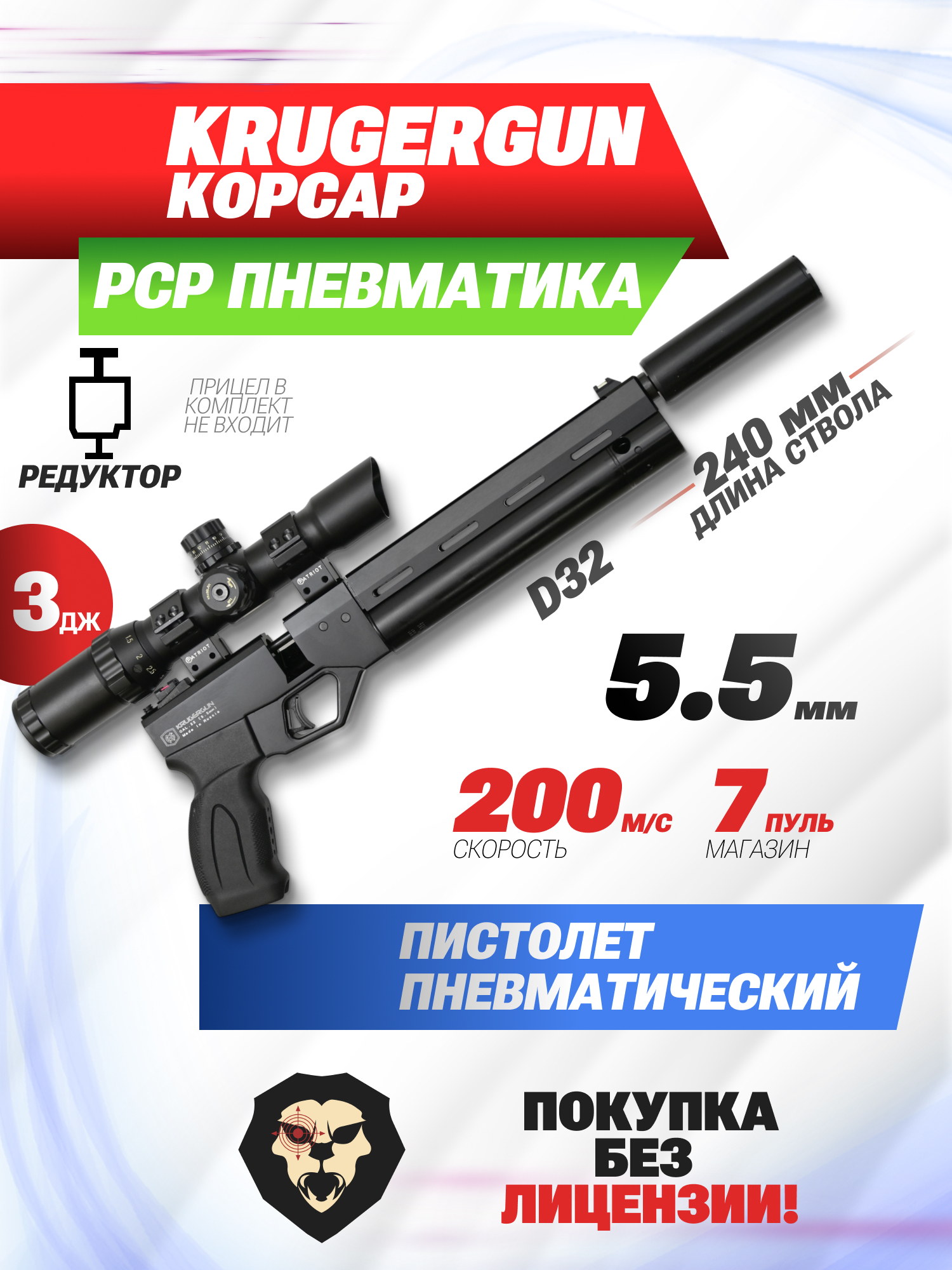 Информация о товаре "Пневматический пистолет Krugergun Корсар 5.5 мм (240 мм, D32, с манометром, редуктор, пластик)" носит ознакомительный характер, и не является публичной офертой, определяемой положениями Статьи 437 Гражданского кодекса Российской Федерации, характеристики, внешний вид, цвет и комплектация могут быть изменены производителем без уведомления.