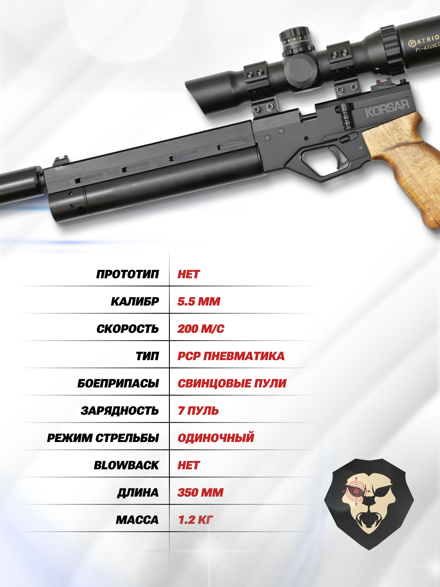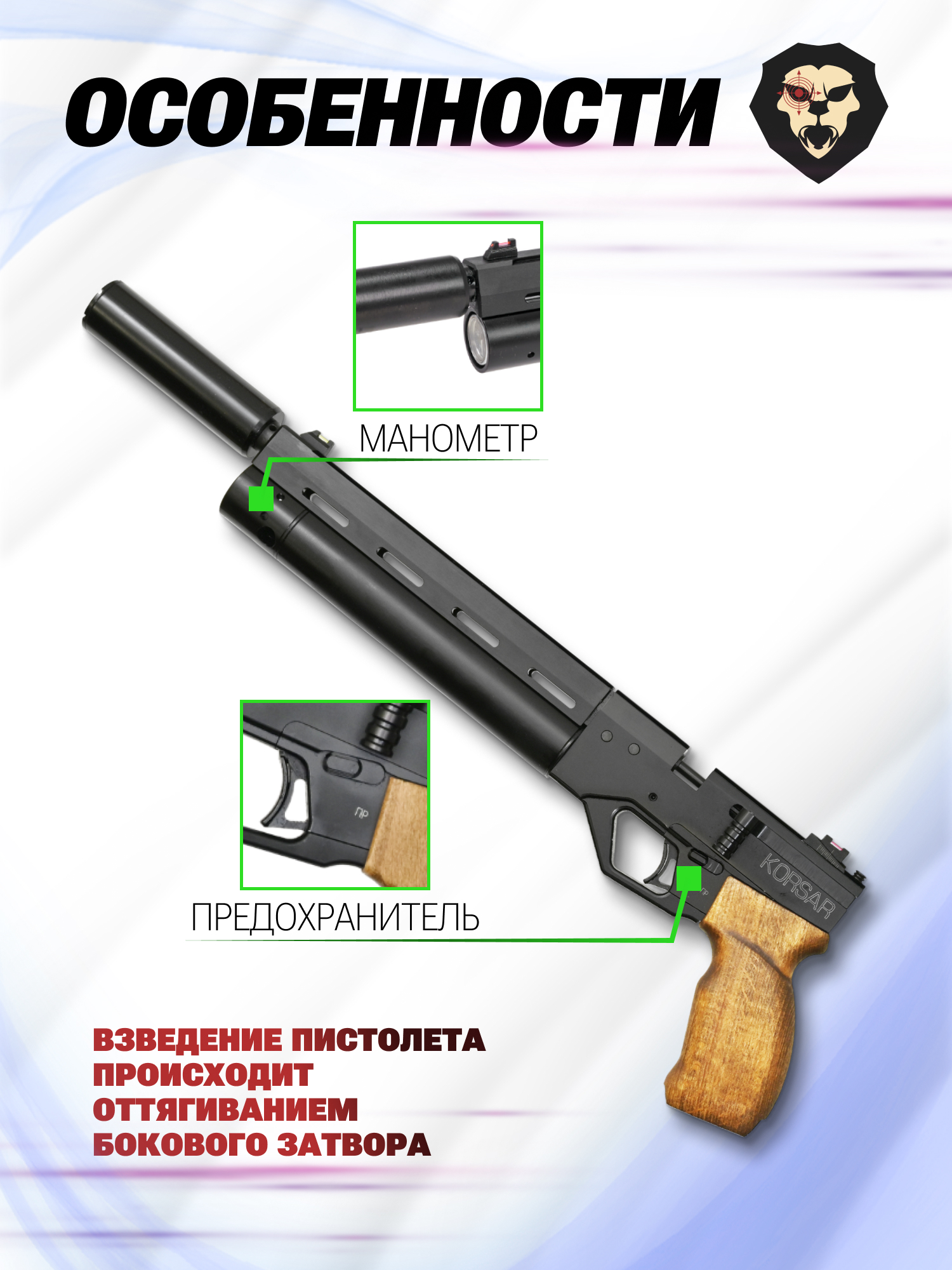 Пневматический пистолет Krugergun Корсар 5.5 мм (240 мм, D32, редуктор, с манометром, дерево) купить в интернет-магазине Popadiv10.