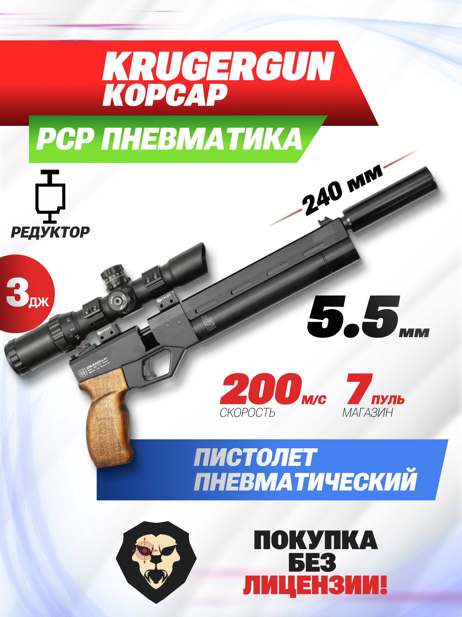Информация о товаре "Пневматический пистолет Krugergun Корсар 5.5 мм (240 мм, D32, редуктор, с манометром, дерево)" носит ознакомительный характер, и не является публичной офертой, определяемой положениями Статьи 437 Гражданского кодекса Российской Федерации, характеристики, внешний вид, цвет и комплектация могут быть изменены производителем без уведомления.