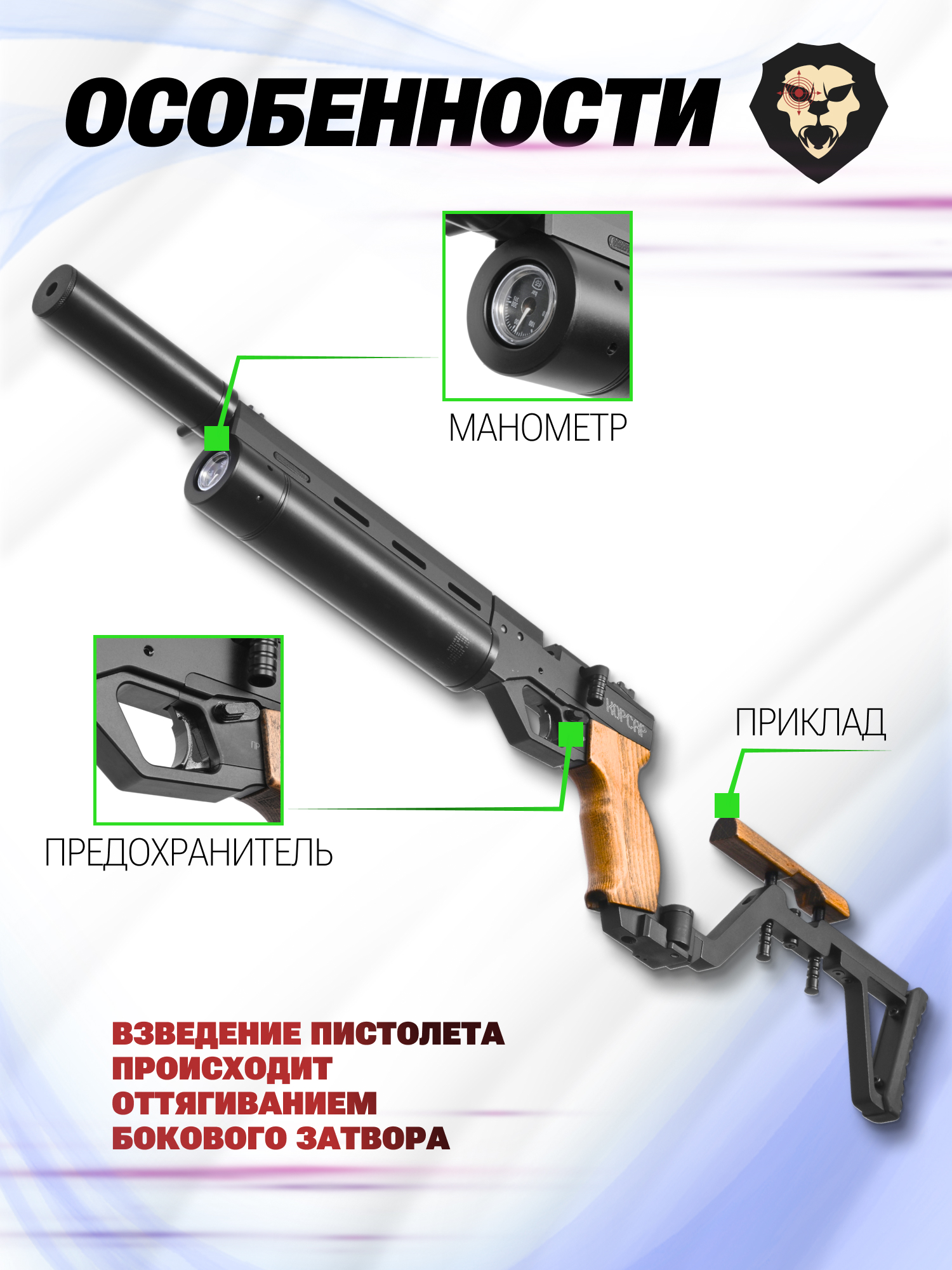 Пневматический пистолет KrugerGun Корсар 5.5 мм (D42, ствол 240, с манометром, с прикладом, дерево, прямоток) купить в интернет-магазине Popadiv10.