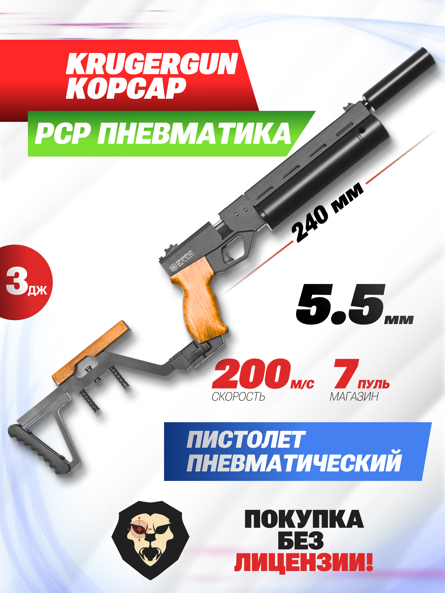 Информация о товаре "Пневматический пистолет KrugerGun Корсар 5.5 мм (D42, ствол 240, с манометром, с прикладом, дерево, прямоток)" носит ознакомительный характер, и не является публичной офертой, определяемой положениями Статьи 437 Гражданского кодекса Российской Федерации, характеристики, внешний вид, цвет и комплектация могут быть изменены производителем без уведомления.