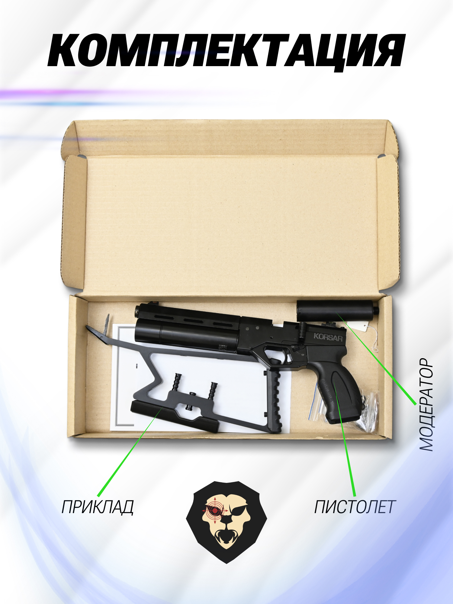 | Комплектация | Пистолет, упаковка, заправочный штуцер, магазин, набор уплотнителей, приклад, саундмодератор, краткая документация, копия сертификата (по запросу покупателя) |