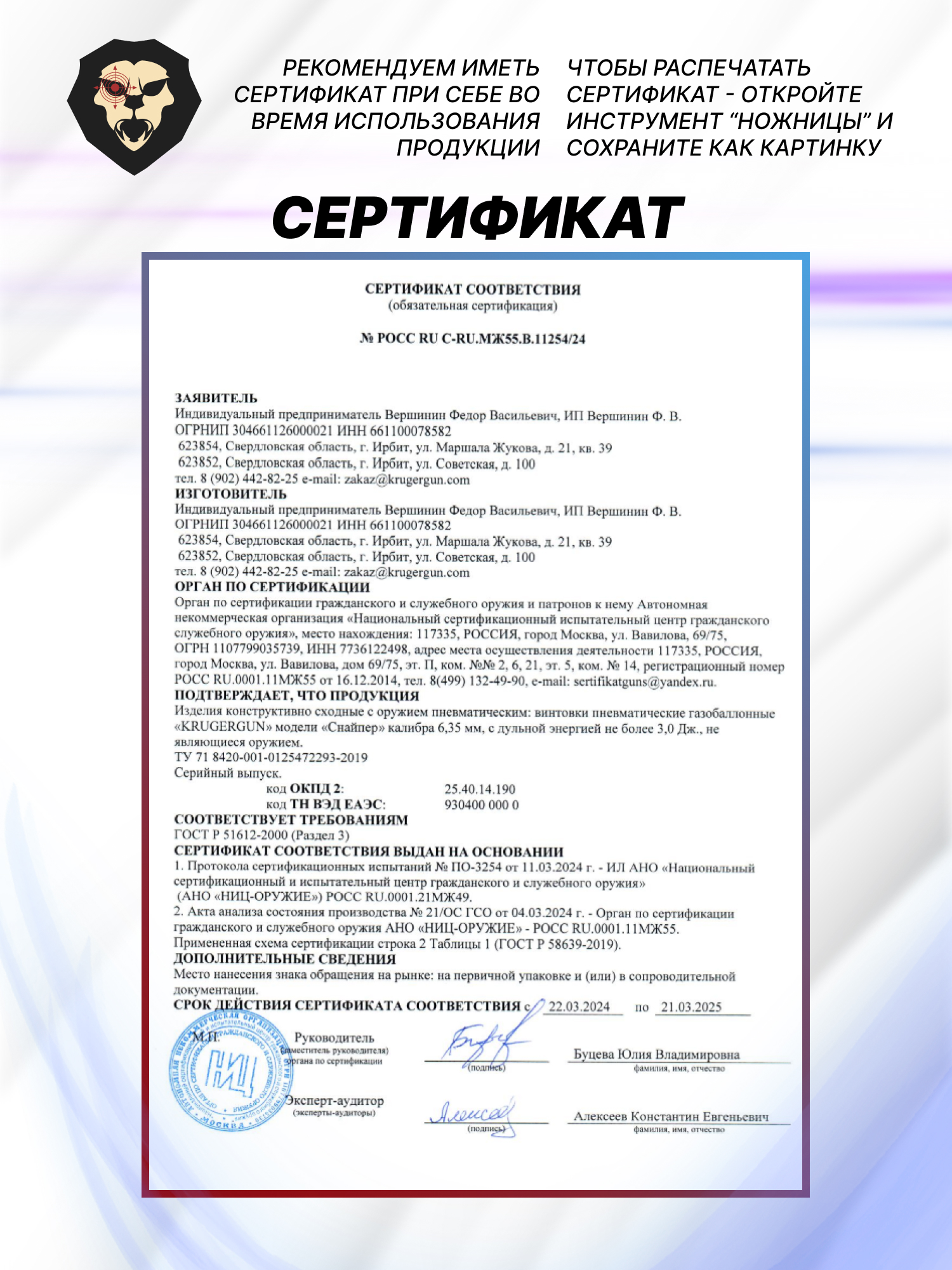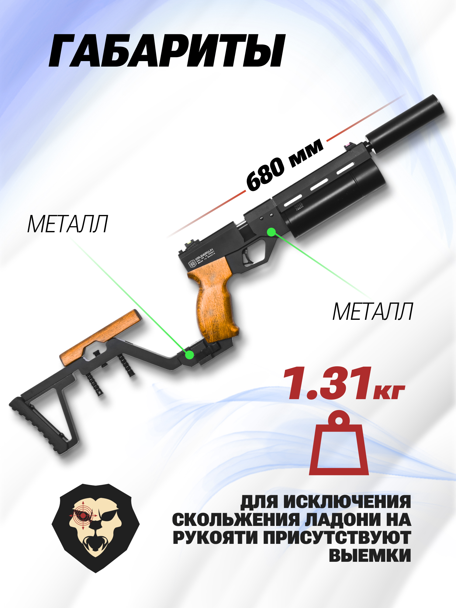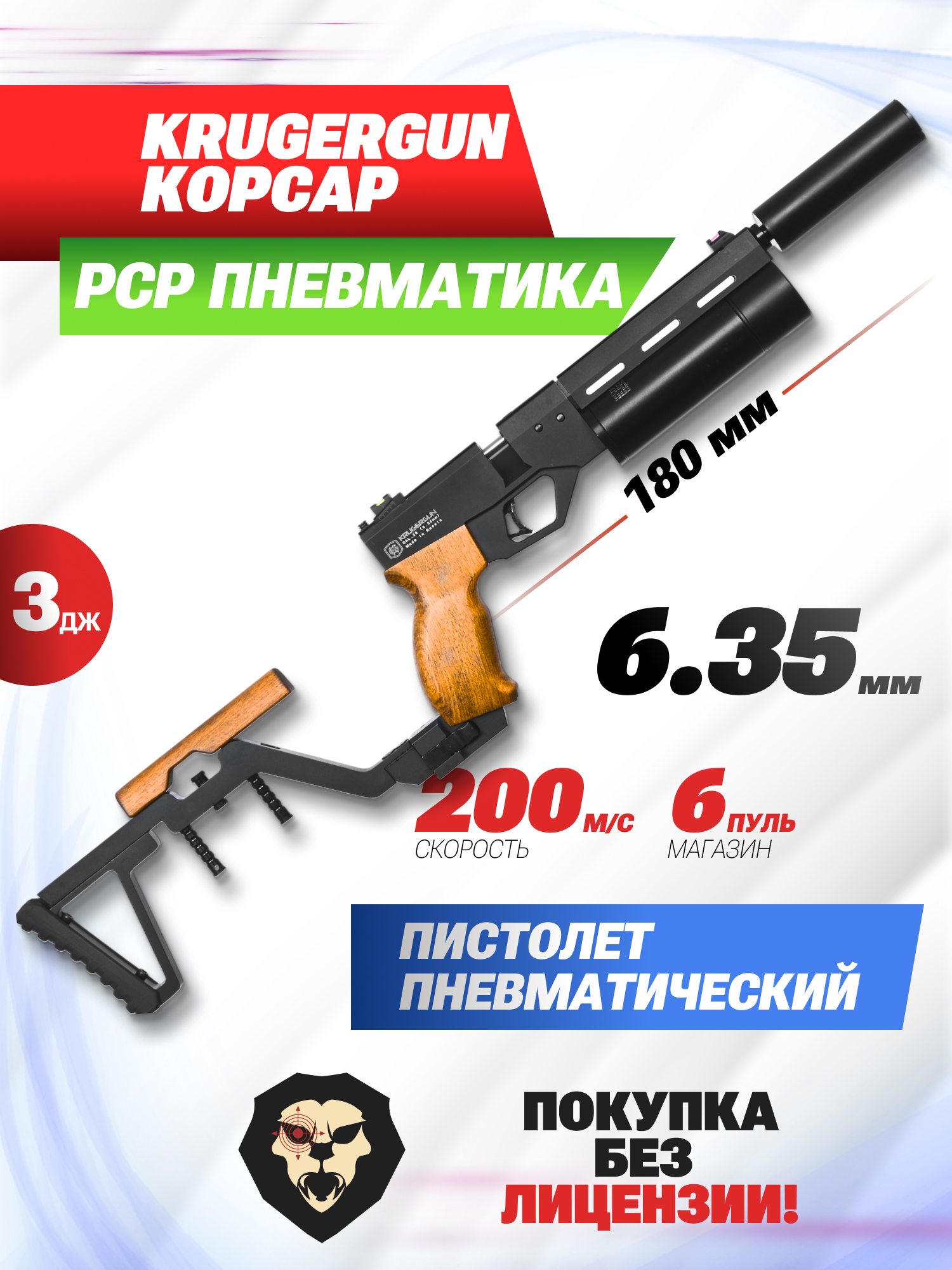 Информация о товаре "Пневматический пистолет KrugerGun Корсар 6.35 мм (180 мм, d42, прямоток, манометр, приклад, дерево)" носит ознакомительный характер, и не является публичной офертой, определяемой положениями Статьи 437 Гражданского кодекса Российской Федерации, характеристики, внешний вид, цвет и комплектация могут быть изменены производителем без уведомления.