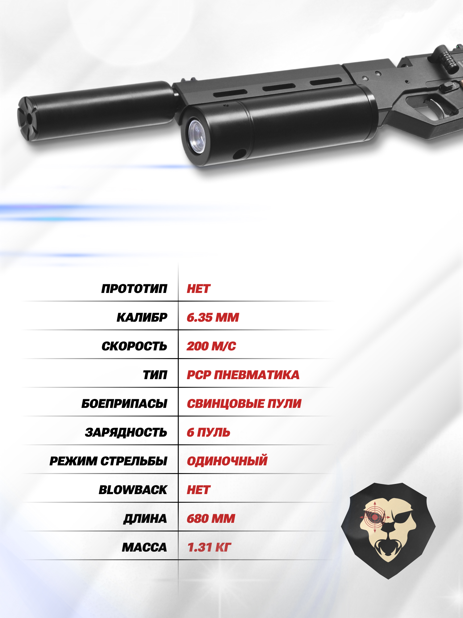 | Тип | PCP пневматика |