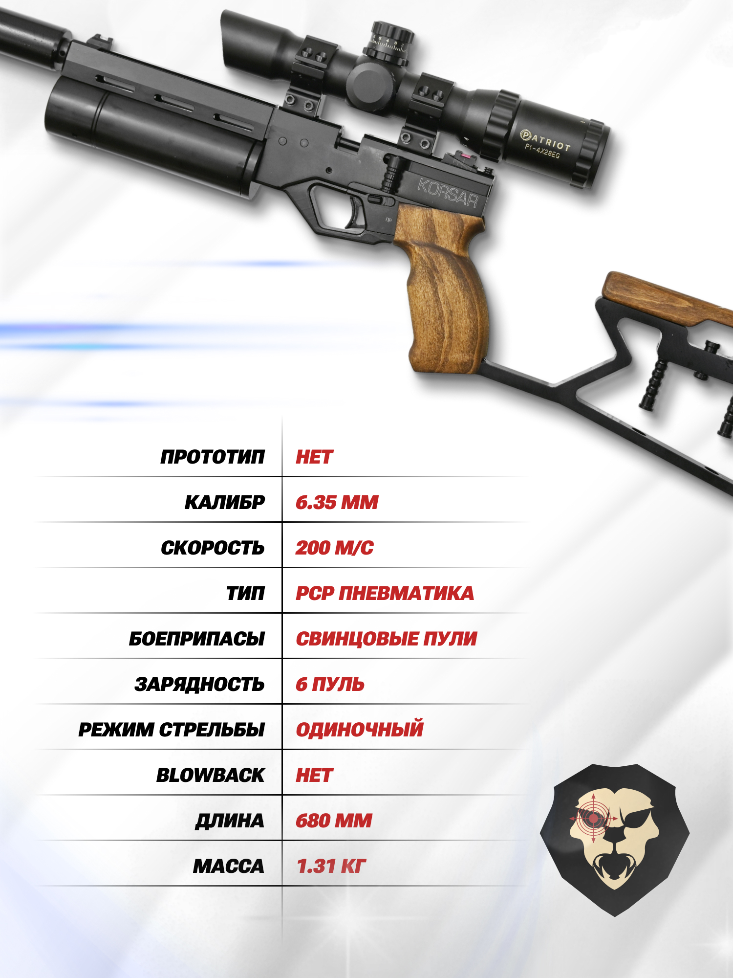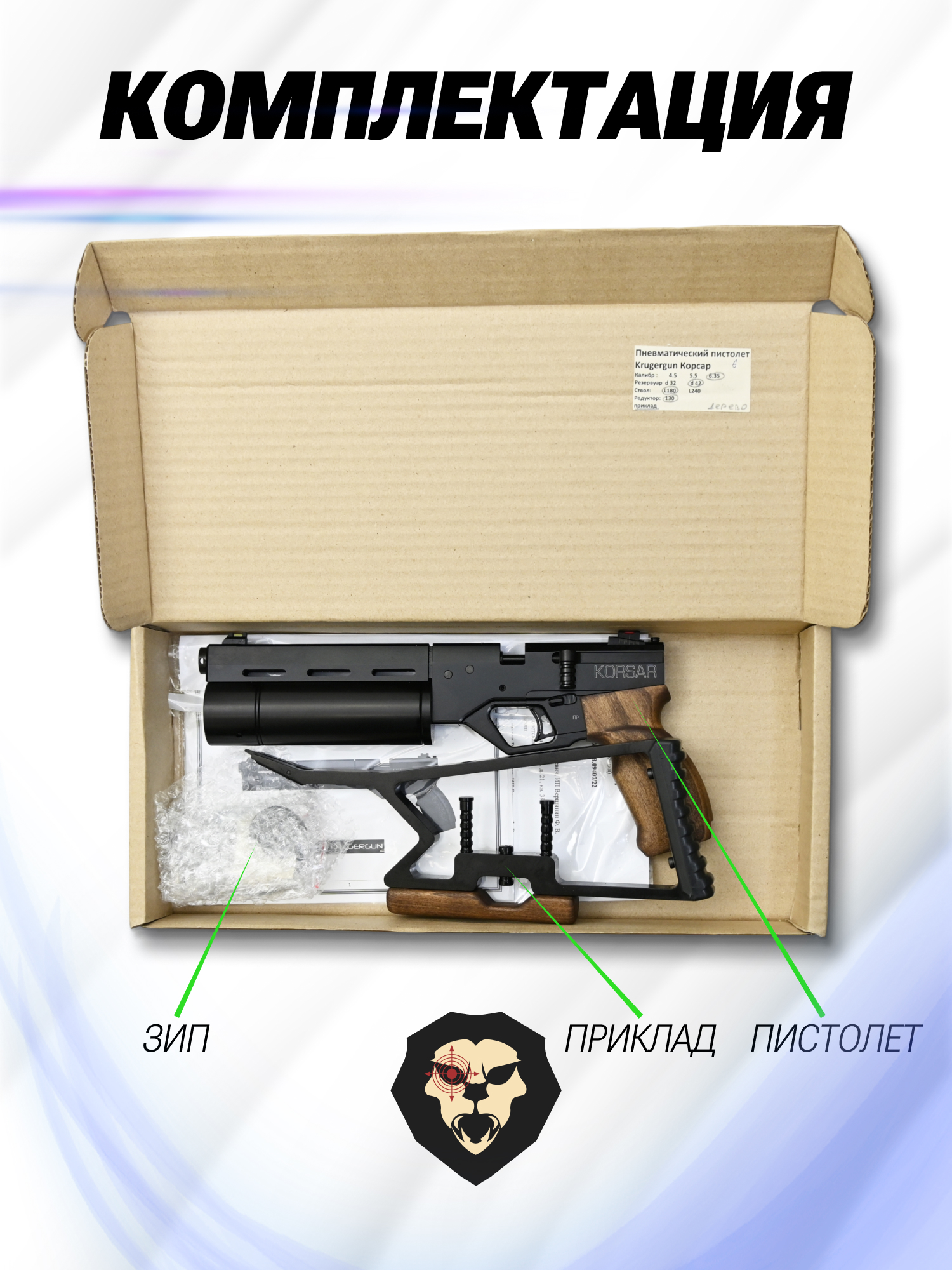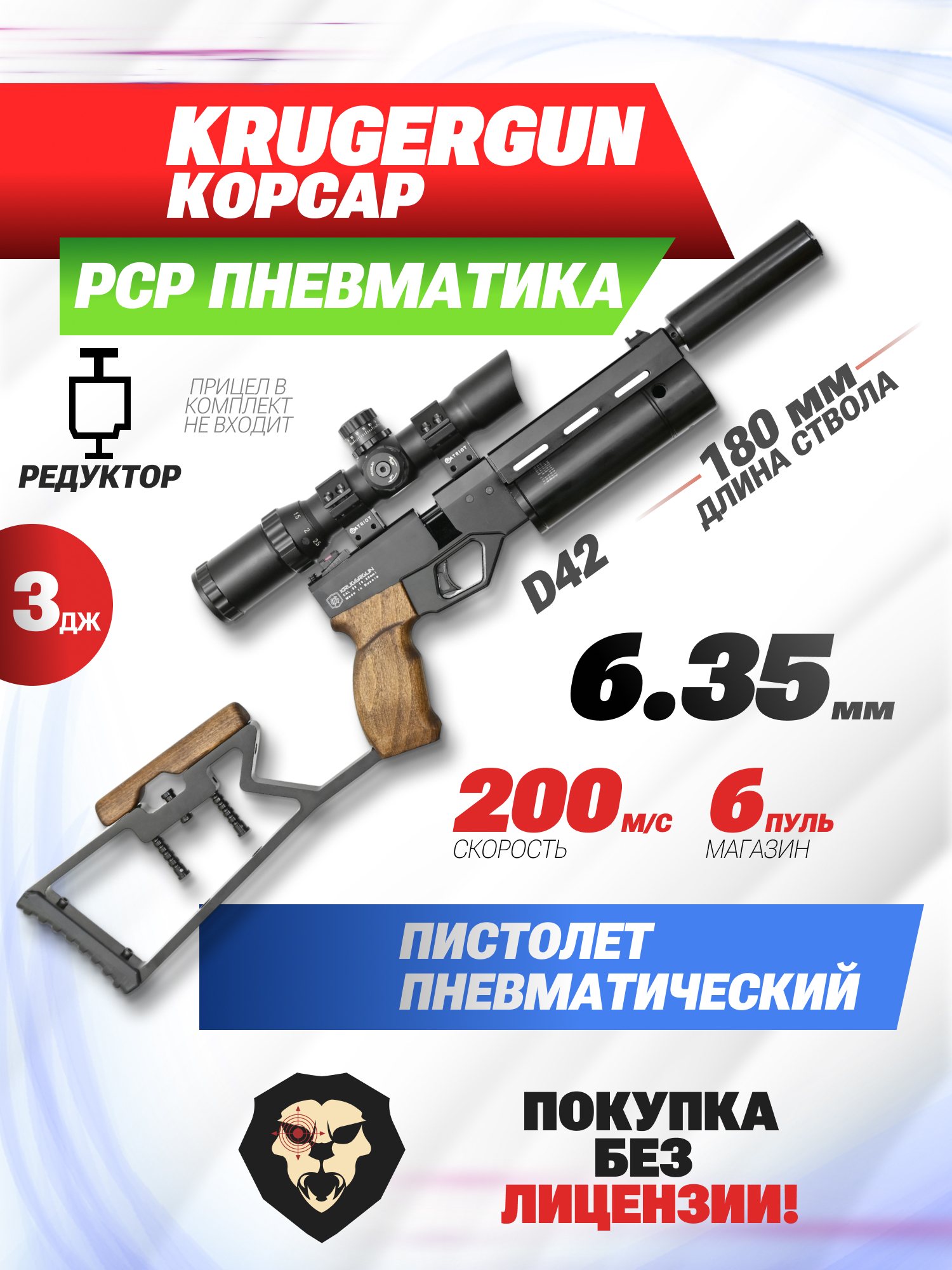 Информация о товаре "Пневматический пистолет KrugerGun Корсар 6.35 мм (180 мм, D42, редуктор, с манометром, с прикладом, дерево)" носит ознакомительный характер, и не является публичной офертой, определяемой положениями Статьи 437 Гражданского кодекса Российской Федерации, характеристики, внешний вид, цвет и комплектация могут быть изменены производителем без уведомления.