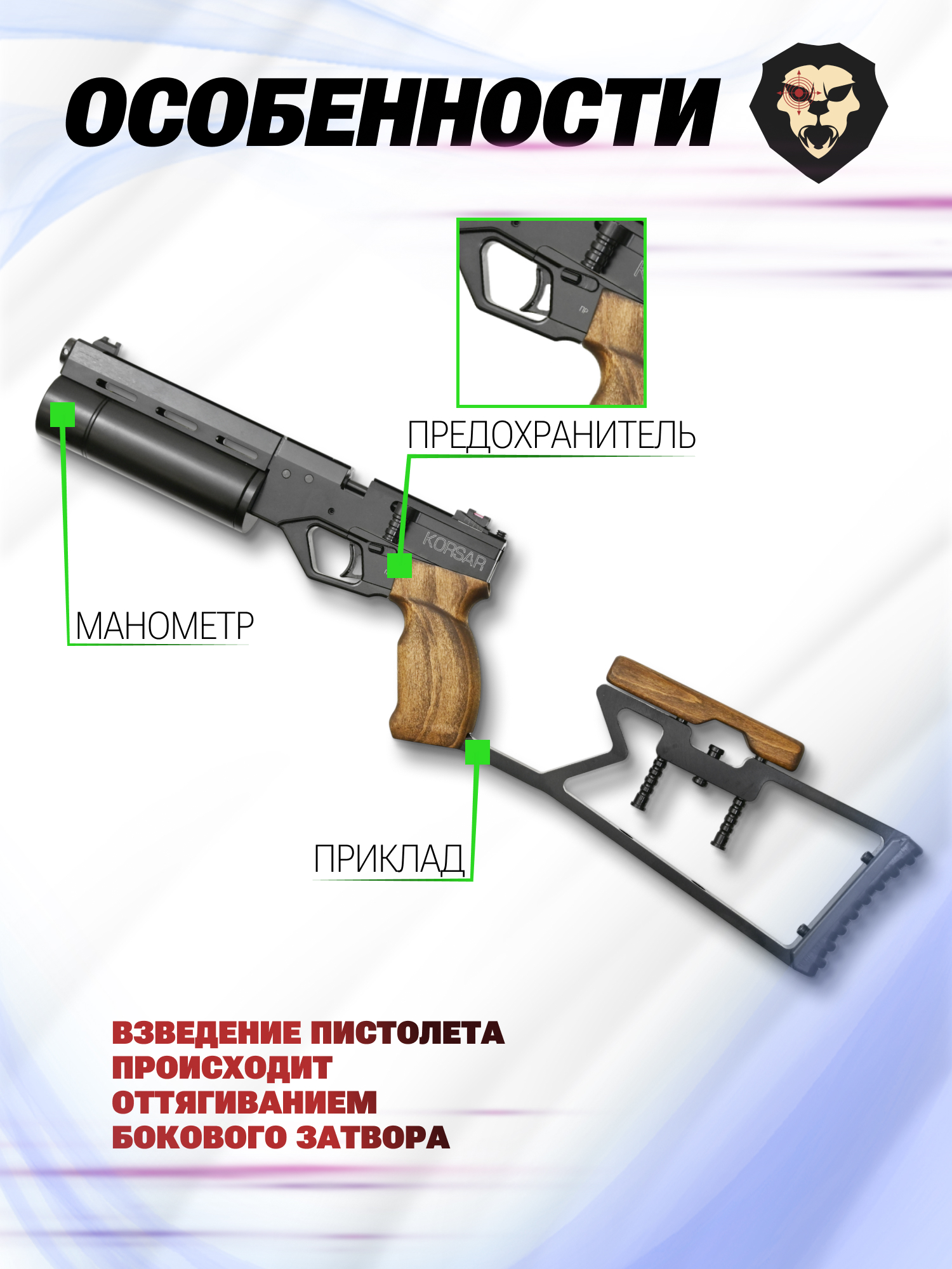 Пневматический пистолет KrugerGun Корсар 6.35 мм (180 мм, D42, редуктор, с манометром, с прикладом, дерево) купить в интернет-магазине Popadiv10.
