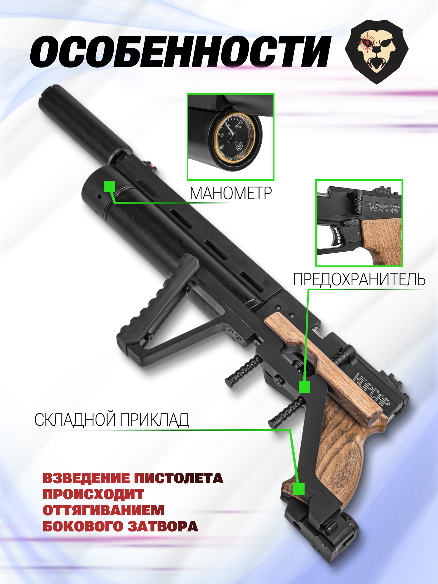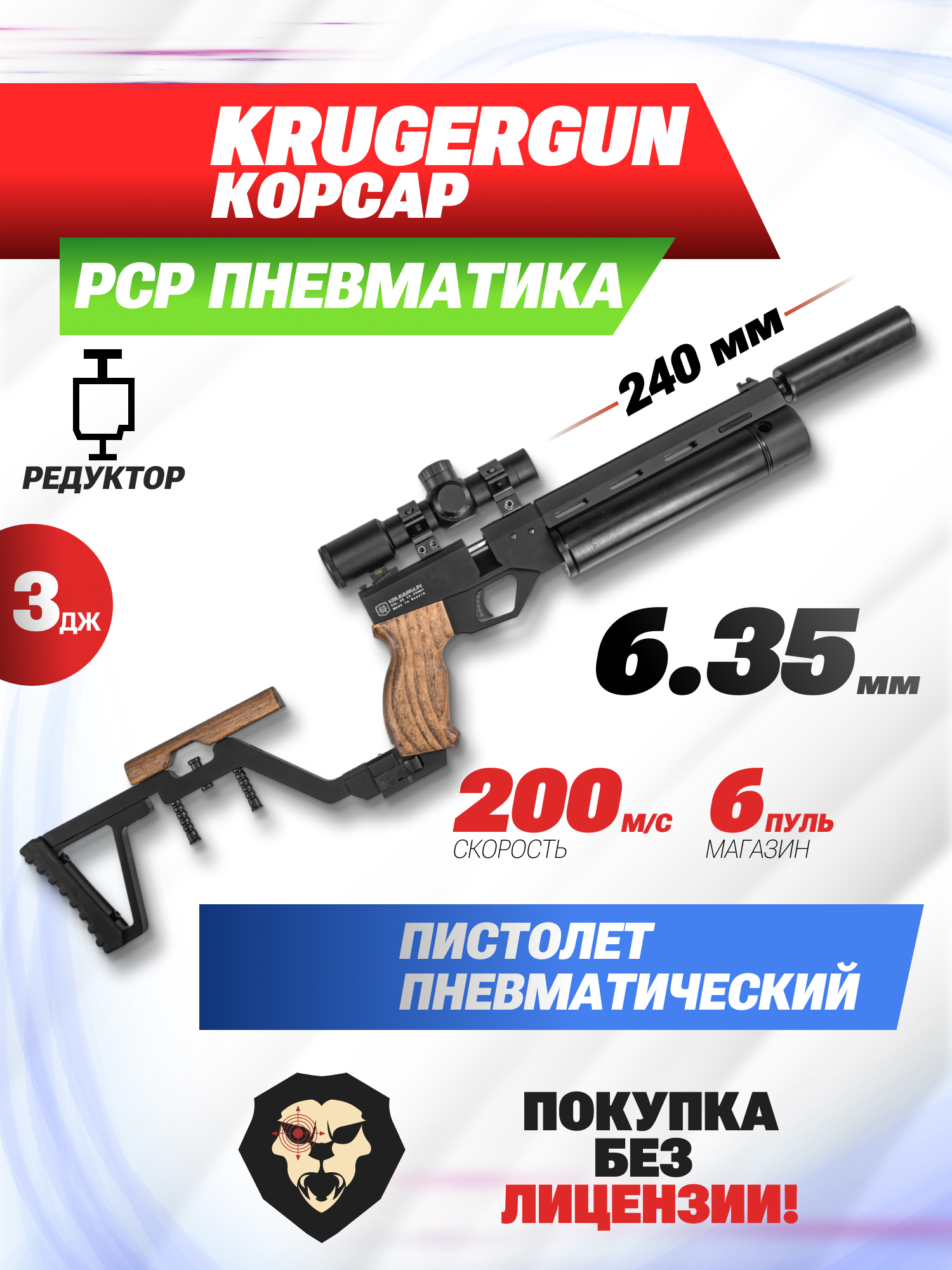 Пневматический пистолет KrugerGun Корсар 6.35 мм (240 мм, D42, приклад, манометр, дерево, редуктор) купить в интернет-магазине Popadiv10.