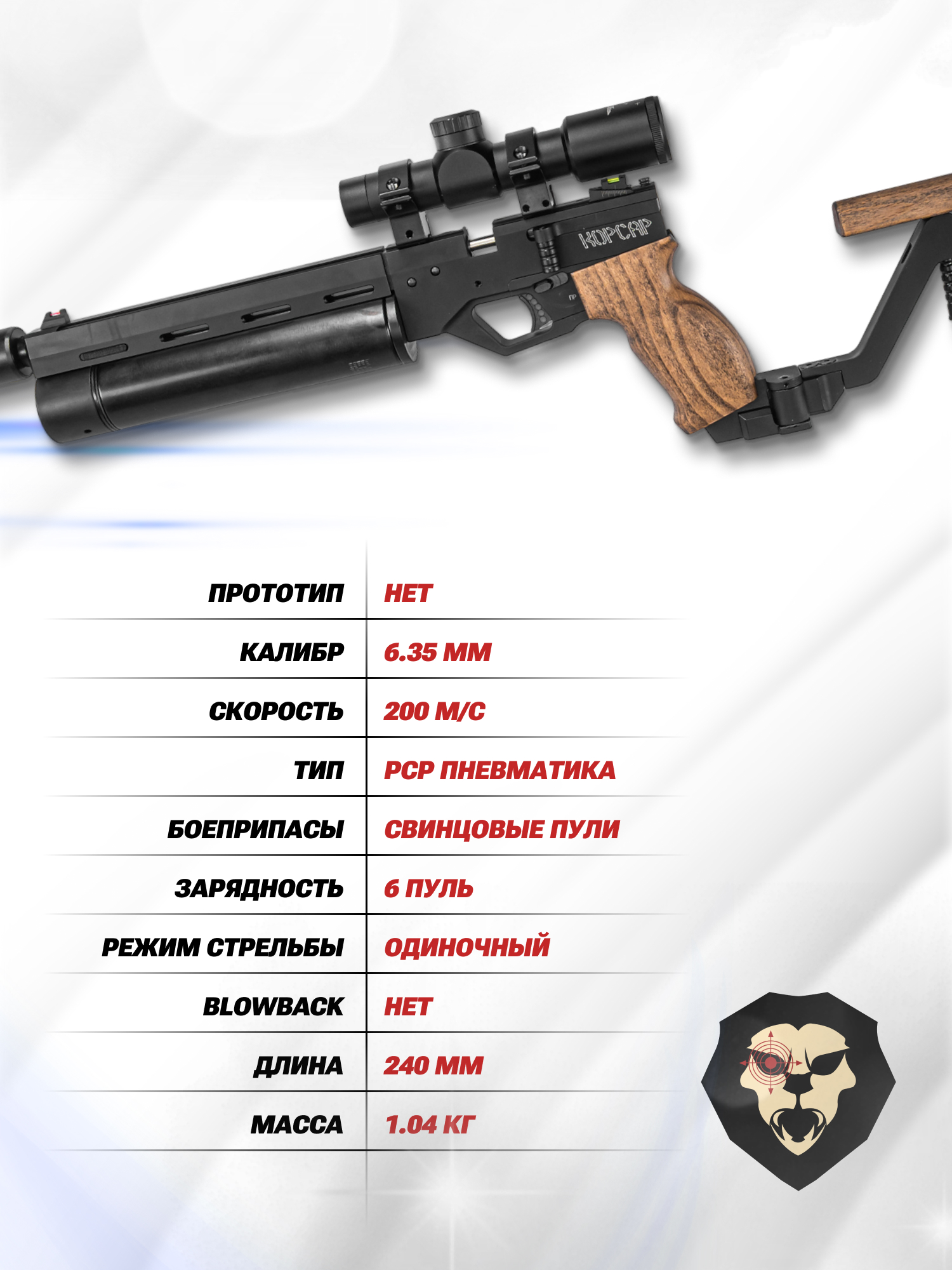 Информация о товаре "Пневматический пистолет KrugerGun Корсар 6.35 мм (240 мм, D42, приклад, манометр, дерево, редуктор)" носит ознакомительный характер, и не является публичной офертой, определяемой положениями Статьи 437 Гражданского кодекса Российской Федерации, характеристики, внешний вид, цвет и комплектация могут быть изменены производителем без уведомления.