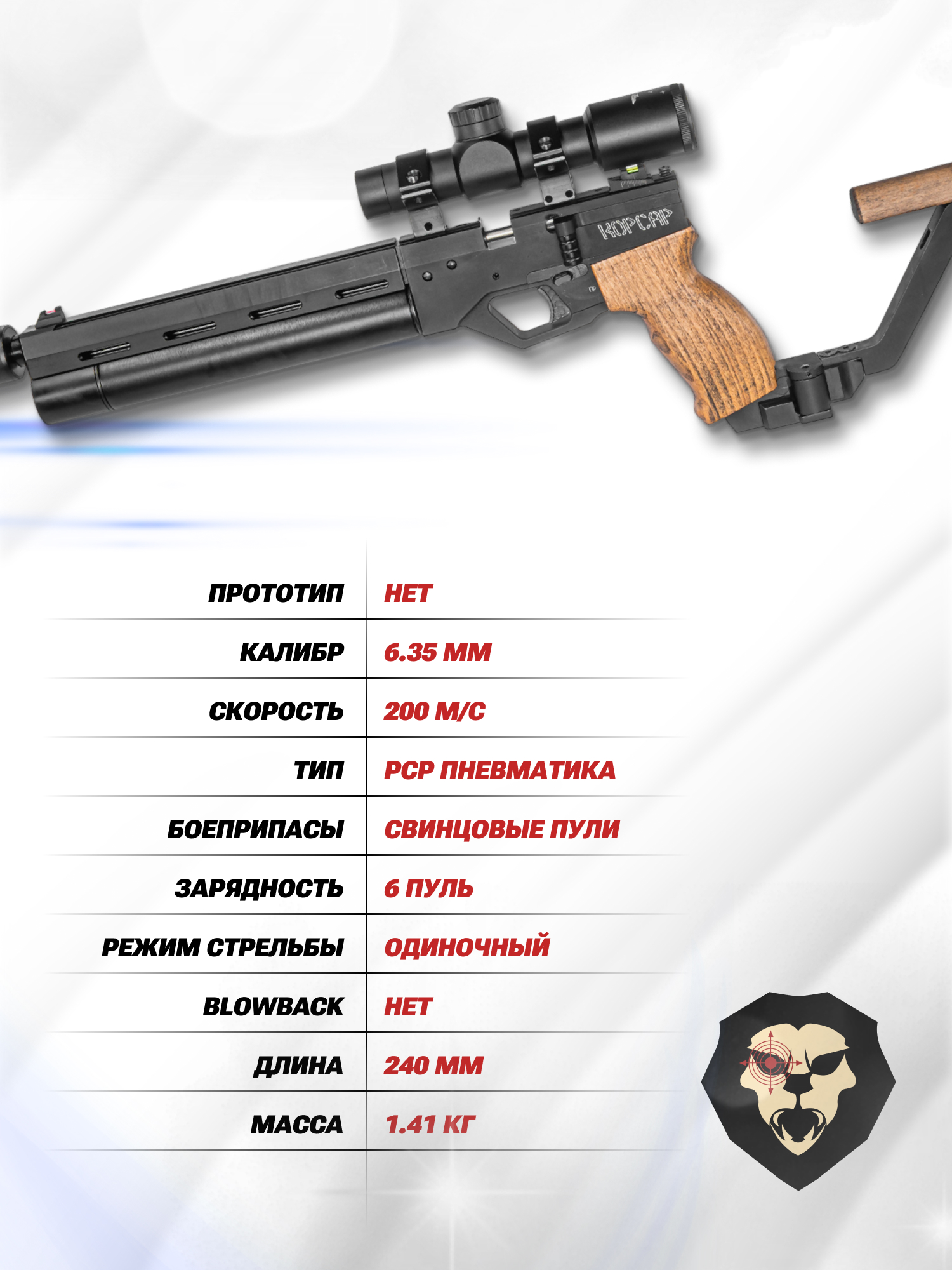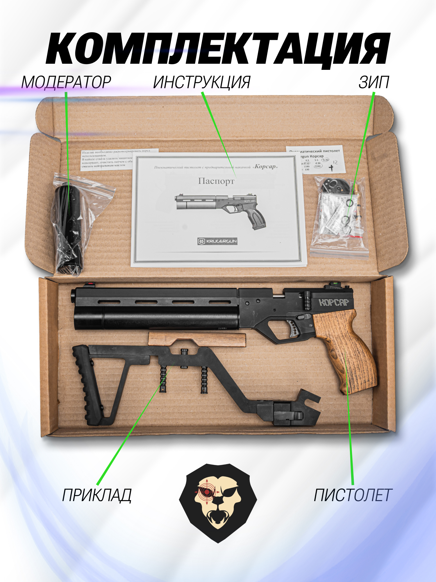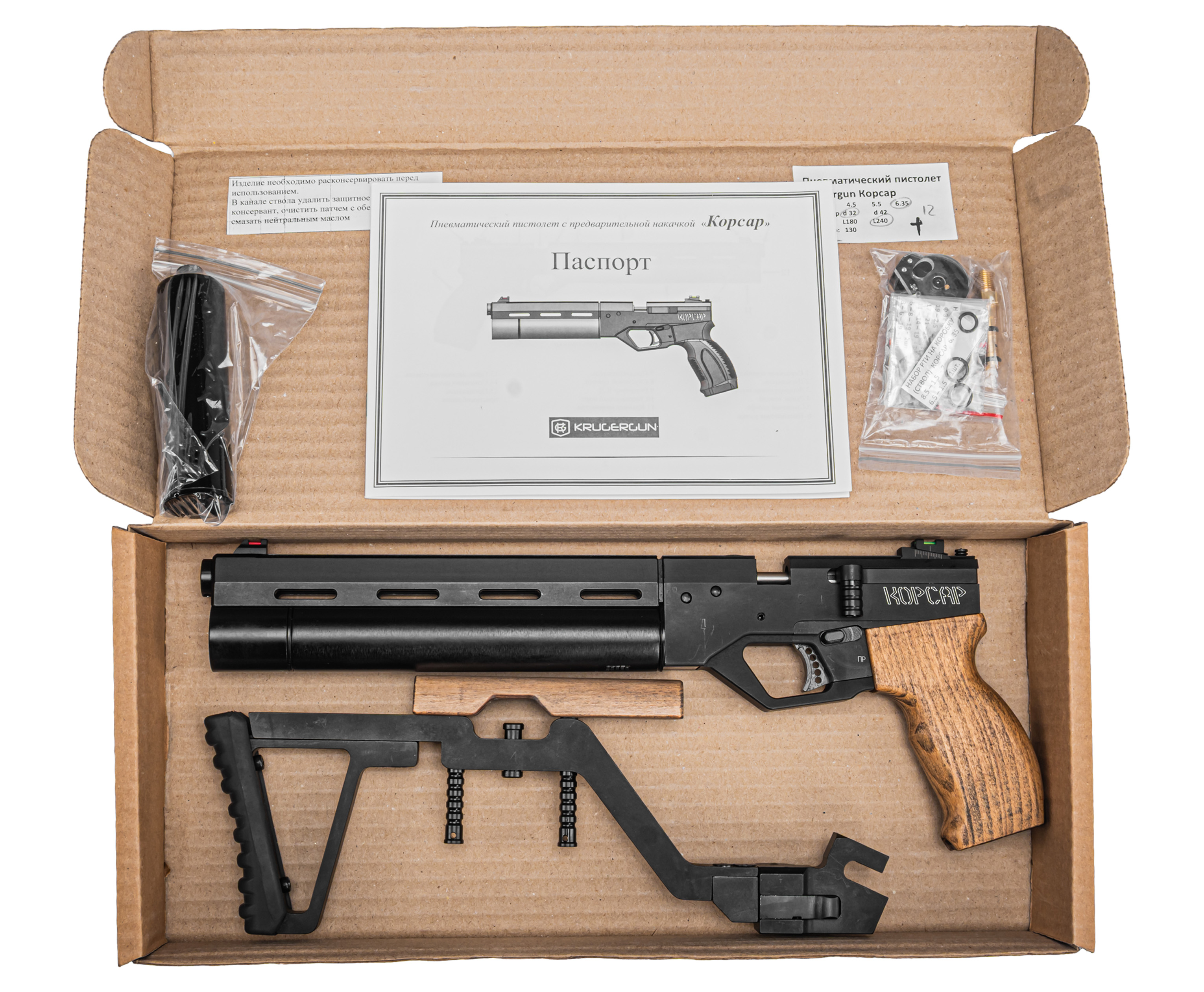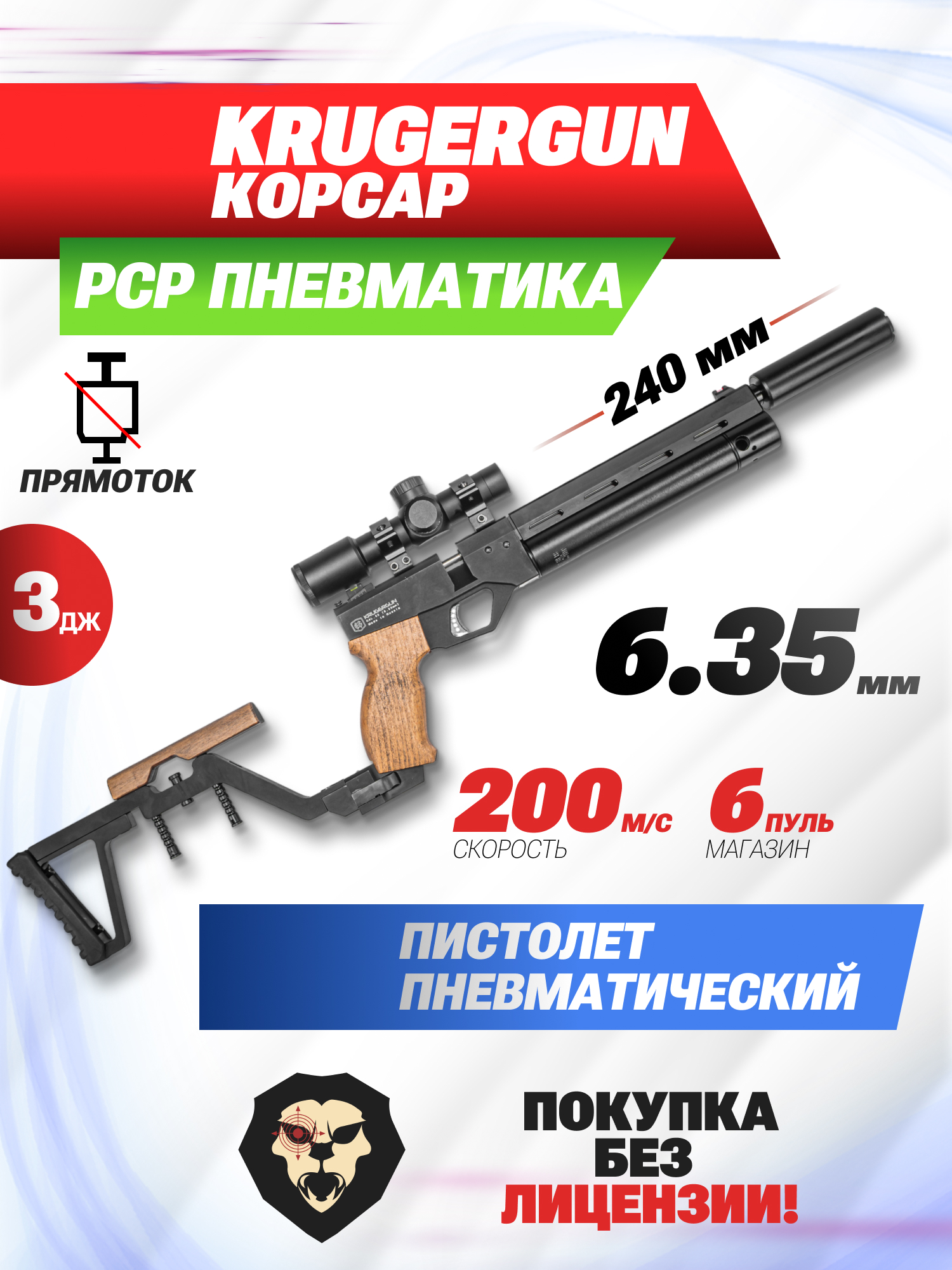 Информация о товаре "Пневматический пистолет KrugerGun Корсар 6.35 мм (d32, 240 мм, манометр, приклад, прямоток, дерево)" носит ознакомительный характер, и не является публичной офертой, определяемой положениями Статьи 437 Гражданского кодекса Российской Федерации, характеристики, внешний вид, цвет и комплектация могут быть изменены производителем без уведомления.