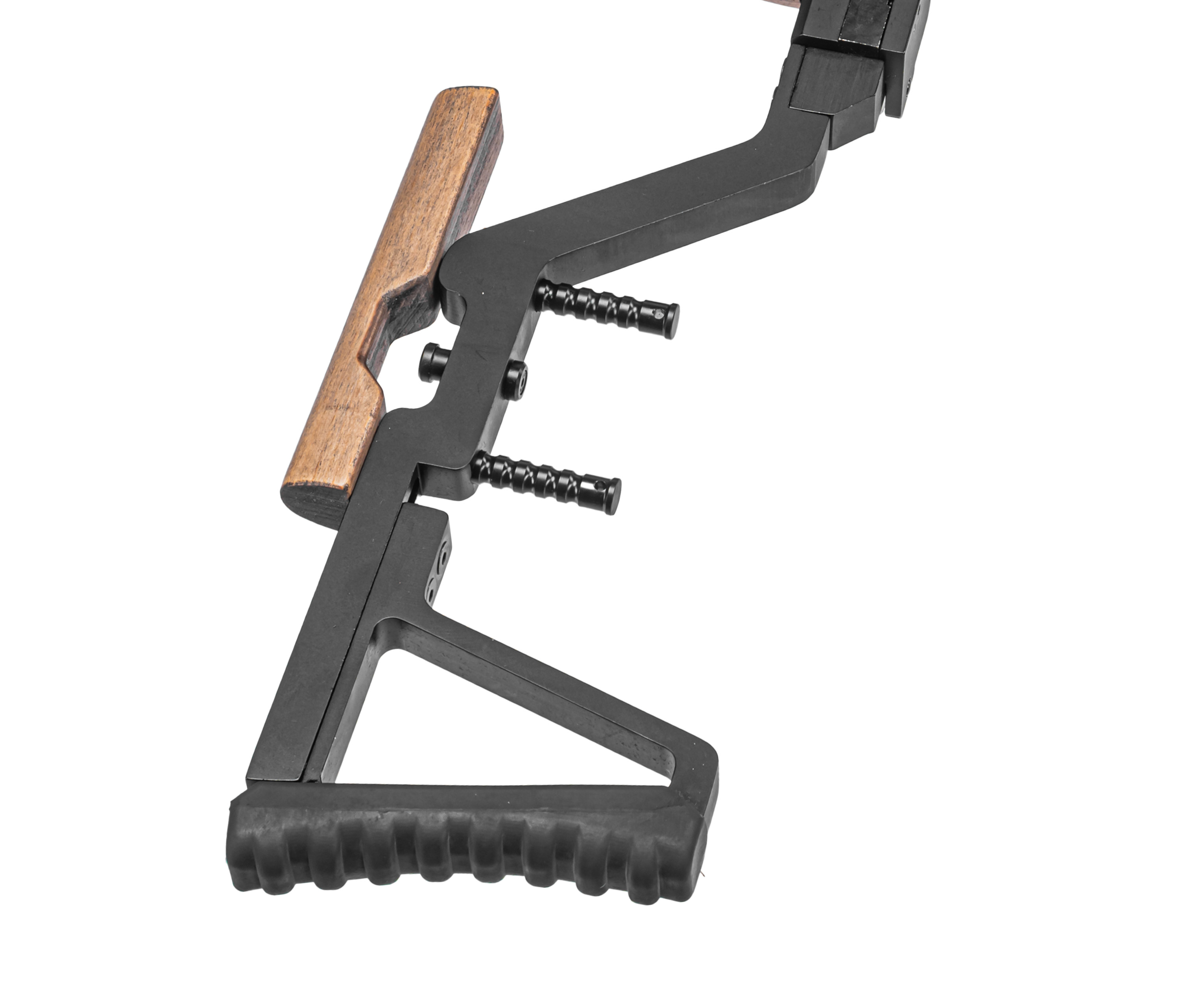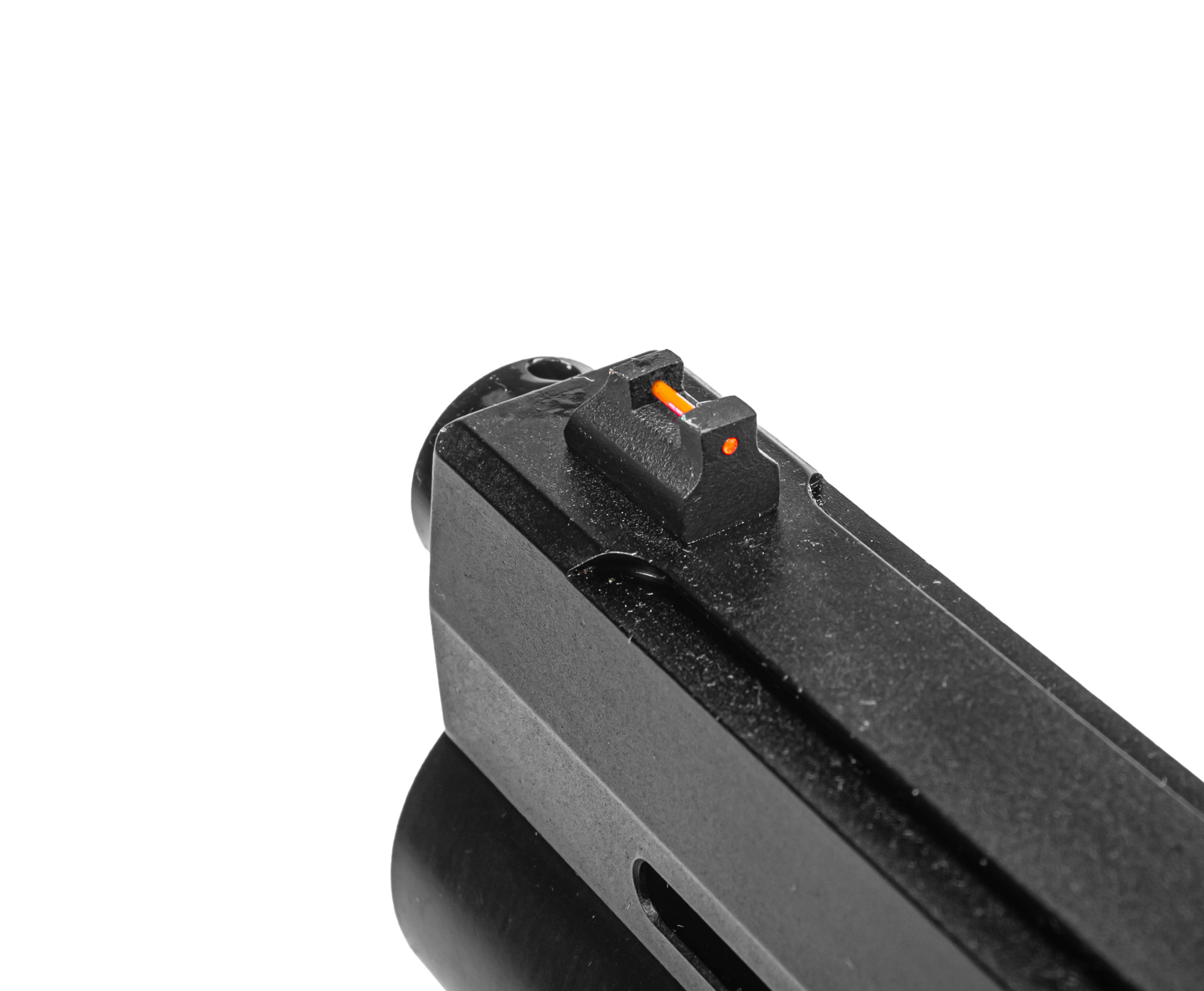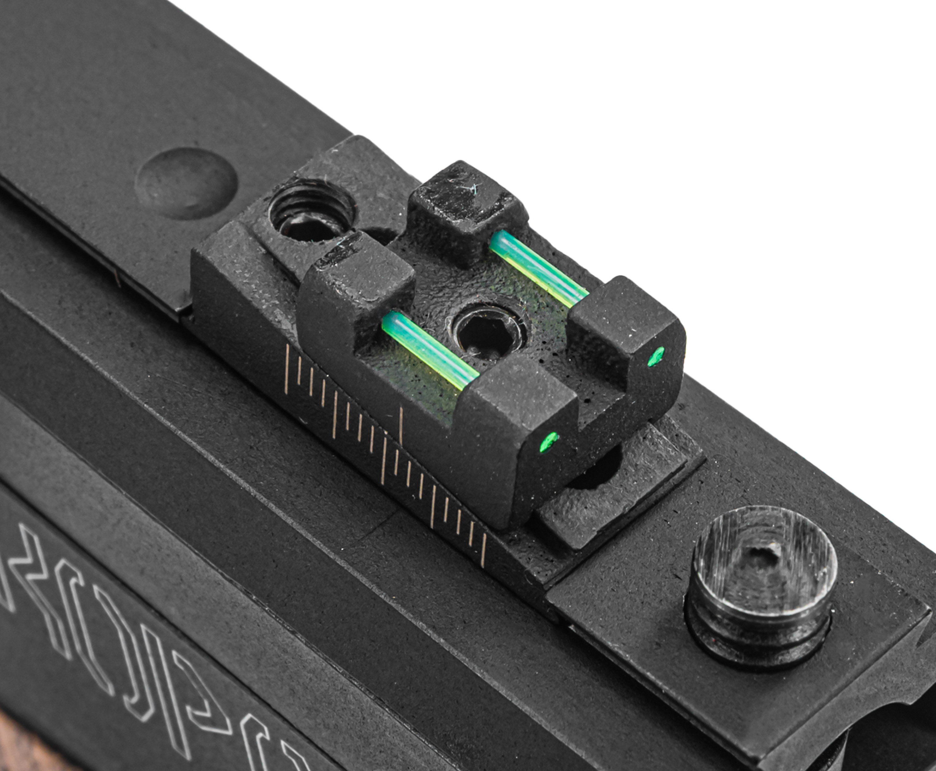 Опционально, пневматика может превратиться в компактный карабин за счет комплектного приклада скелетного типа с настраиваемым подщечником, дающим сформировать правильную вкладку, в том числе при использовании оптических или коллиматорных прицельных приспособлений, которые устанавливаются на направляющей рельсе формата «Ласточкин Хвост» с шириной одиннадцать миллиметров. В стандартном варианте поставки применяются регулируемые механические целик и мушка.