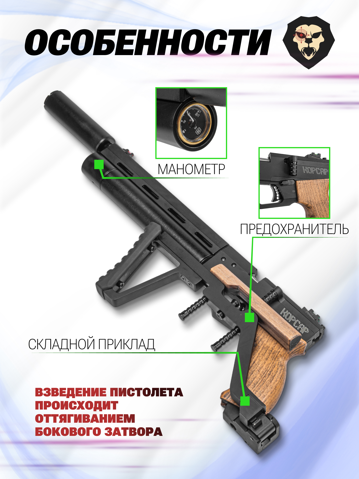 Пневматический пистолет KrugerGun Корсар 6.35 мм (d32, 240 мм, манометр, приклад, прямоток, дерево) купить в интернет-магазине Popadiv10.