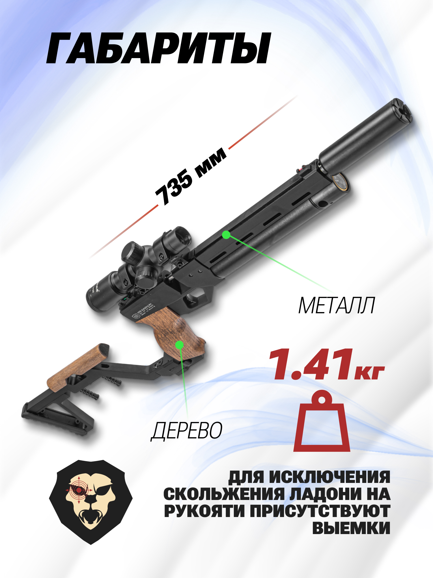 | Комплектация | Пистолет, упаковка, магазин, РТИ, саундмодератор, приклад, заправочный штуцер, краткая документация, копия сертификата (по запросу покупателя) |