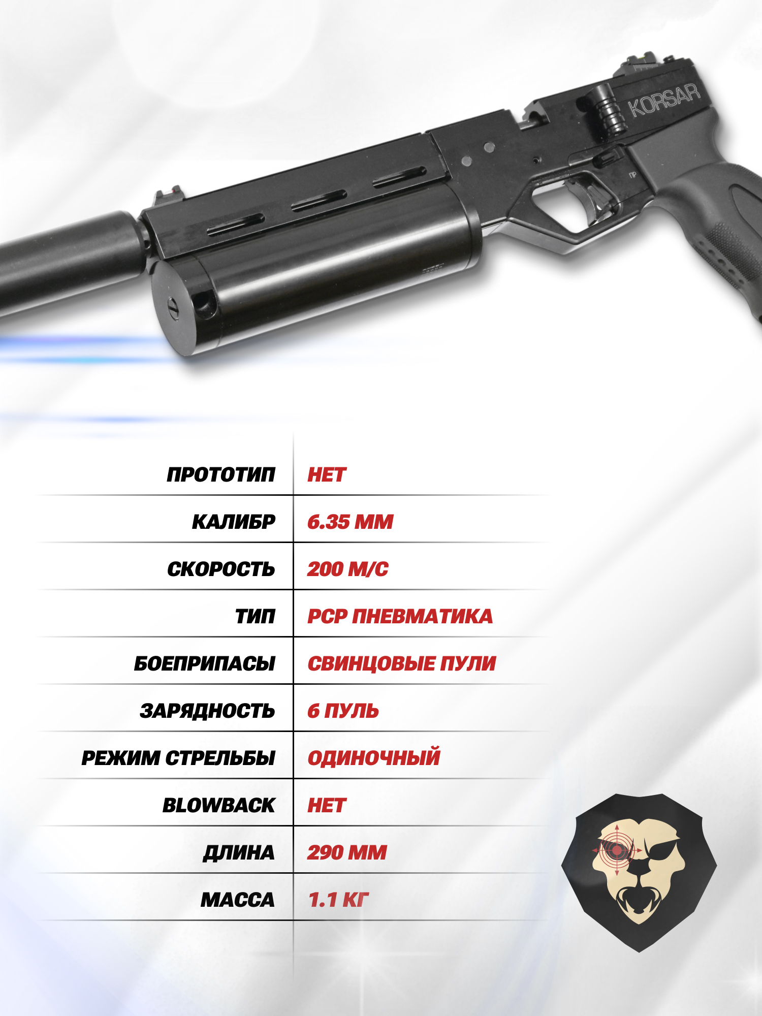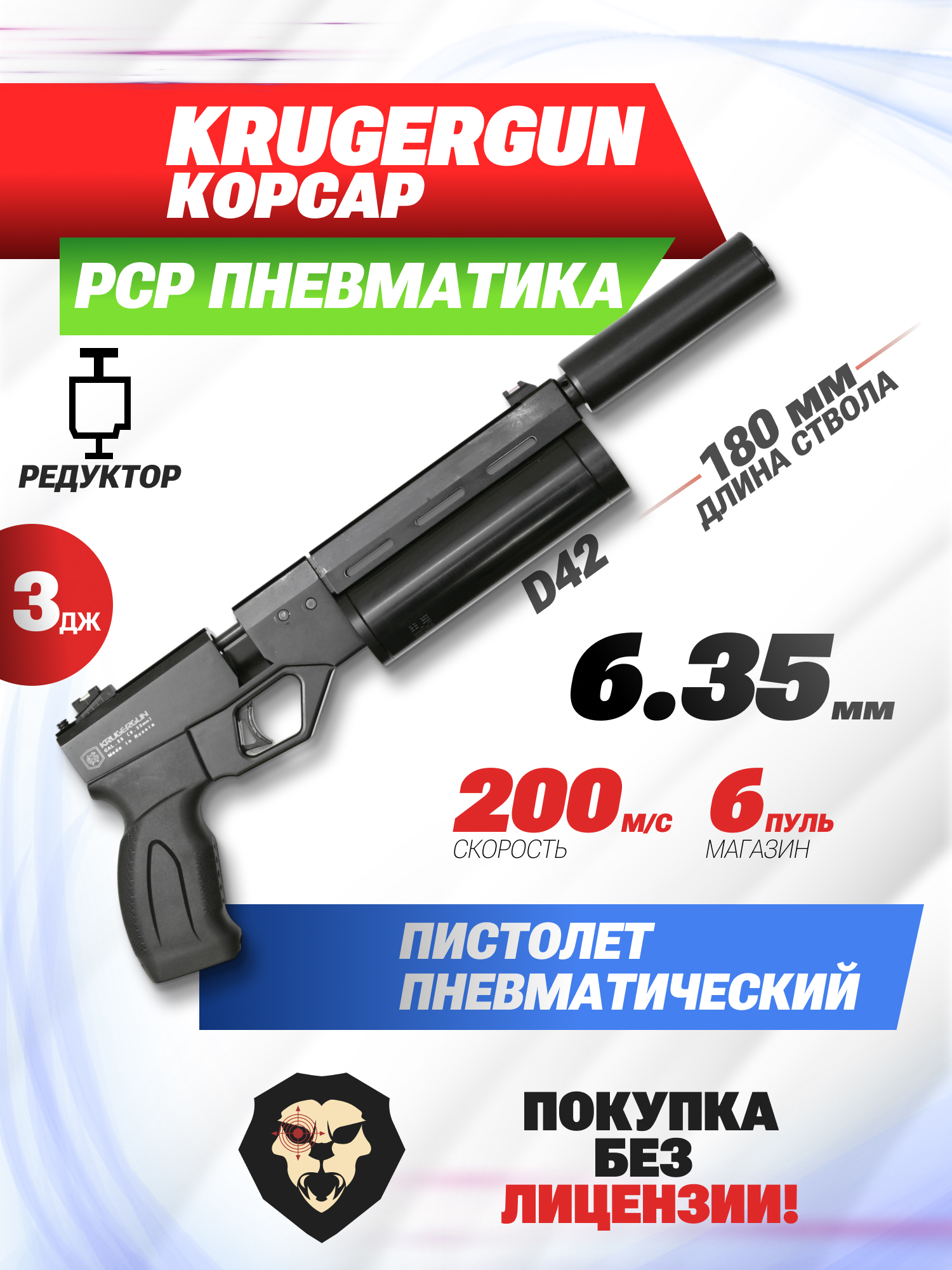Информация о товаре "Пневматический пистолет KrugerGun Корсар 6.35 мм (PCP, 180 мм, D42, пластик, без манометра, редуктор)" носит ознакомительный характер, и не является публичной офертой, определяемой положениями Статьи 437 Гражданского кодекса Российской Федерации, характеристики, внешний вид, цвет и комплектация могут быть изменены производителем без уведомления.