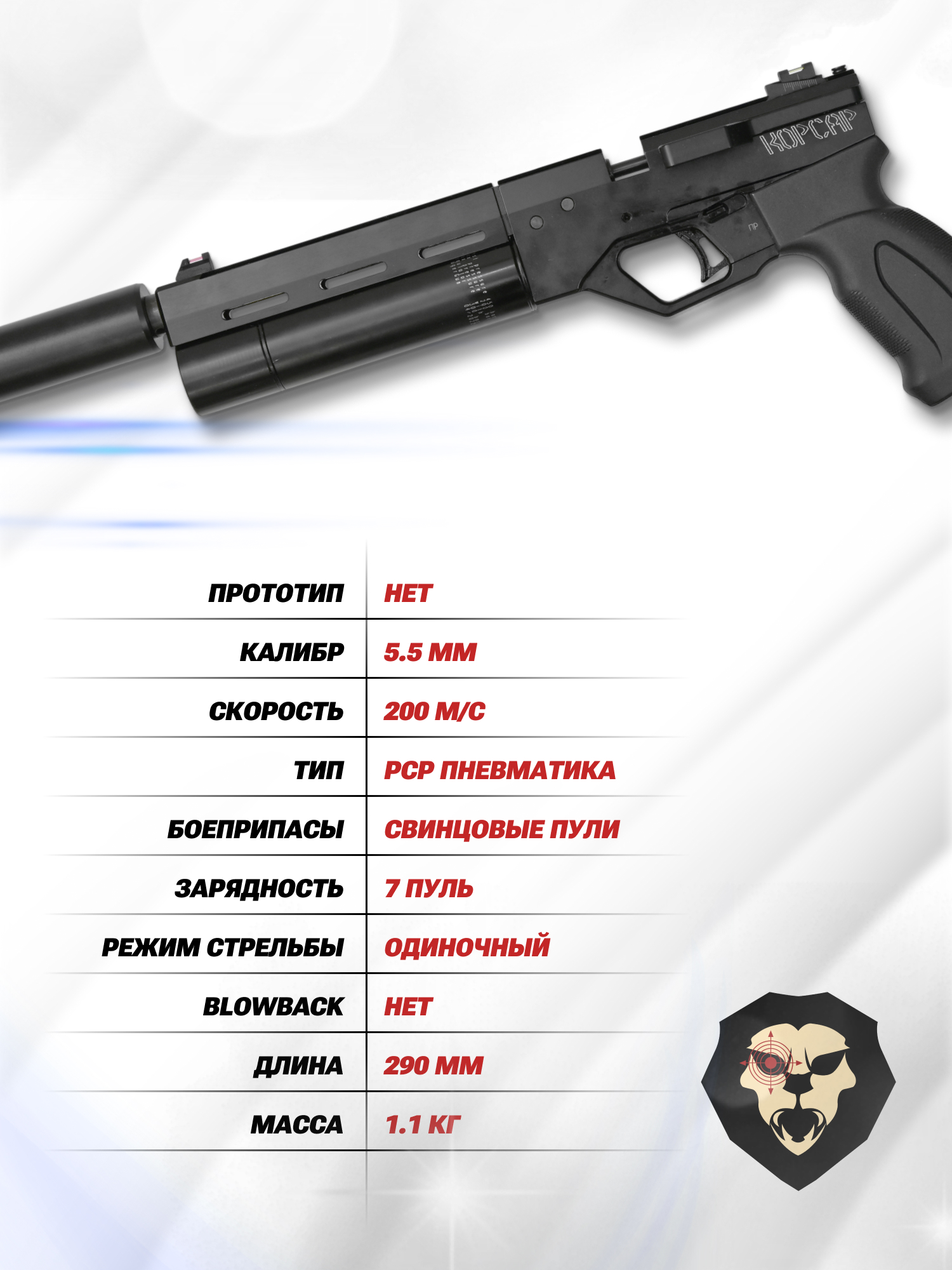 Российская компания KrugerGun занимает лидерские позиции среди производителей пневматического оружия. Krugergun Корсар d32 это новый пневматический пистолет в калибре 5.5 мм с уникальным внешним видом, который заслуживает внимания ценителей пневматики.
