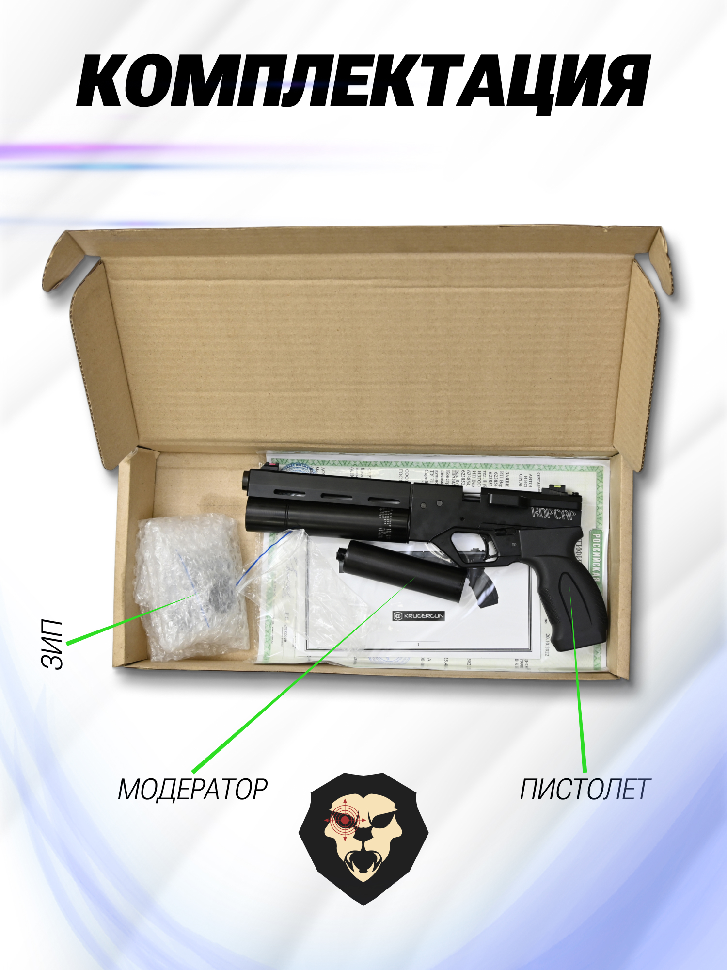 Информация о товаре "Пневматический пистолет Krugergun Корсар 5.5 мм (редуктор, D32, 180 мм, с манометром)" носит ознакомительный характер, и не является публичной офертой, определяемой положениями Статьи 437 Гражданского кодекса Российской Федерации, характеристики, внешний вид, цвет и комплектация могут быть изменены производителем без уведомления.