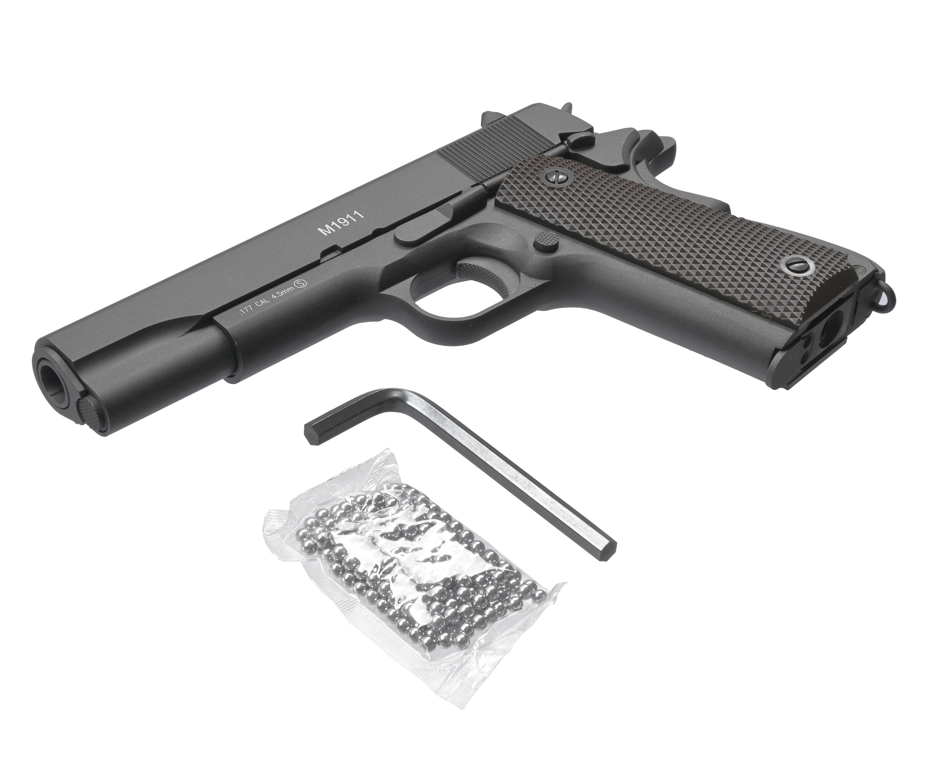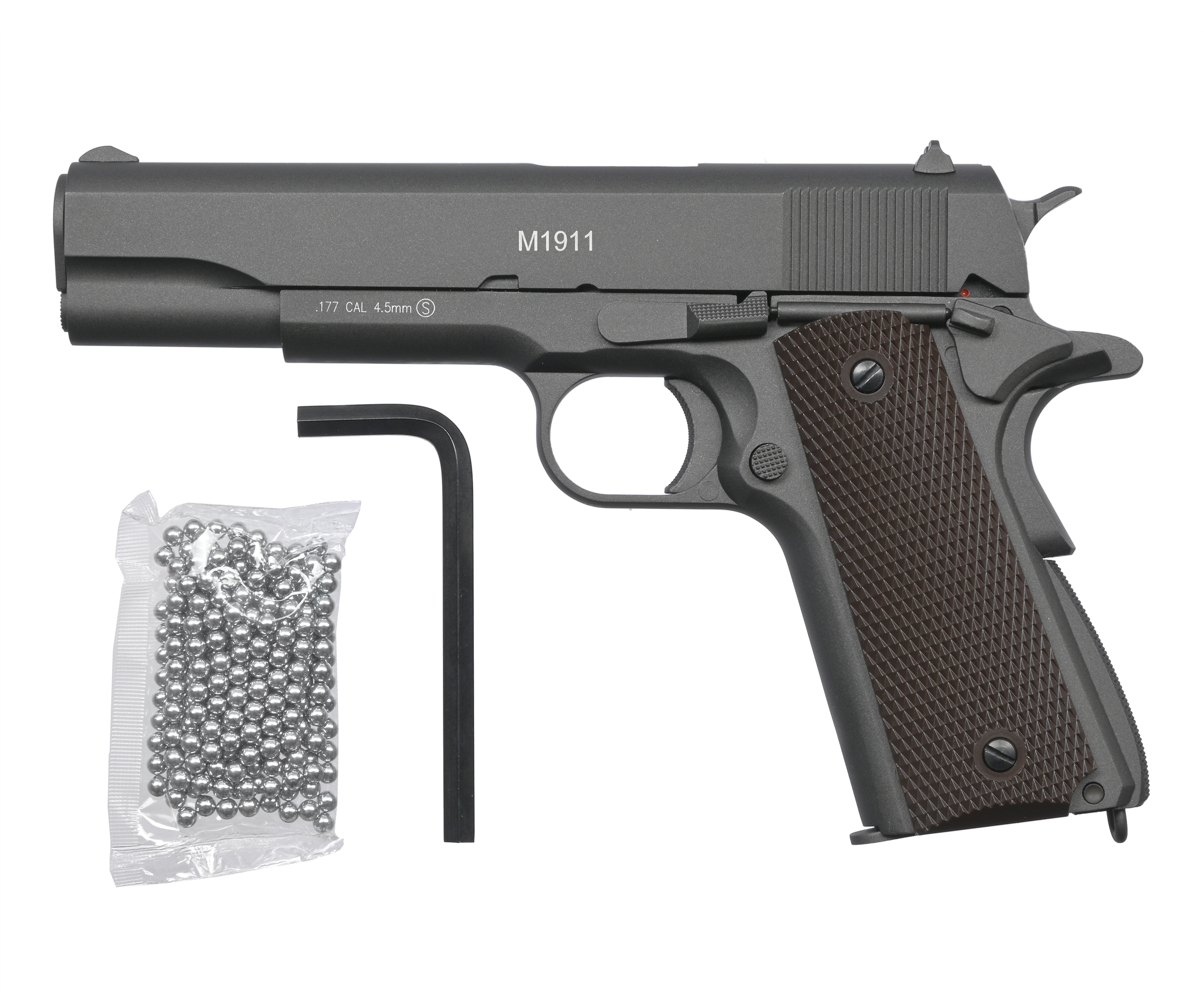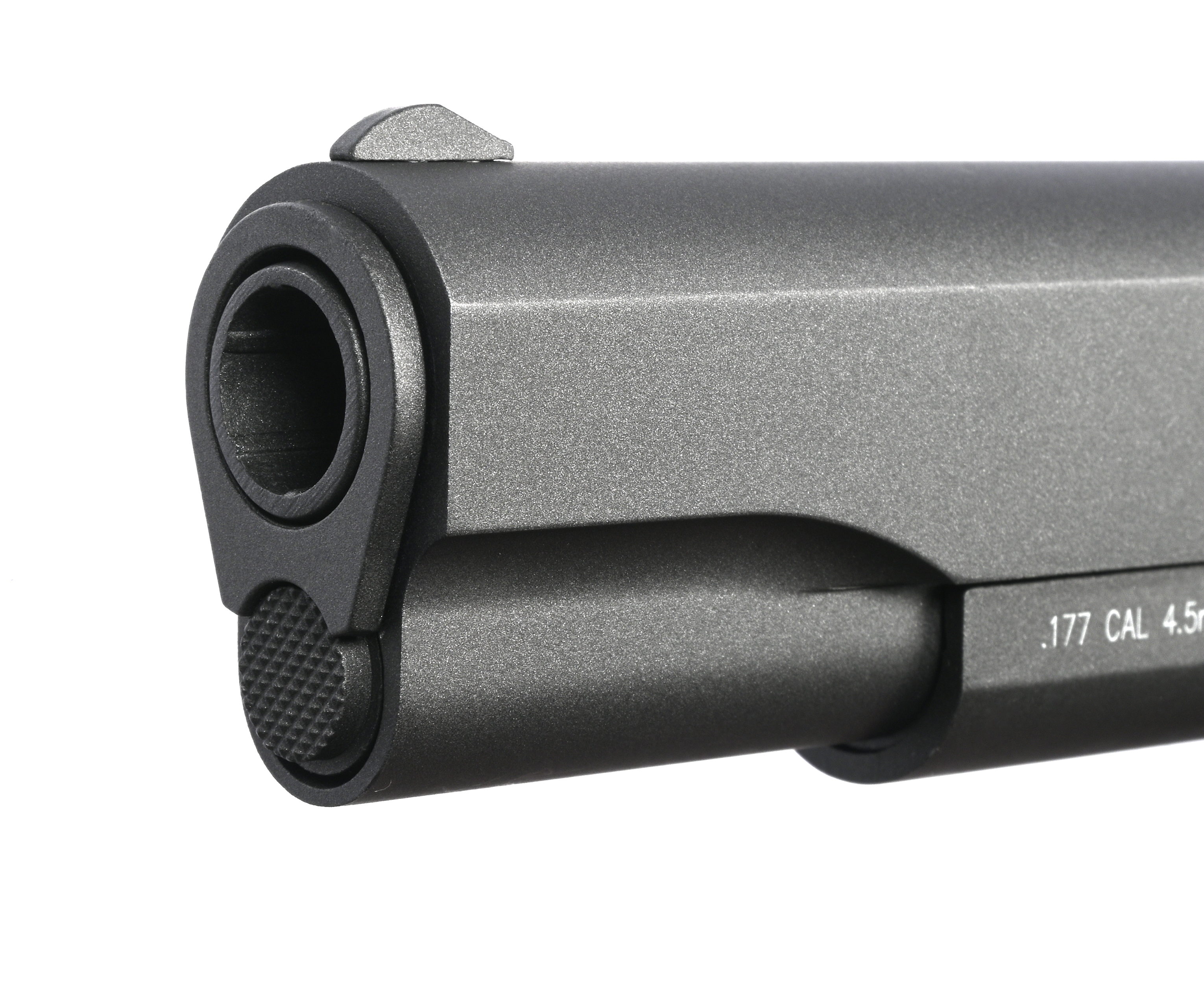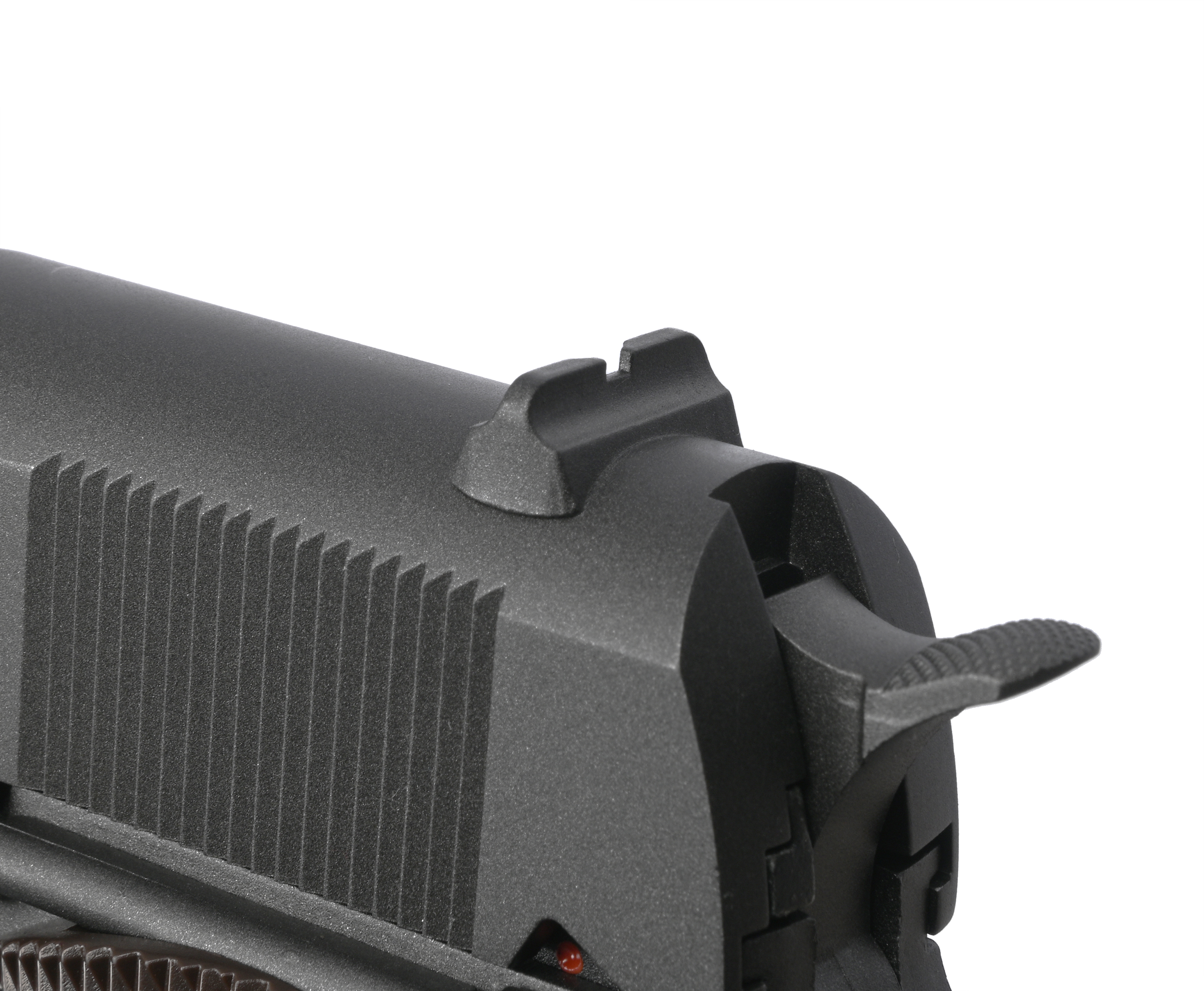 Фирма делает ставку на контроль качества сборки и аутентичность выпускаемой пневматики, которая максимально приближена к своим боевым прототипам. Рассматриваемый экземпляр не стал исключением и воссоздает внешний вид знаменитого американского пистолета Colt M1911. Данное оружие не нуждается в представлении, так как является самым массовым изделием в своей категории, используемым в различных странах по всему миру с начала XX века и по сей день.