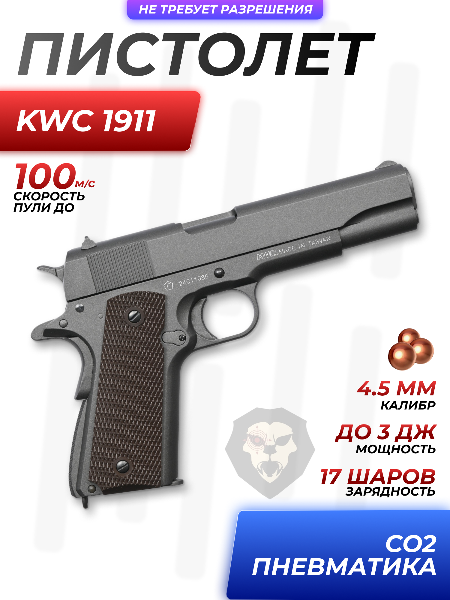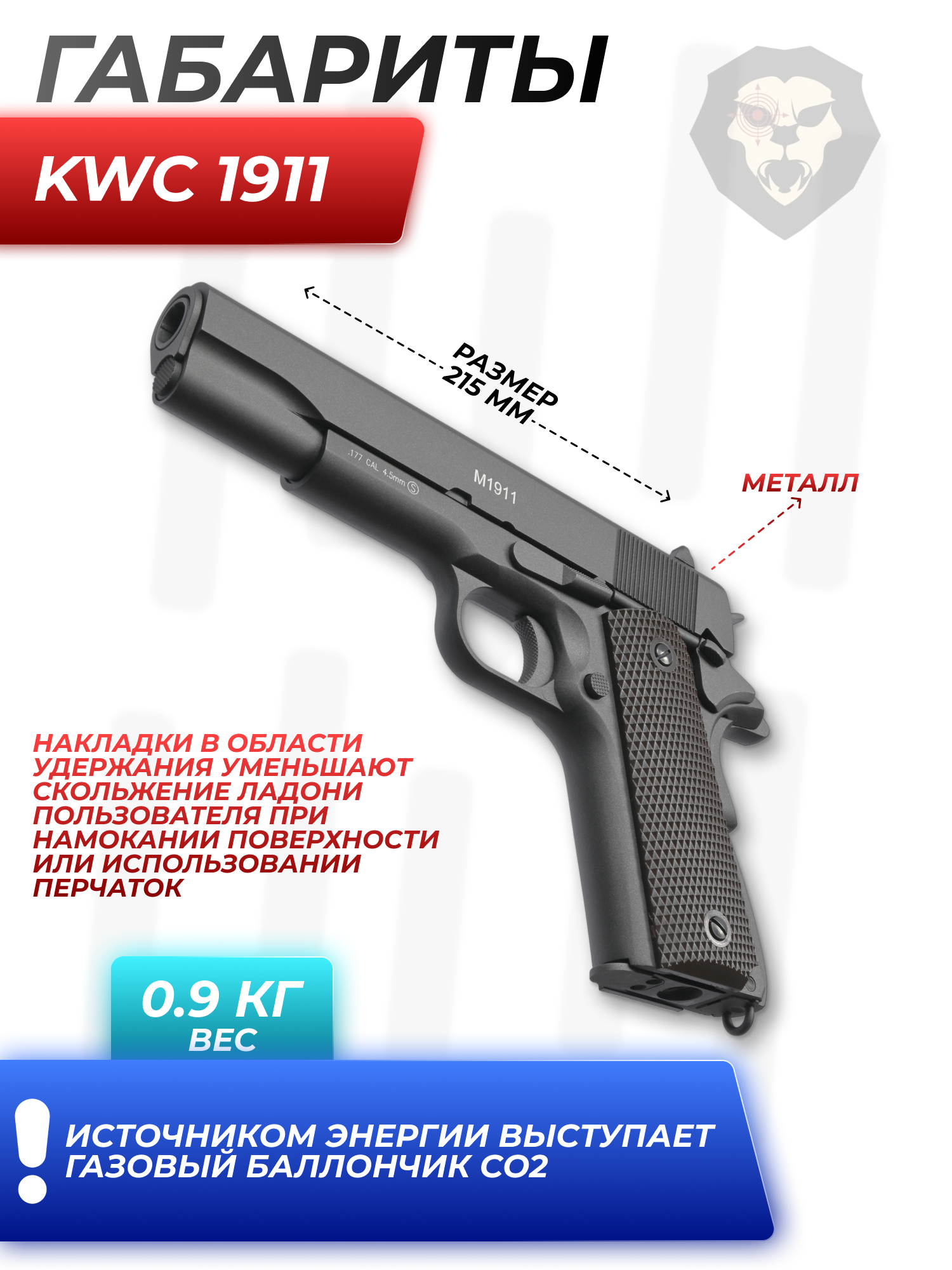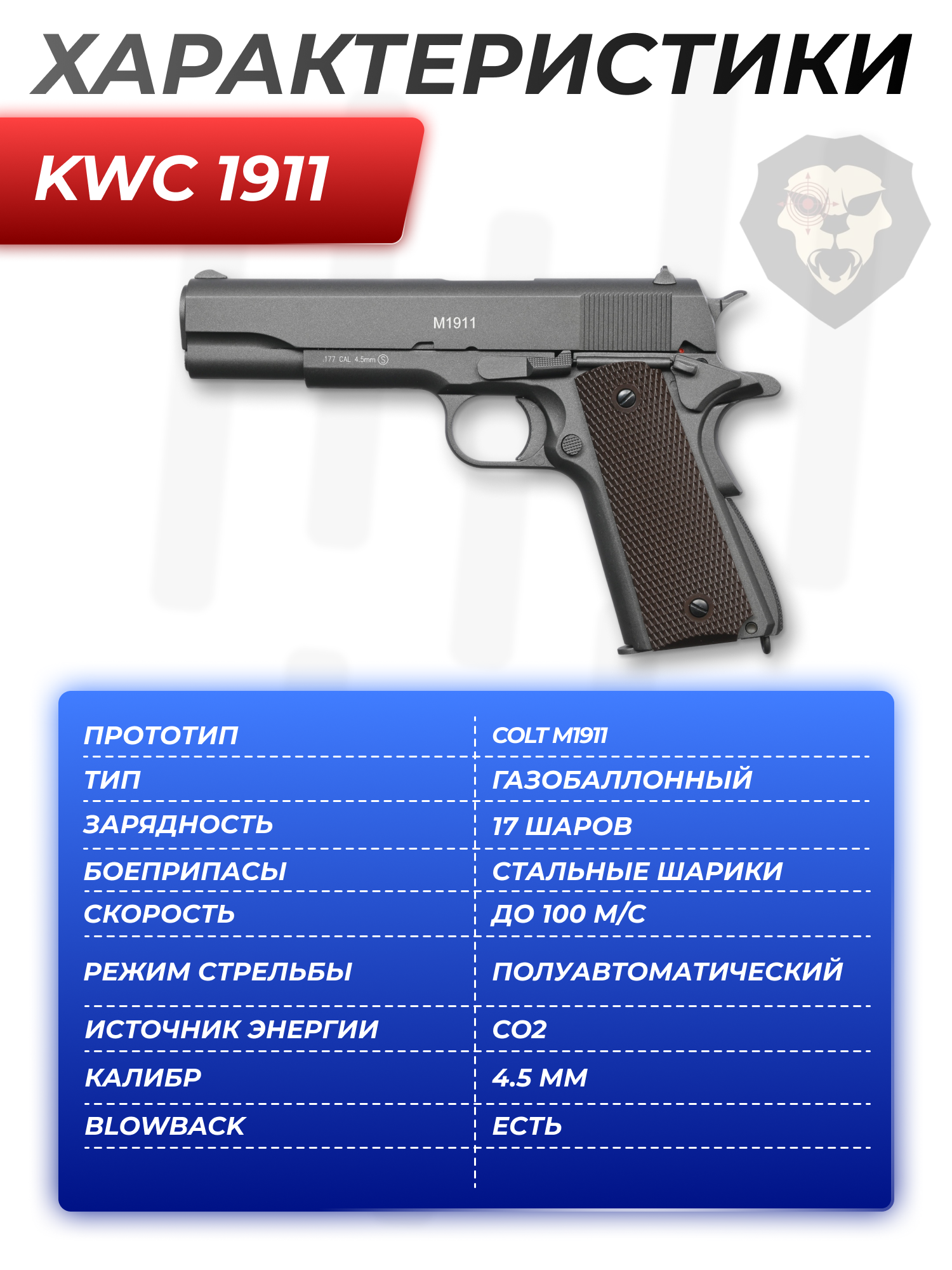 Пневматический пистолет KWC 1911 4.5 мм (Кольт, CO2, Blowback) купить в интернет-магазине Popadiv10.