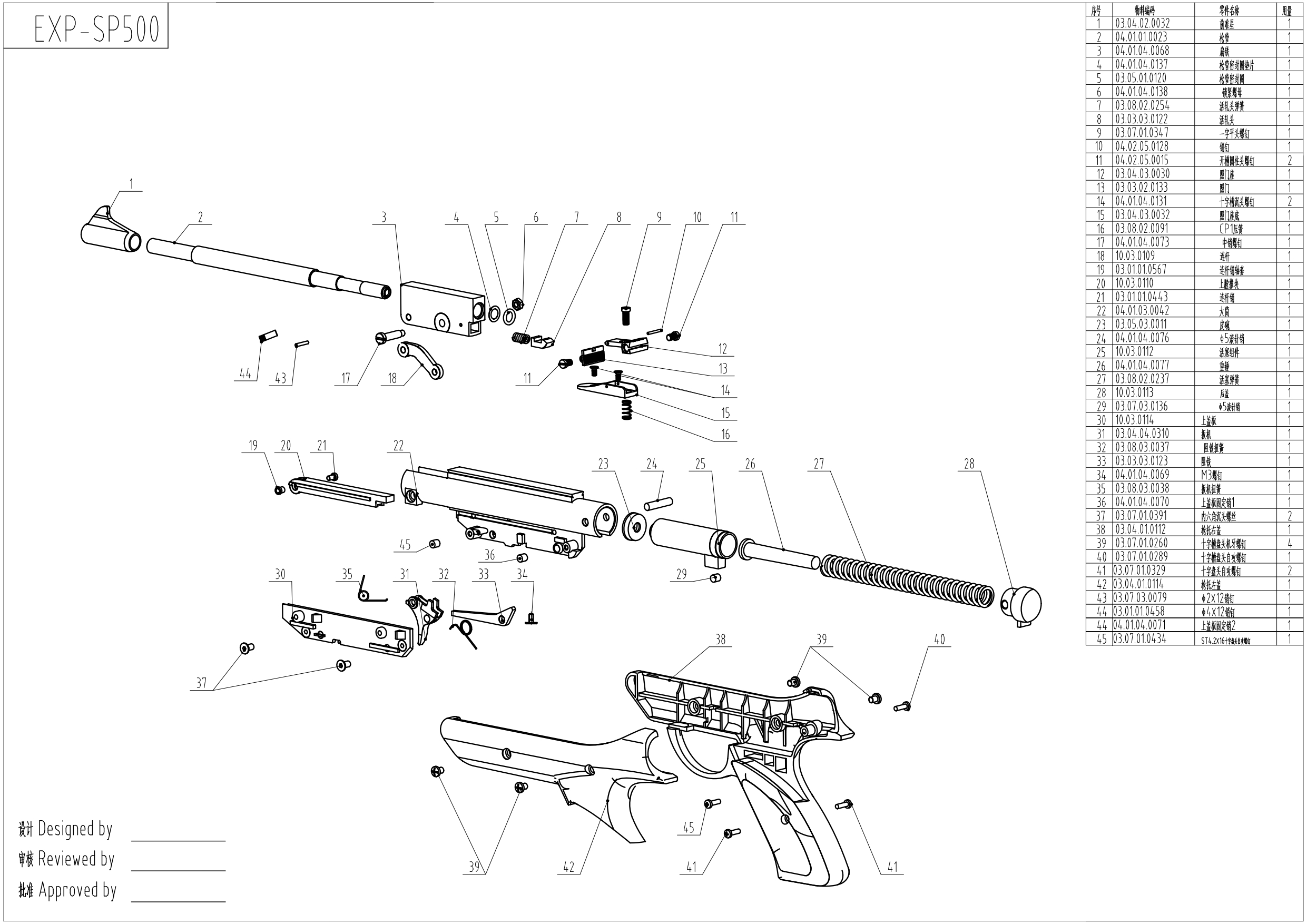 Модель SP500 комфортно лежит в руке и имеет легкий вес, что немаловажно при выборе пистолета. Благодаря использованию фурнитуры из современного пластика удалось снизить массу до 914 граммов. Полимер при этом уверенно сопротивляется механическим повреждениям, следовательно, конструкция не потеряла в прочности.
