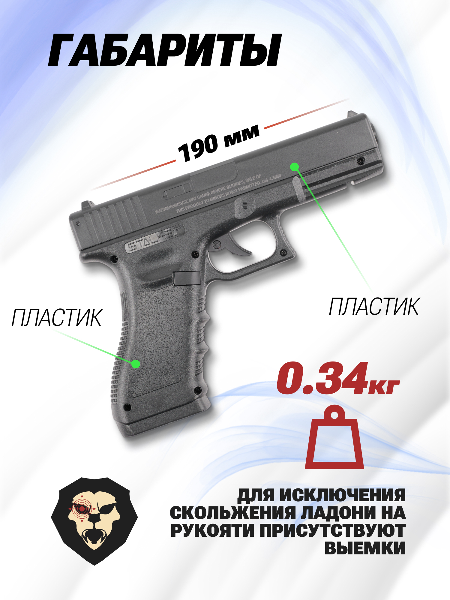 Информация о товаре "Пневматический пистолет Stalker S17 4.5 мм (Glock 17)" носит ознакомительный характер, и не является публичной офертой, определяемой положениями Статьи 437 Гражданского кодекса Российской Федерации, характеристики, внешний вид, цвет и комплектация могут быть изменены производителем без уведомления.