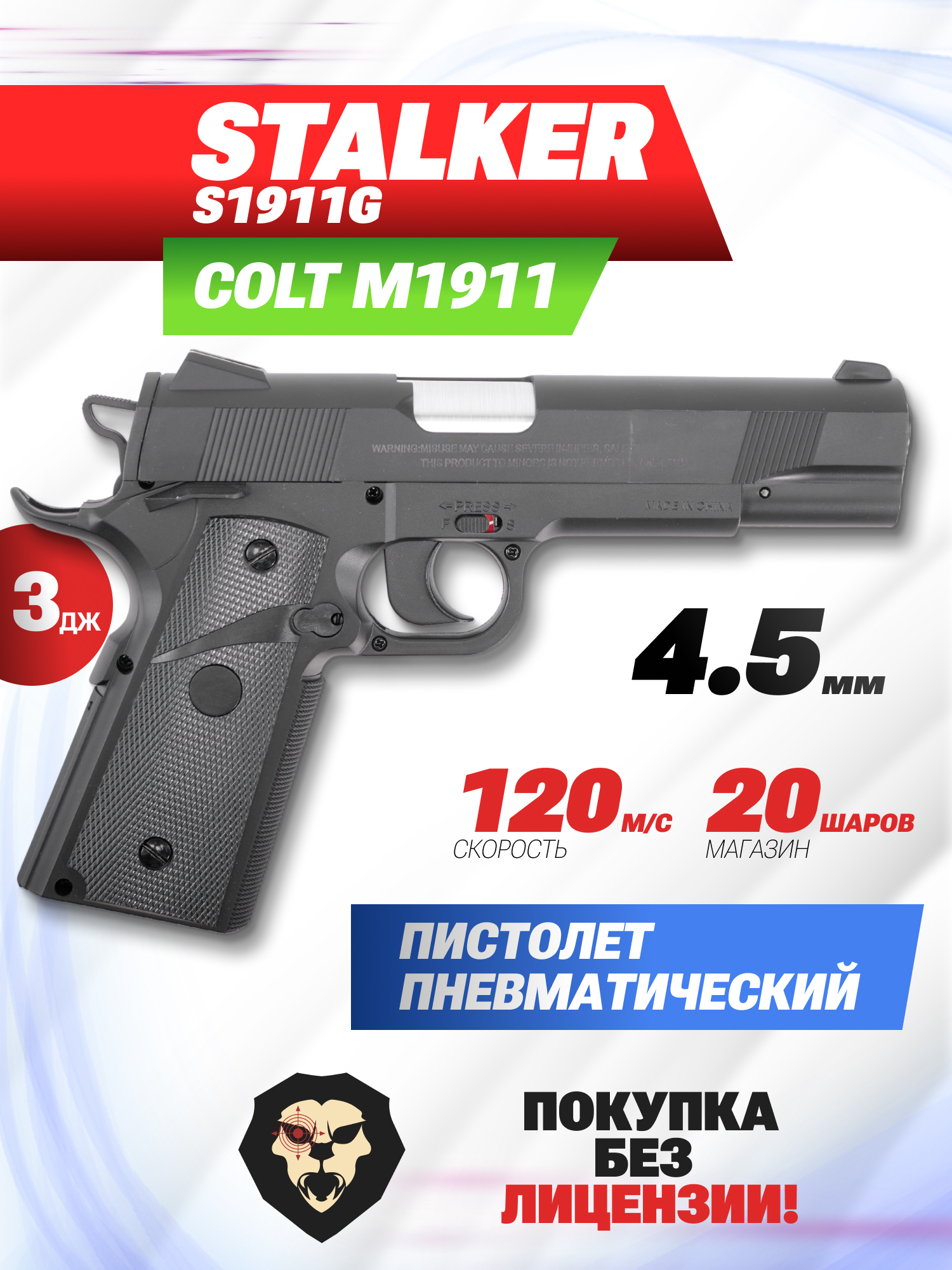 Артикул производителя ST-12051G Пневматический пистолет Stalker S1911G 4.5 мм (Colt 1911) по низкой цене 4670 руб. Модель со штрихкодом производителя Вы можете оплатить наложенным платежем с доставкой или в отделении транспортной компании (ПЭК, СДЭК, Boxberry). Ваш заказ со штрихкодом 2000000011714 забрать на почте с оплатой при получении в любой части Российской Федерации.