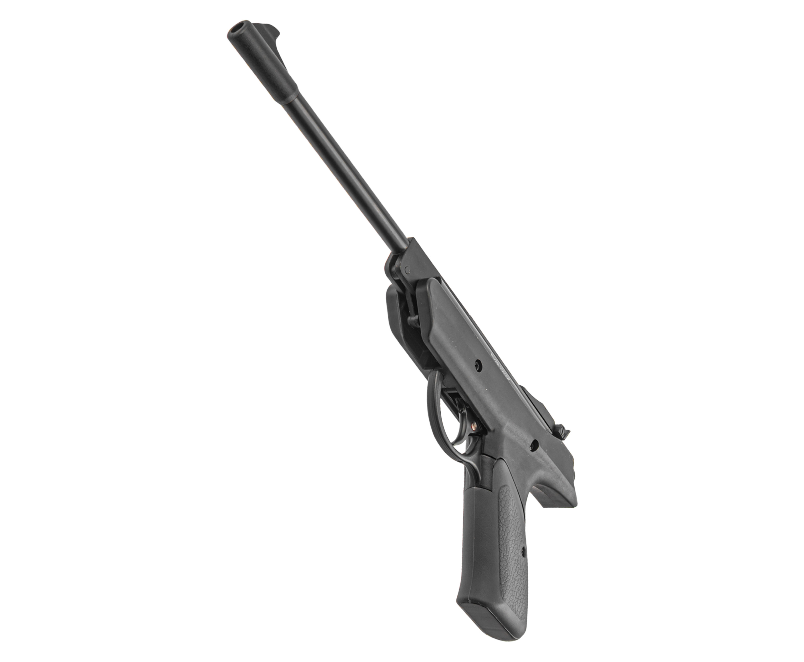 Заряжается пистолет путем переламывания бланка в его основании. Для этого достаточно обхватить свободной рукой ствол и приложить мускульную силу, надавив вниз. В результате раскрывается казенная часть, в которую стрелок самостоятельно закладывает метаемый боеприпас - одновременно с этим в процессе взводится боевая пружина, ответственная за компрессию воздуха.