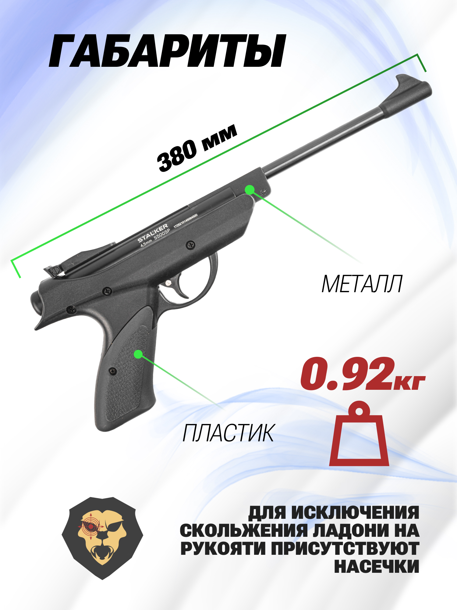 Информация о товаре "Пневматический пистолет Stalker S500SP 4.5 мм (3 Дж)" носит ознакомительный характер, и не является публичной офертой, определяемой положениями Статьи 437 Гражданского кодекса Российской Федерации, характеристики, внешний вид, цвет и комплектация могут быть изменены производителем без уведомления.