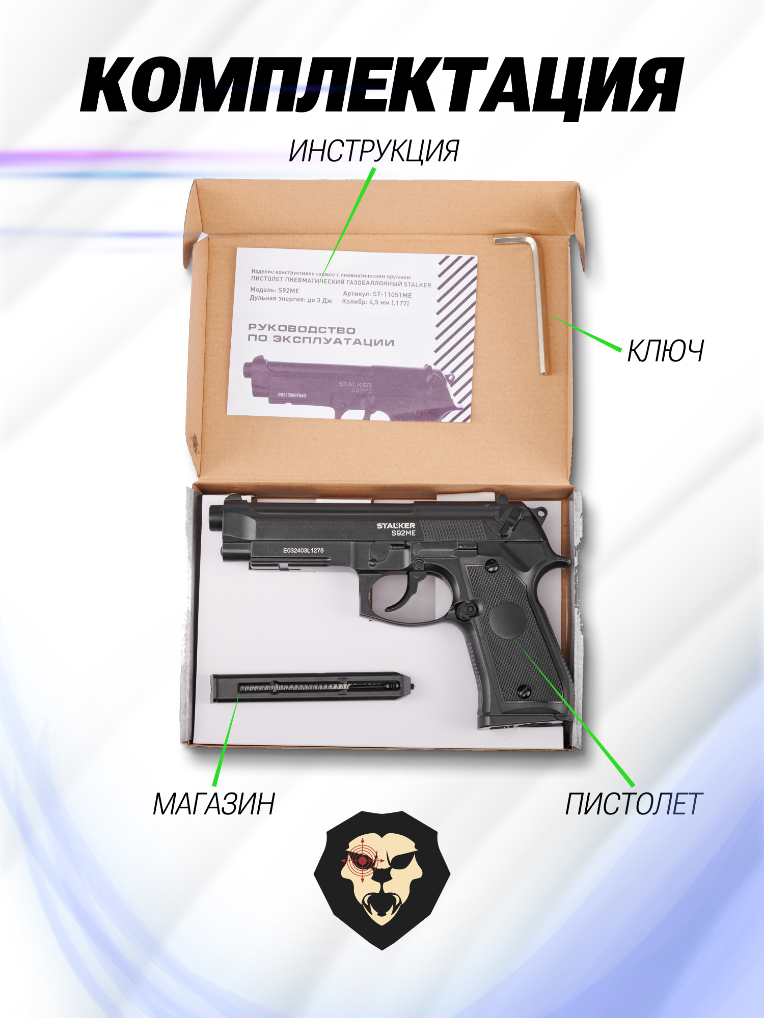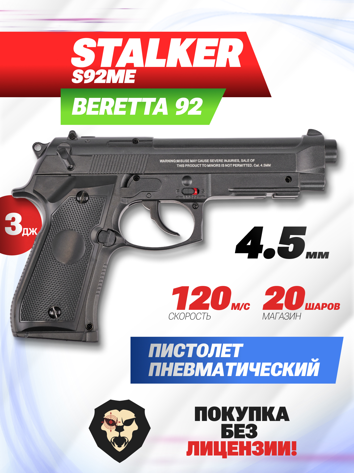 Информация о товаре "Пневматический пистолет Stalker S92ME 4.5 мм (Beretta 92)" носит ознакомительный характер, и не является публичной офертой, определяемой положениями Статьи 437 Гражданского кодекса Российской Федерации, характеристики, внешний вид, цвет и комплектация могут быть изменены производителем без уведомления.