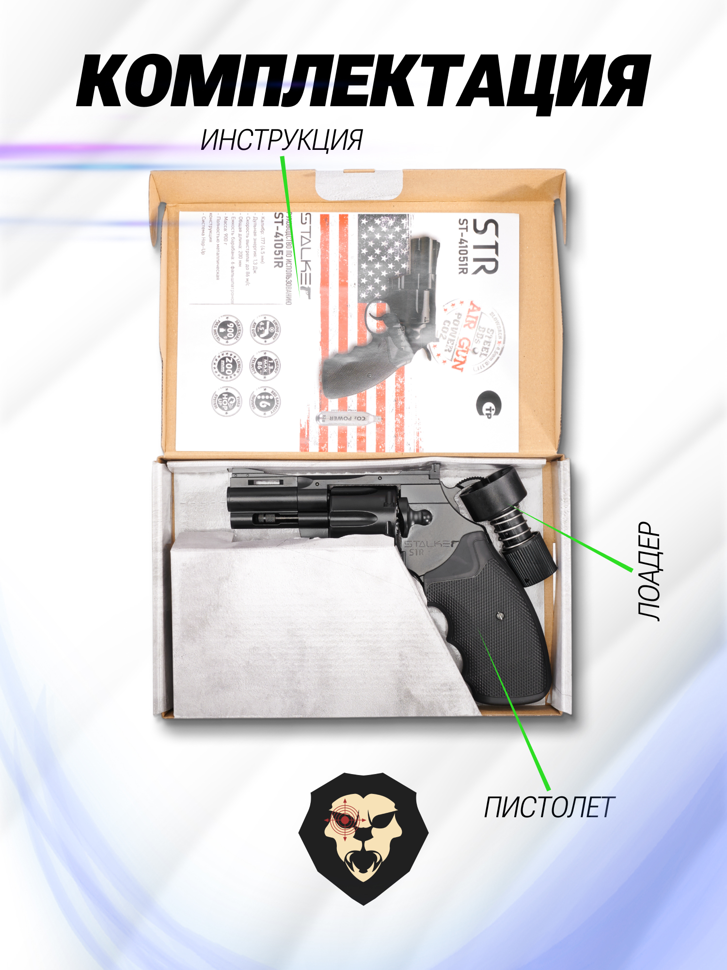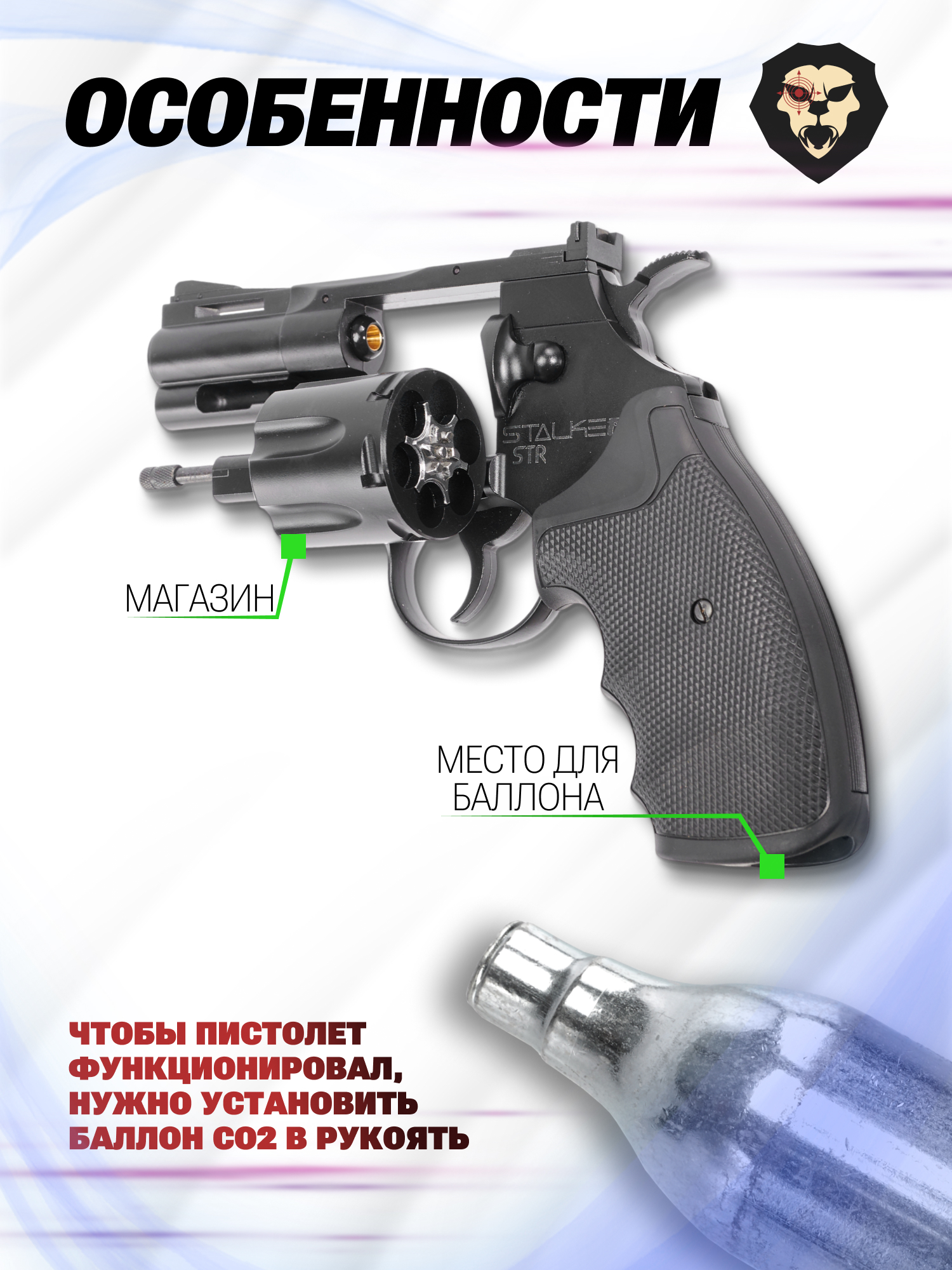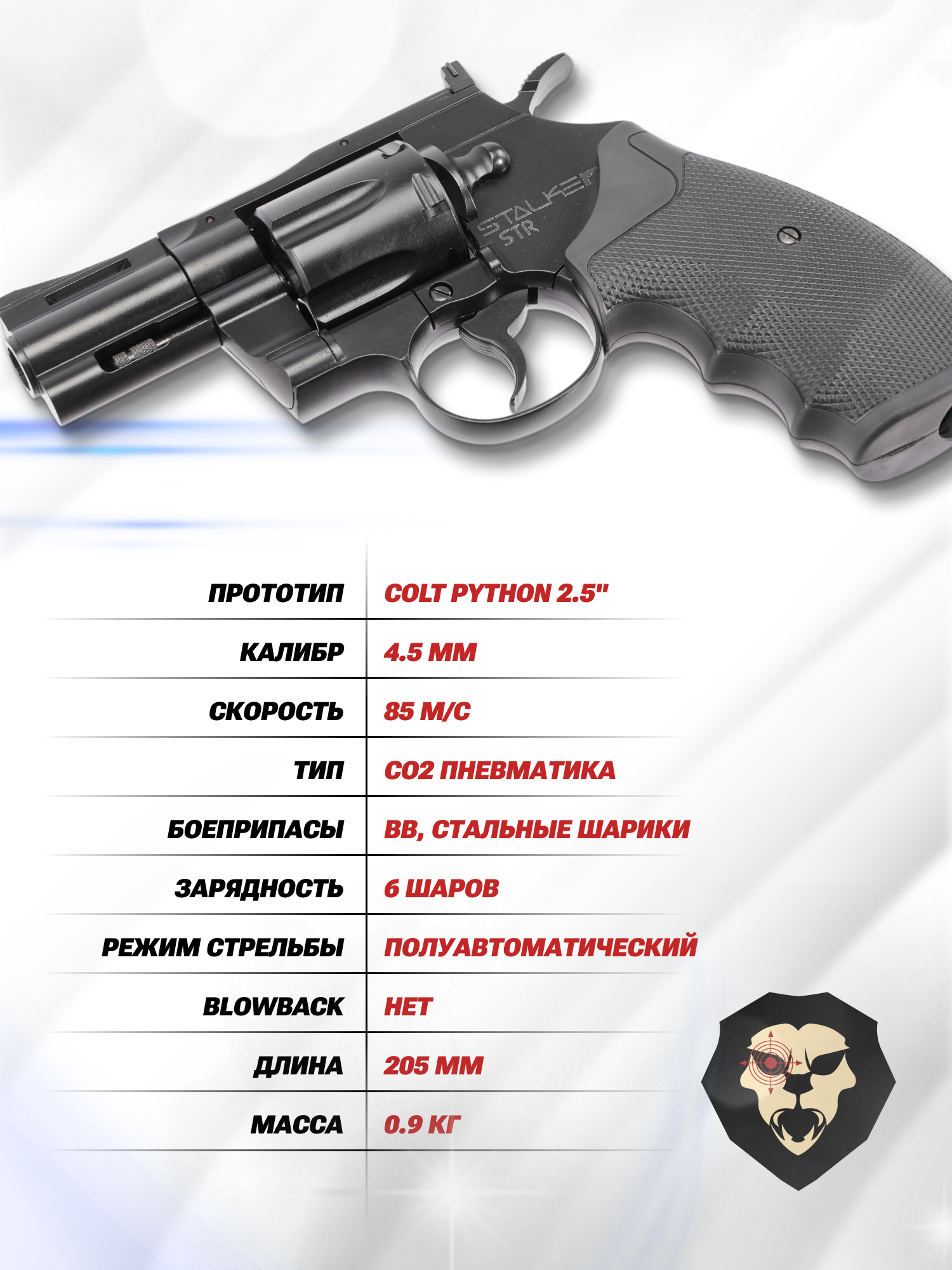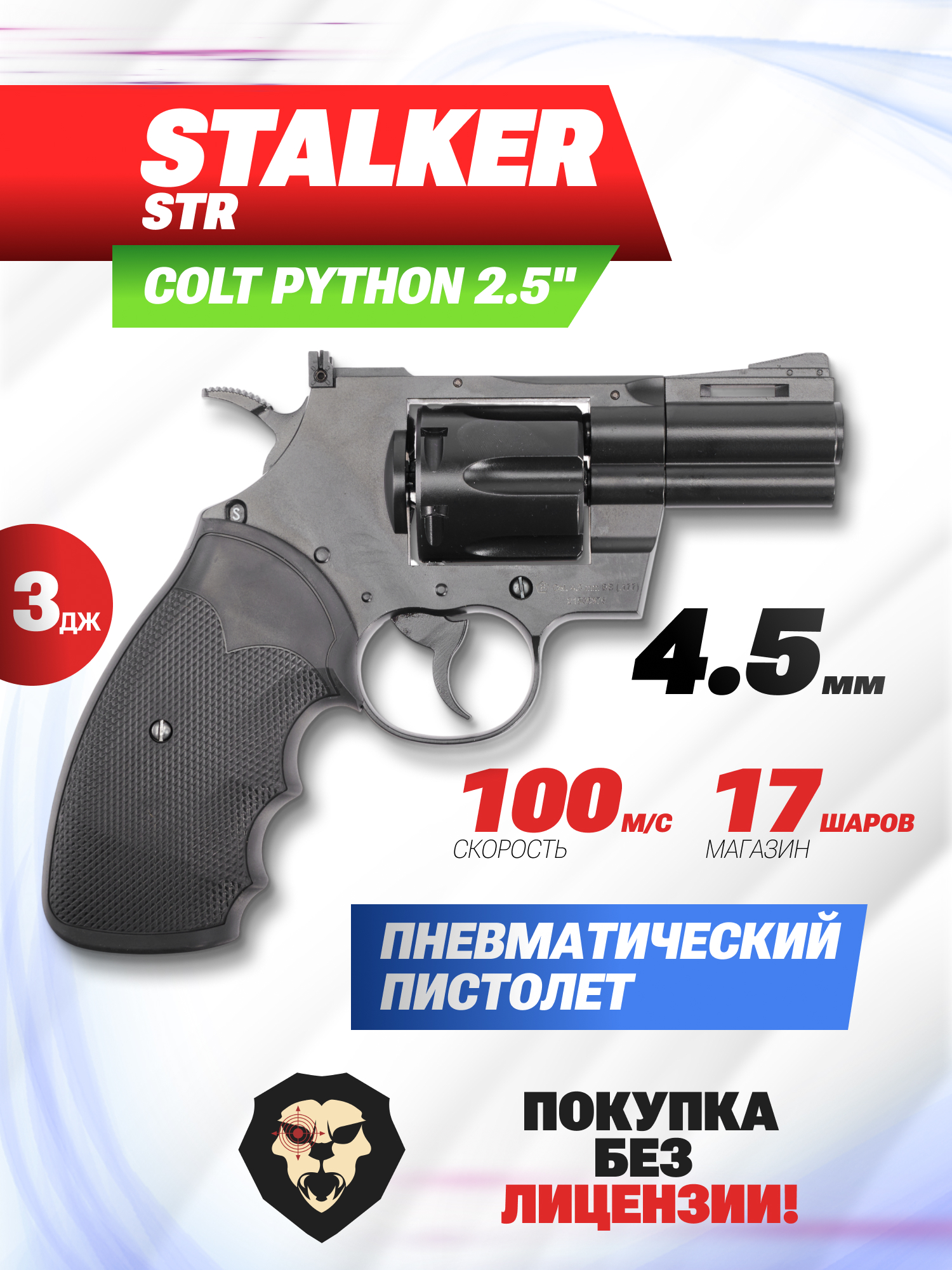 Информация о товаре "Пневматический пистолет Stalker STR 4.5 мм (револьвер Colt Python 2.5)" носит ознакомительный характер, и не является публичной офертой, определяемой положениями Статьи 437 Гражданского кодекса Российской Федерации, характеристики, внешний вид, цвет и комплектация могут быть изменены производителем без уведомления.