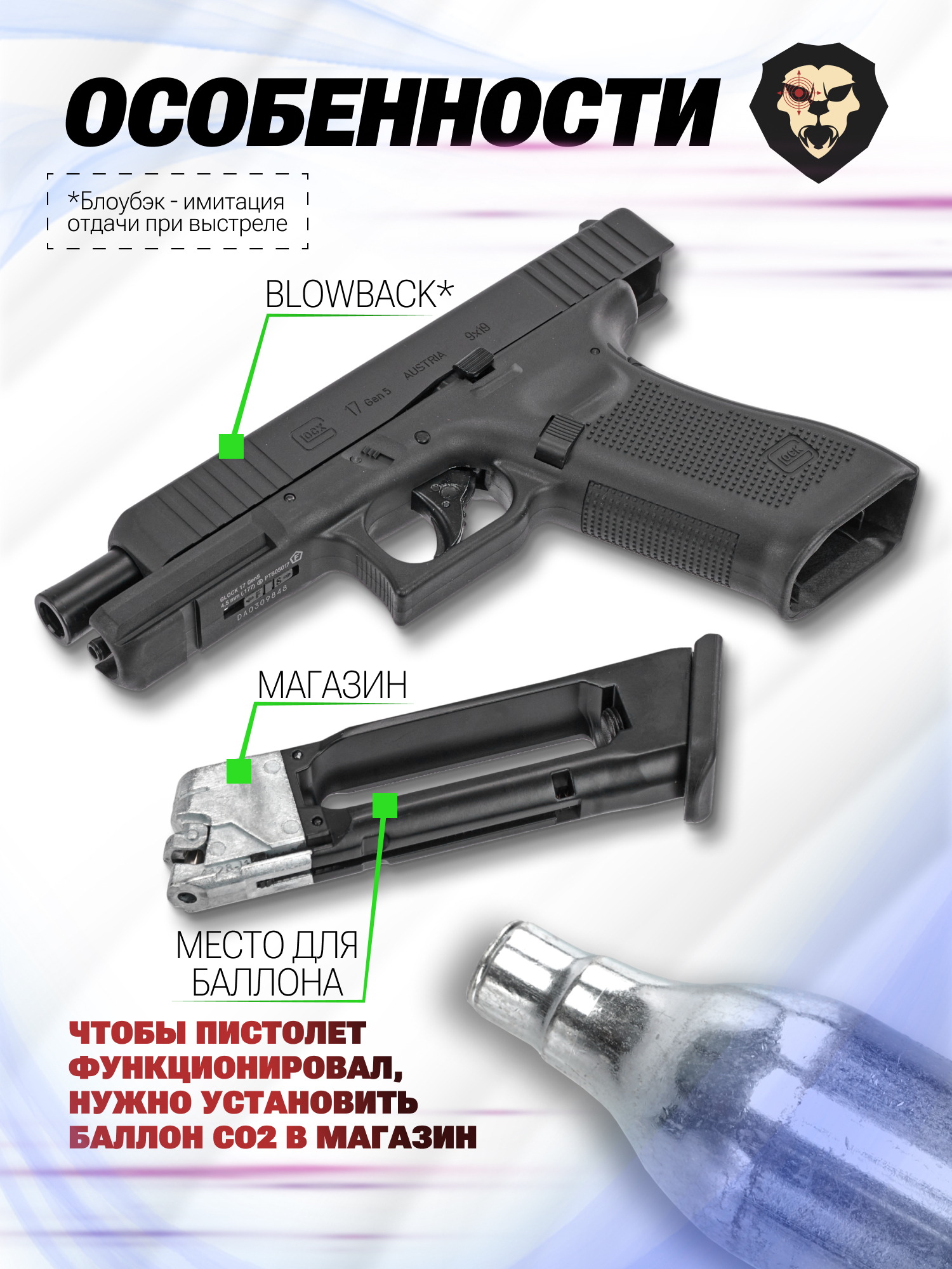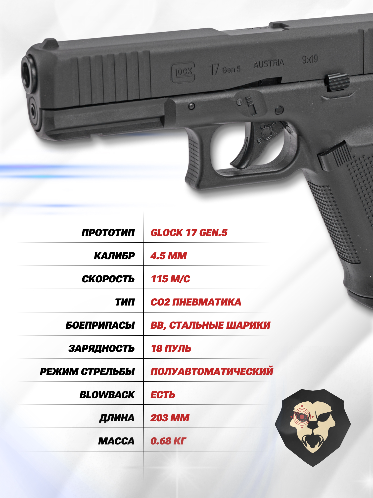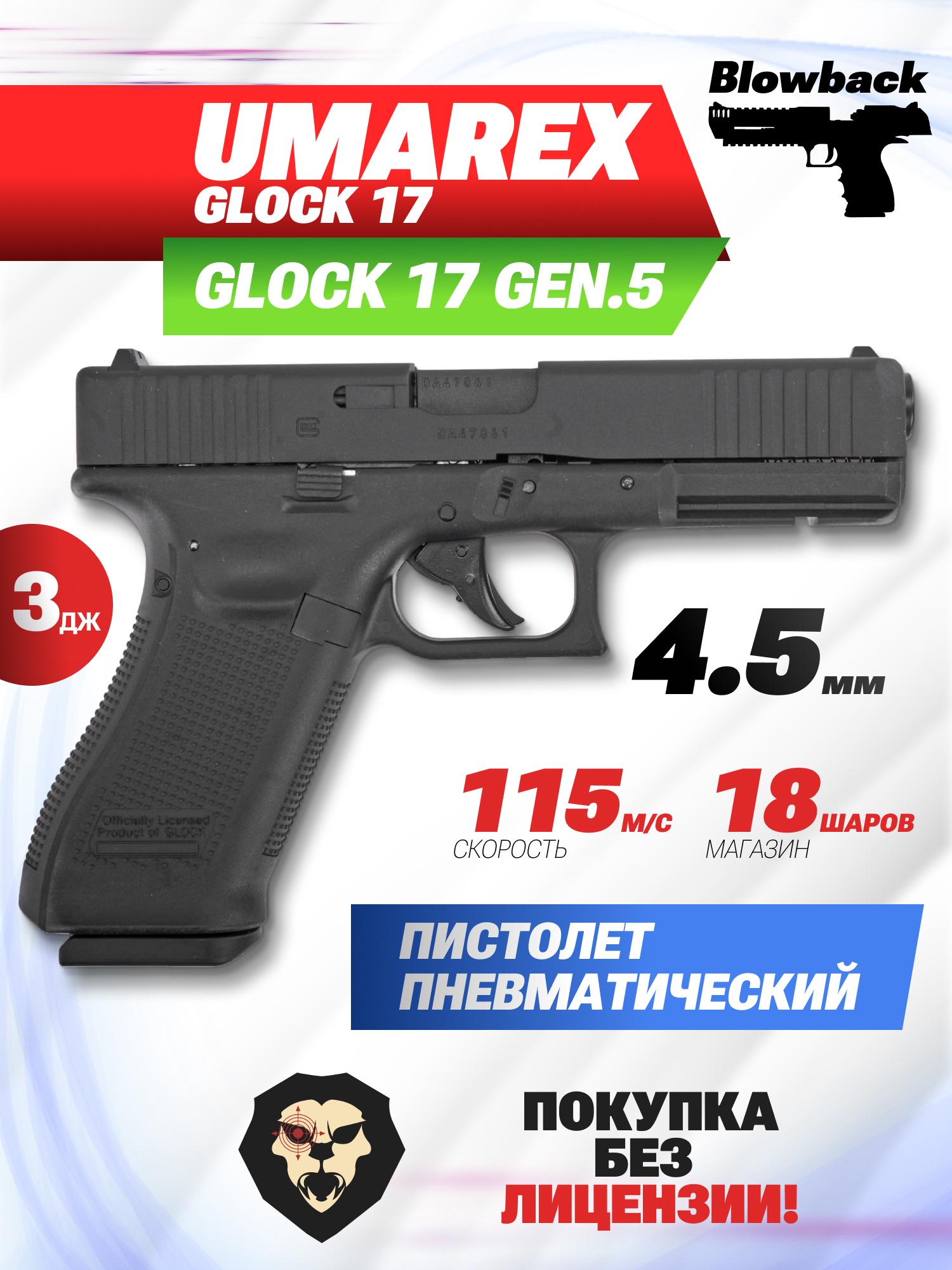 Пневматический пистолет Umarex Glock 17 4.5 мм (Gen. 5, Blowback) купить в интернет-магазине Popadiv10.