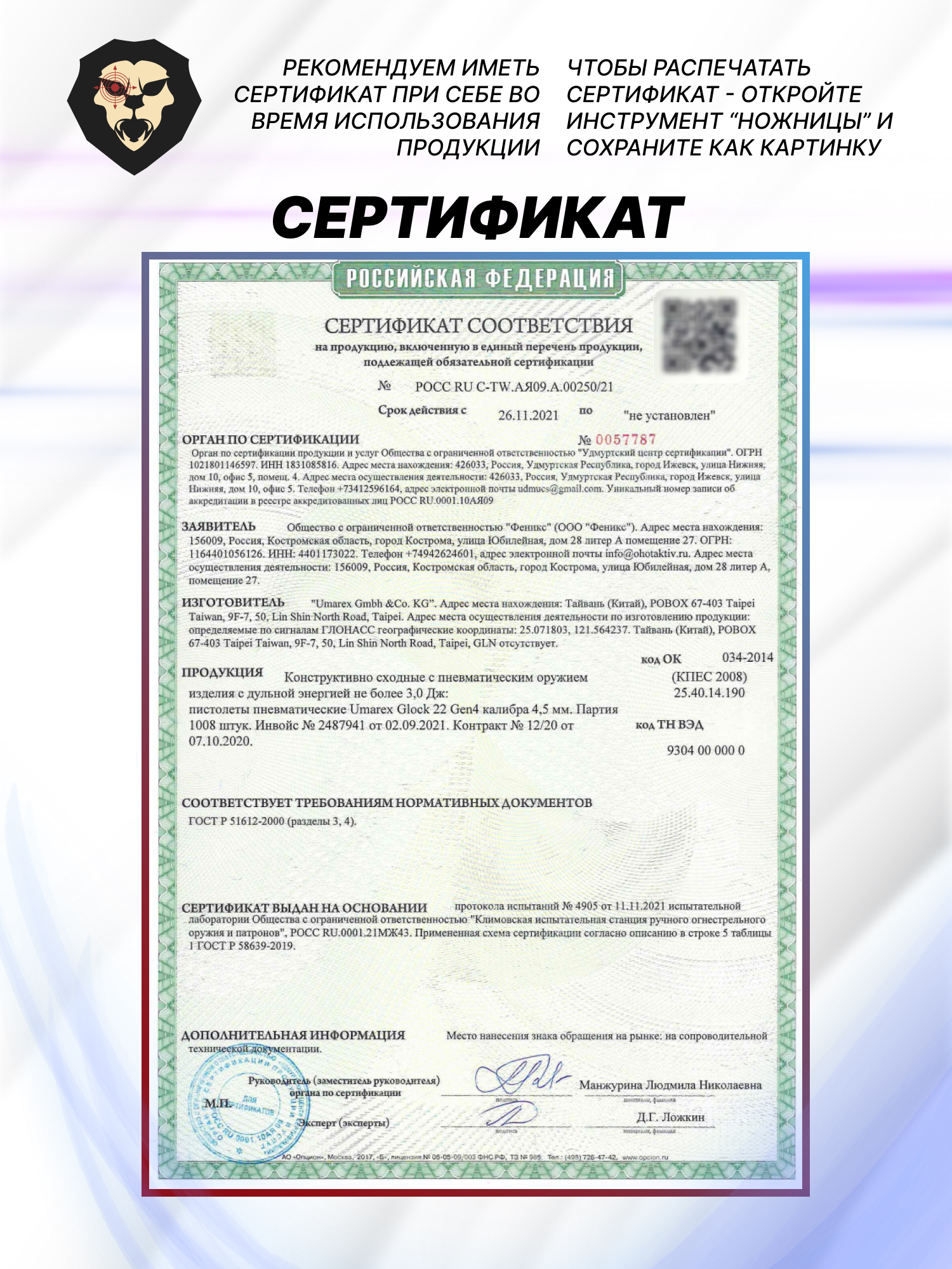 | Комплектация | Пистолет, упаковка, краткая документация, копия сертификата (по запросу покупателя) |