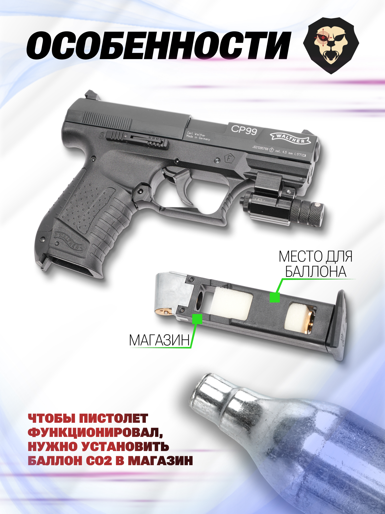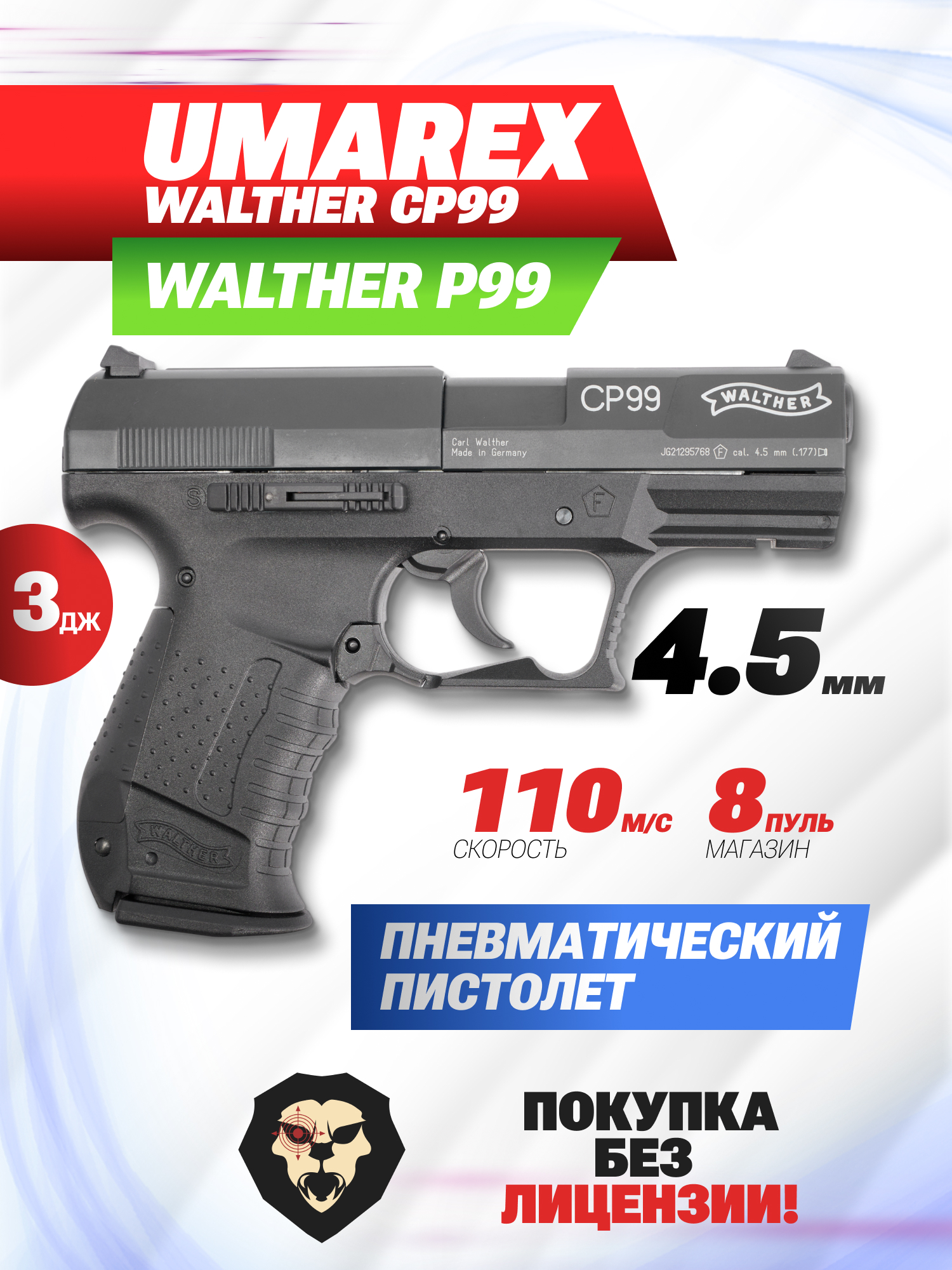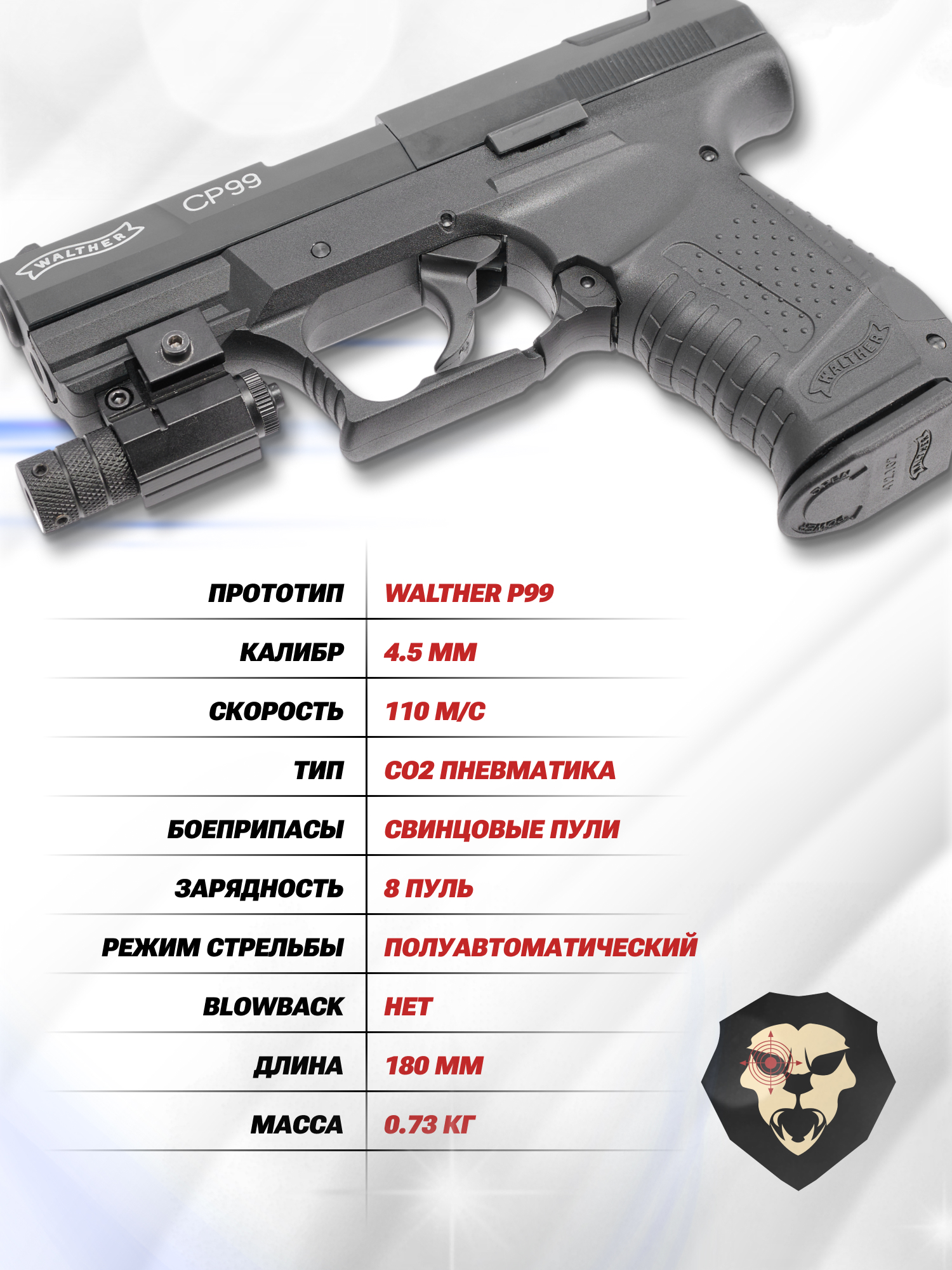 Пневматический пистолет Umarex Walther CP99 4.5 мм (пулевой, черный) купить в интернет-магазине Popadiv10.
