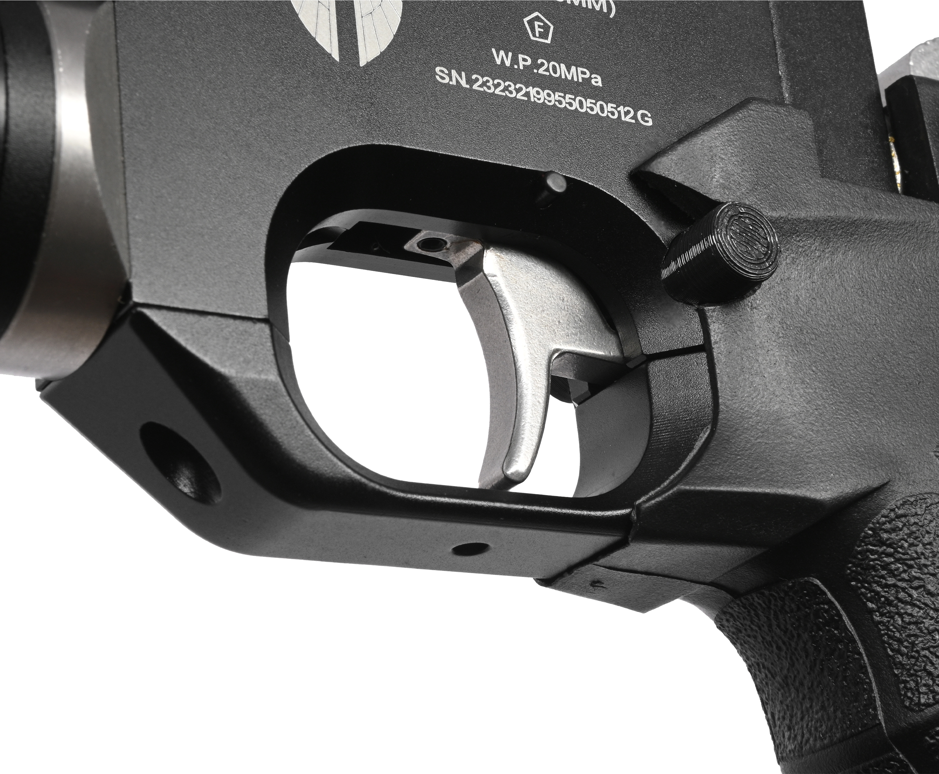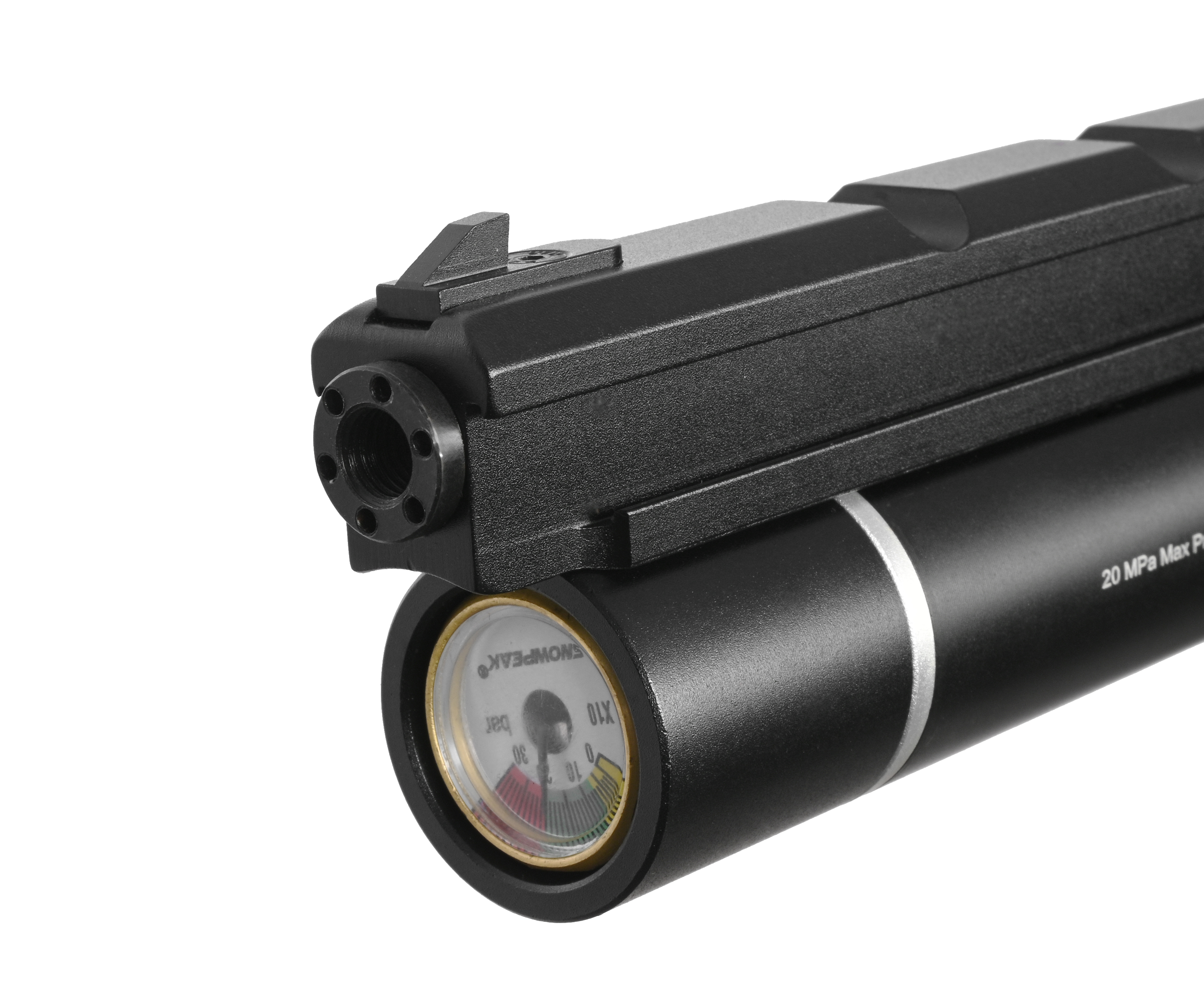 При этом не стоит превышать рекомендуемый максимальный показатель заполнения 200 Бар, чтобы продлить срок службы уплотнителей и избежать поломок. Пистолет отличается предсказуемой стрельбой - это достигается благодаря наличию редуктора. Точной настройкой внутреннего механизма стрелок может без труда выставить требуемое давление воздуха, пропускаемого через клапан внутрь ствола.