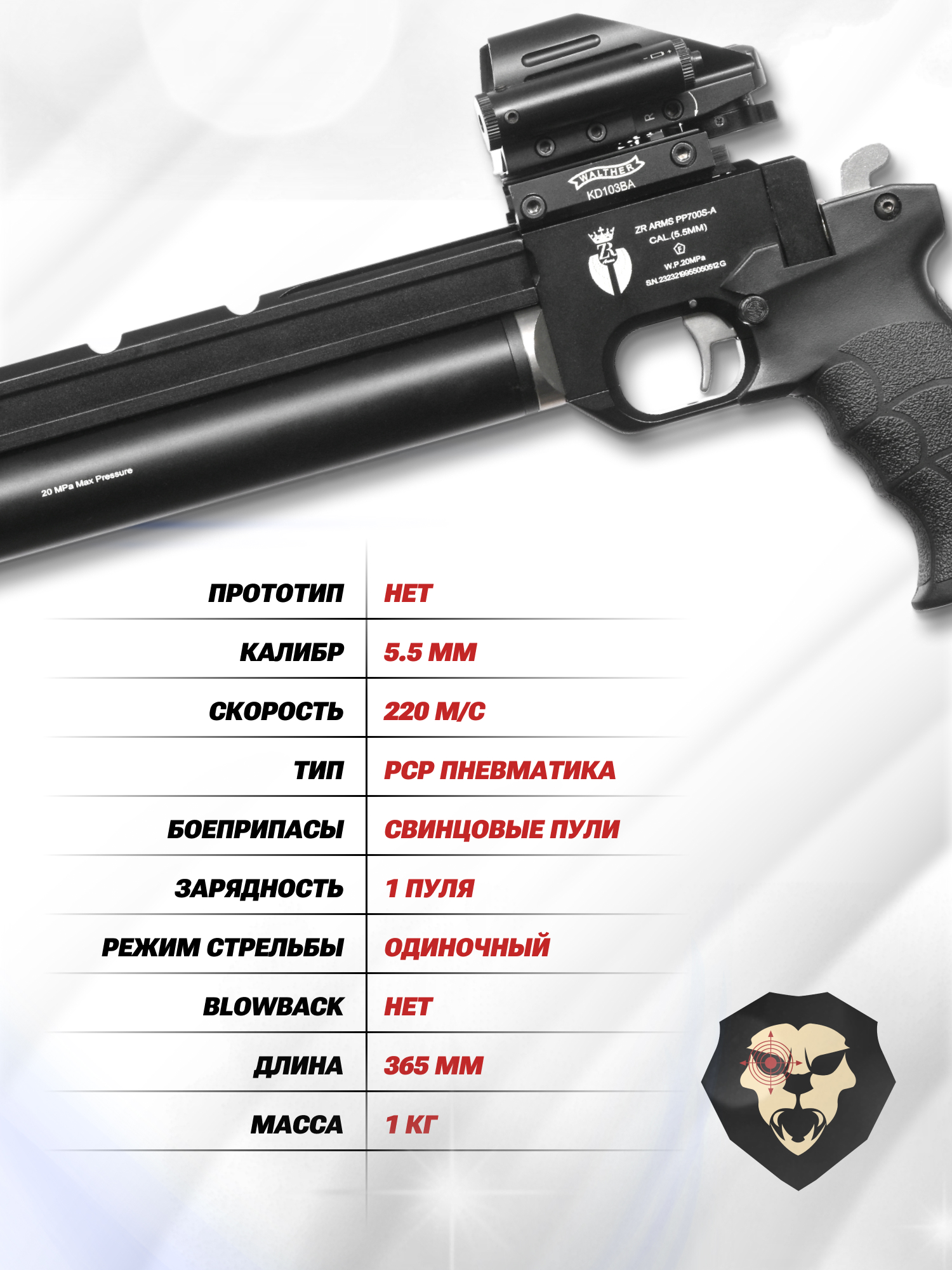 Пневматический пистолет ZR Arms PP700S-A 5.5 мм (PCP) купить в интернет-магазине Popadiv10.