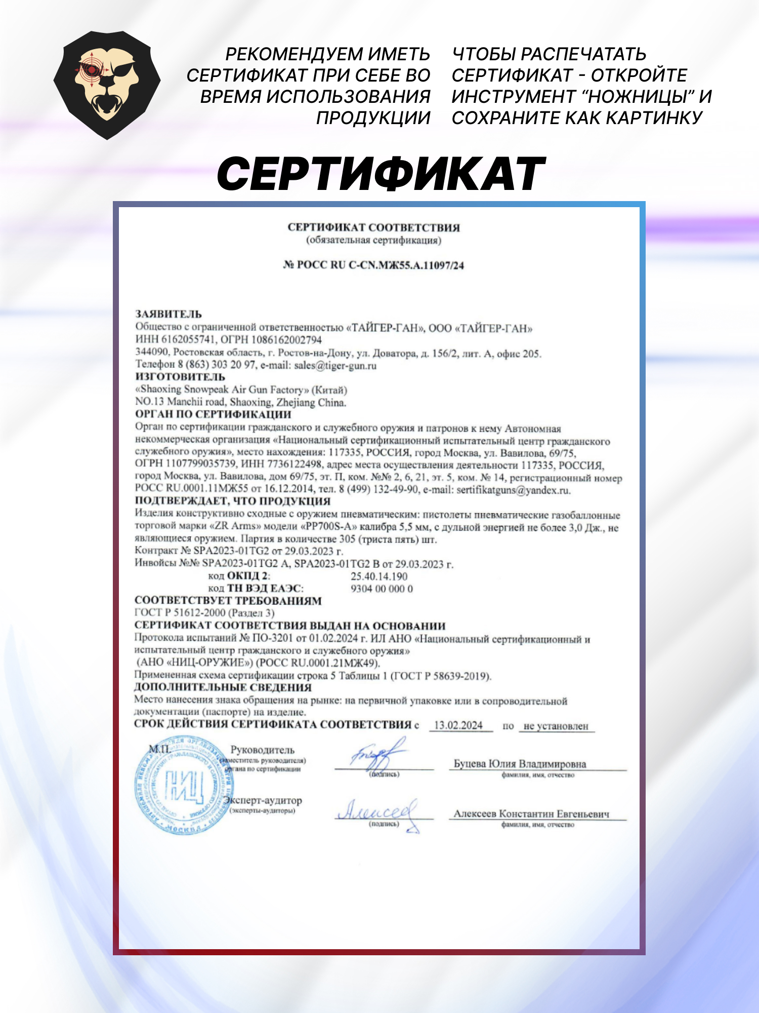 Информация о товаре "Пневматический пистолет ZR Arms PP700S-A 5.5 мм (PCP)" носит ознакомительный характер, и не является публичной офертой, определяемой положениями Статьи 437 Гражданского кодекса Российской Федерации, характеристики, внешний вид, цвет и комплектация могут быть изменены производителем без уведомления.