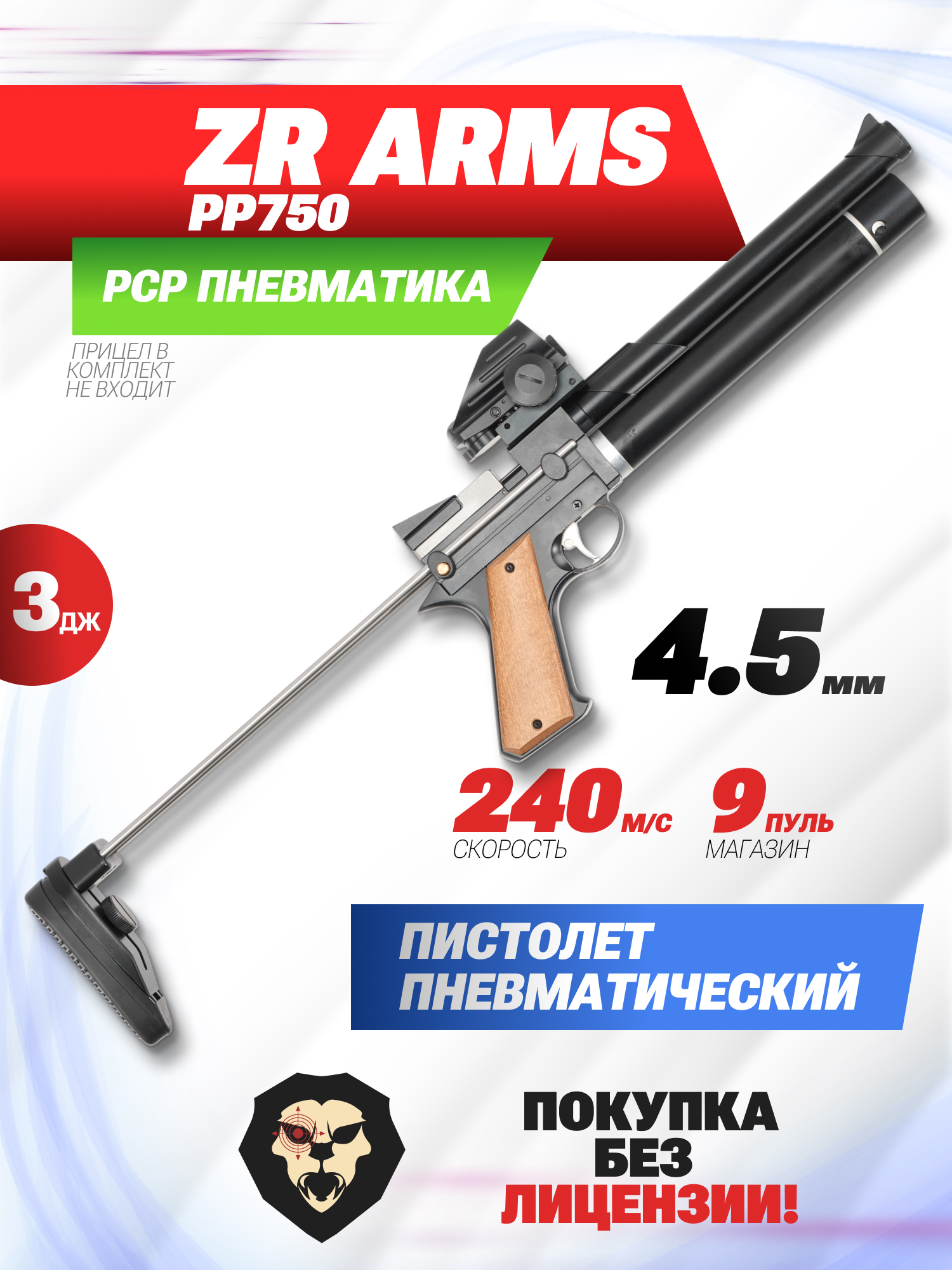 Пневматический пистолет ZR Arms PP750 4.5 мм (РСР, пластик, складной приклад) купить в интернет-магазине Popadiv10.