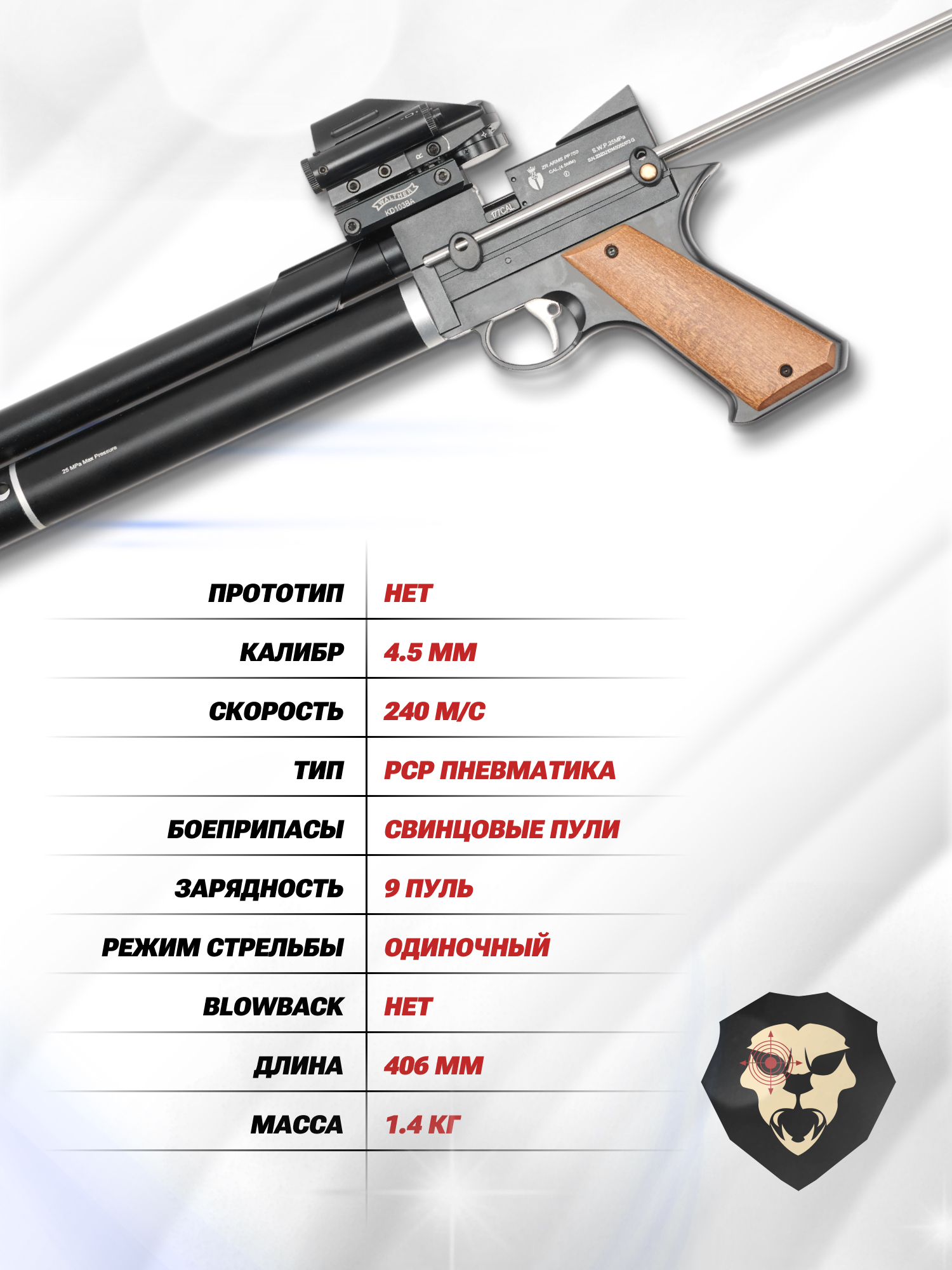 | Комплектация | Пистолет, магазин, ключи, ЗИП, упаковка, заправочный штуцер, краткая документация, копия сертификата (по запросу покупателя) |