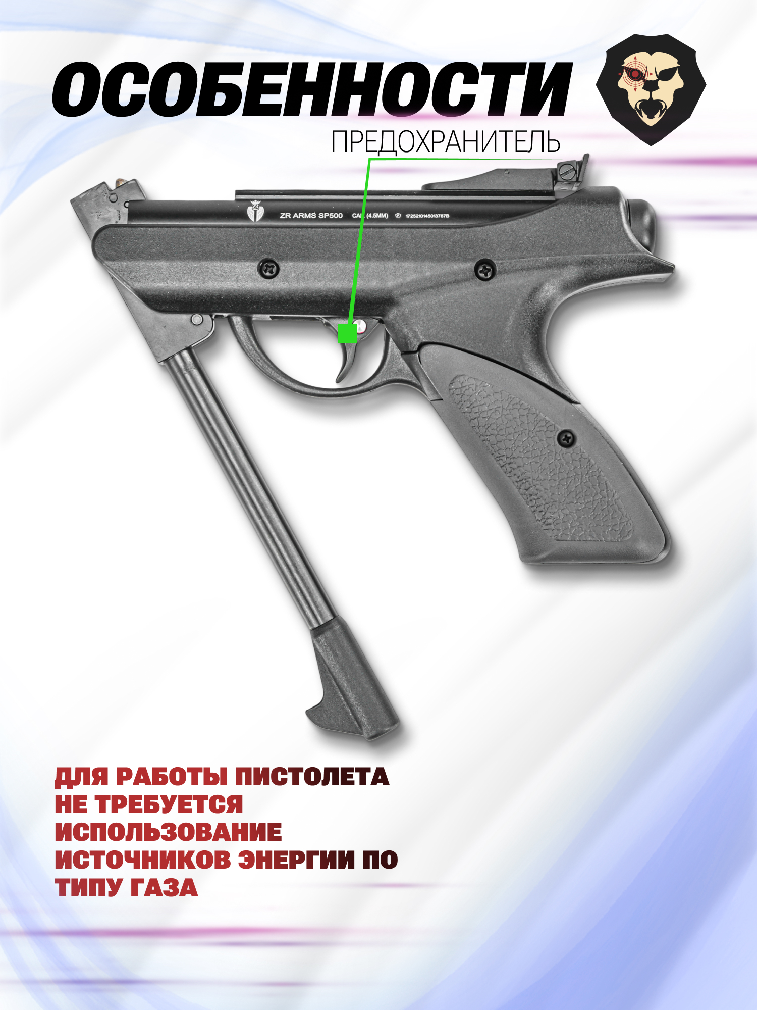 Пневматический пистолет ZR Arms SP500 4.5 мм (пружинно-поршневой, пластик) купить в интернет-магазине Popadiv10.