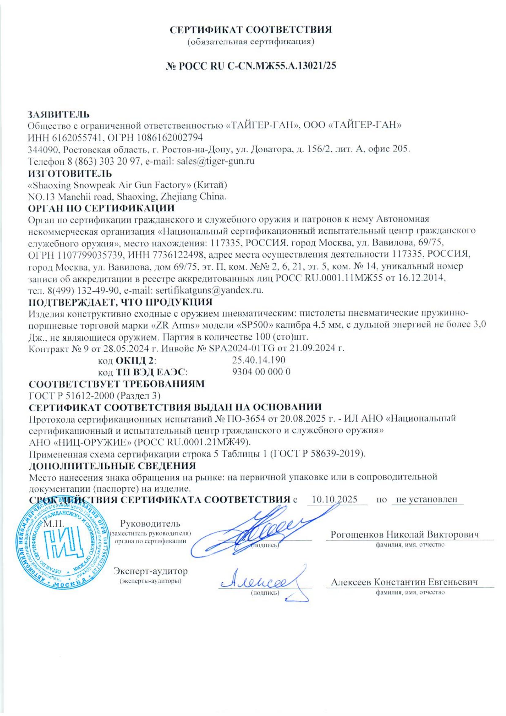 | Комплектация | Пистолет, упаковка, краткая документация, копия сертификата (по запросу покупателя) |