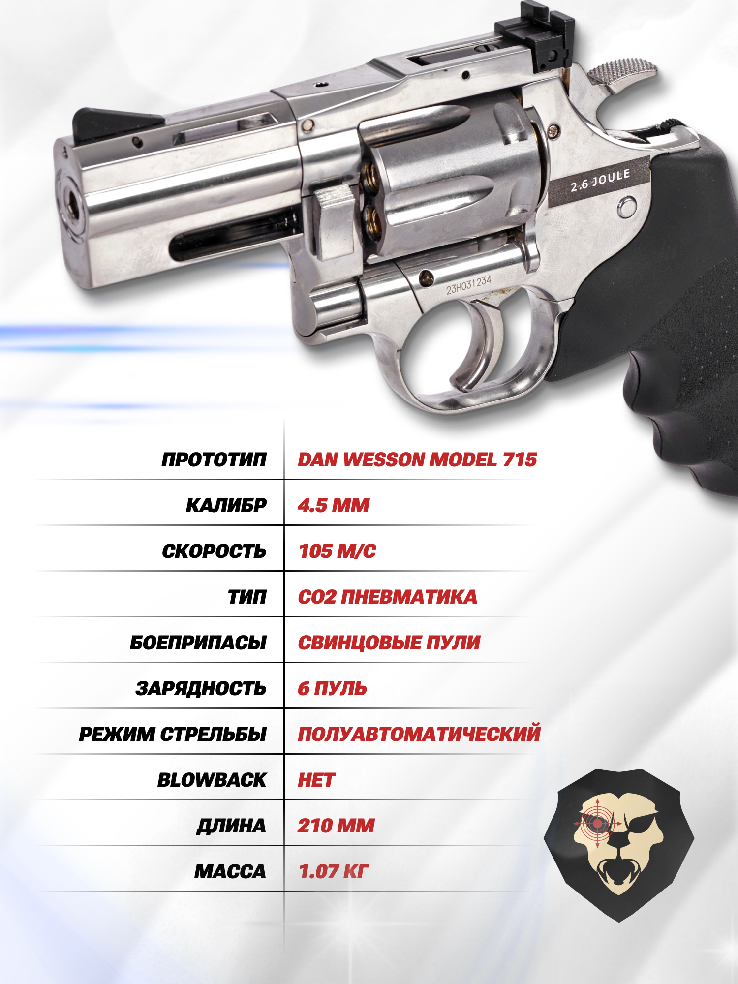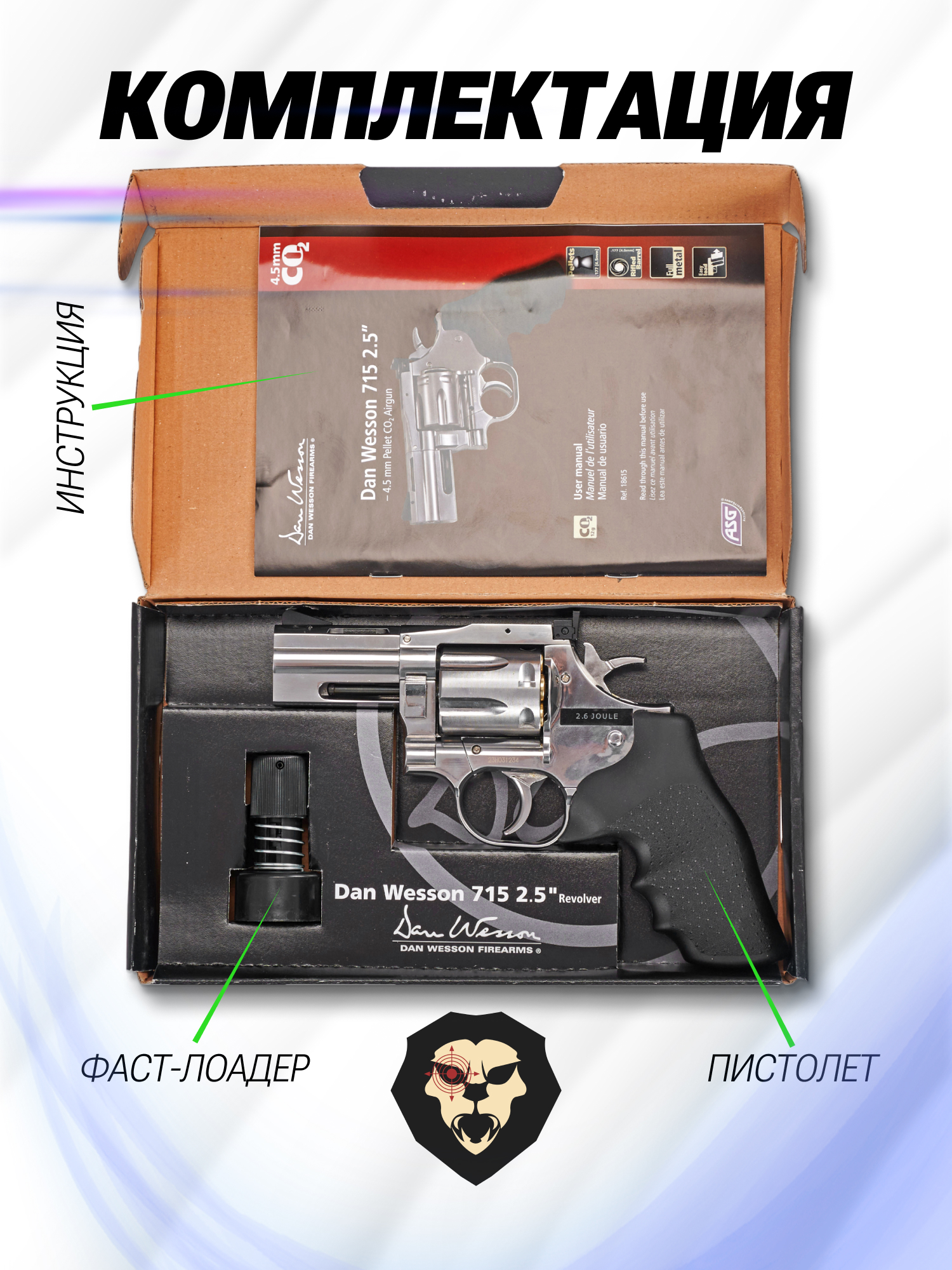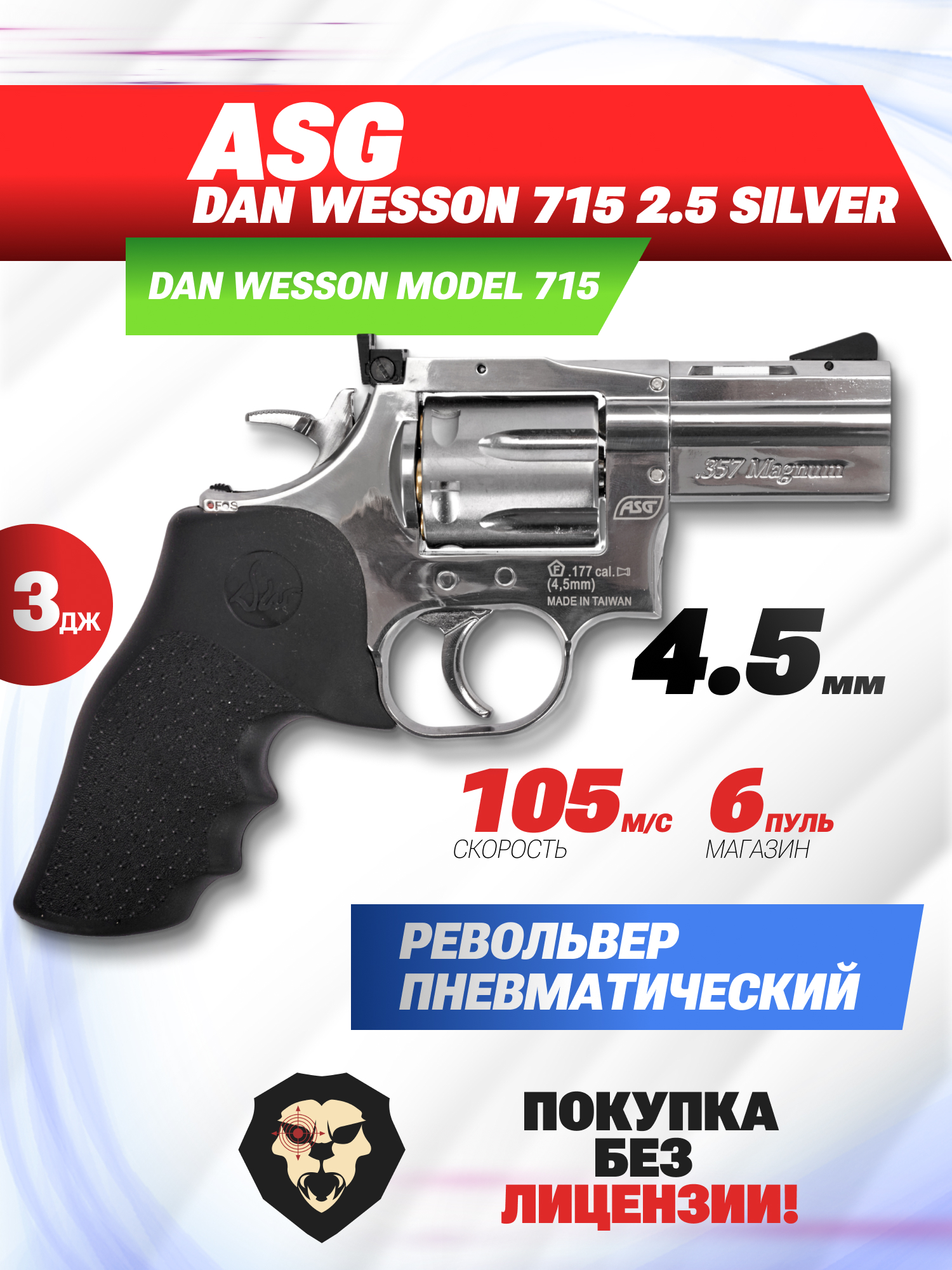 Пневматический револьвер ASG Dan Wesson 715 2.5 Silver 4.5 мм (пулевой, 18615) купить в интернет-магазине Popadiv10.