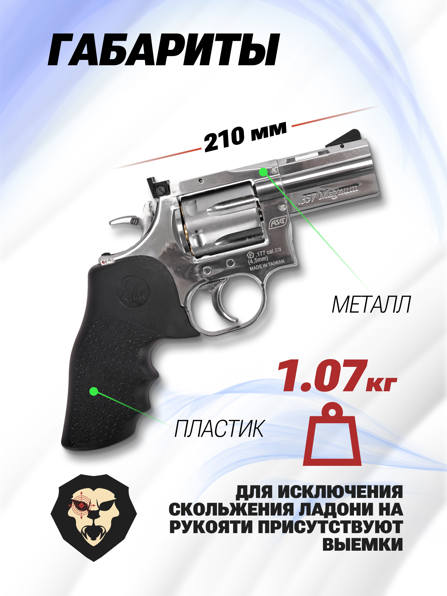 Револьверы всегда отличались высокой надежностью, благодаря чему не утратили актуальности при появлении современных самозарядных пистолетов. Это достоинство унаследовала пневматика, создаваемая по мотивам. Из представленных на российском рынке моделей внимания заслуживают изделия фирмы ASG, к достоинствам которых стоит отнести повышенную детализацию.