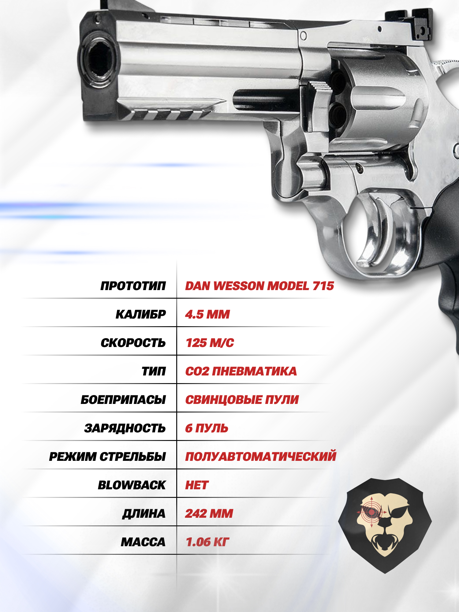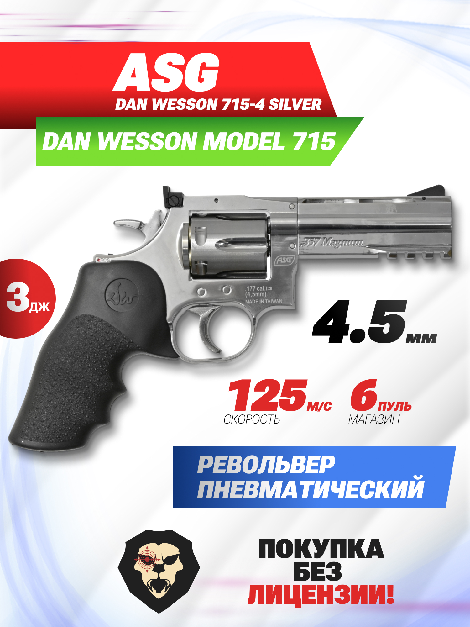 Пневматический револьвер ASG Dan Wesson 715-4 Silver 4.5 мм (пулевой, 18612) купить в интернет-магазине Popadiv10.